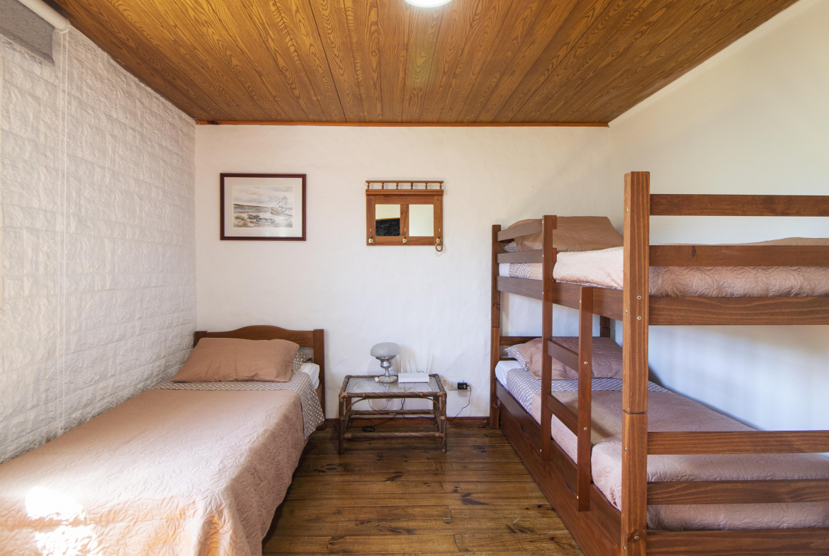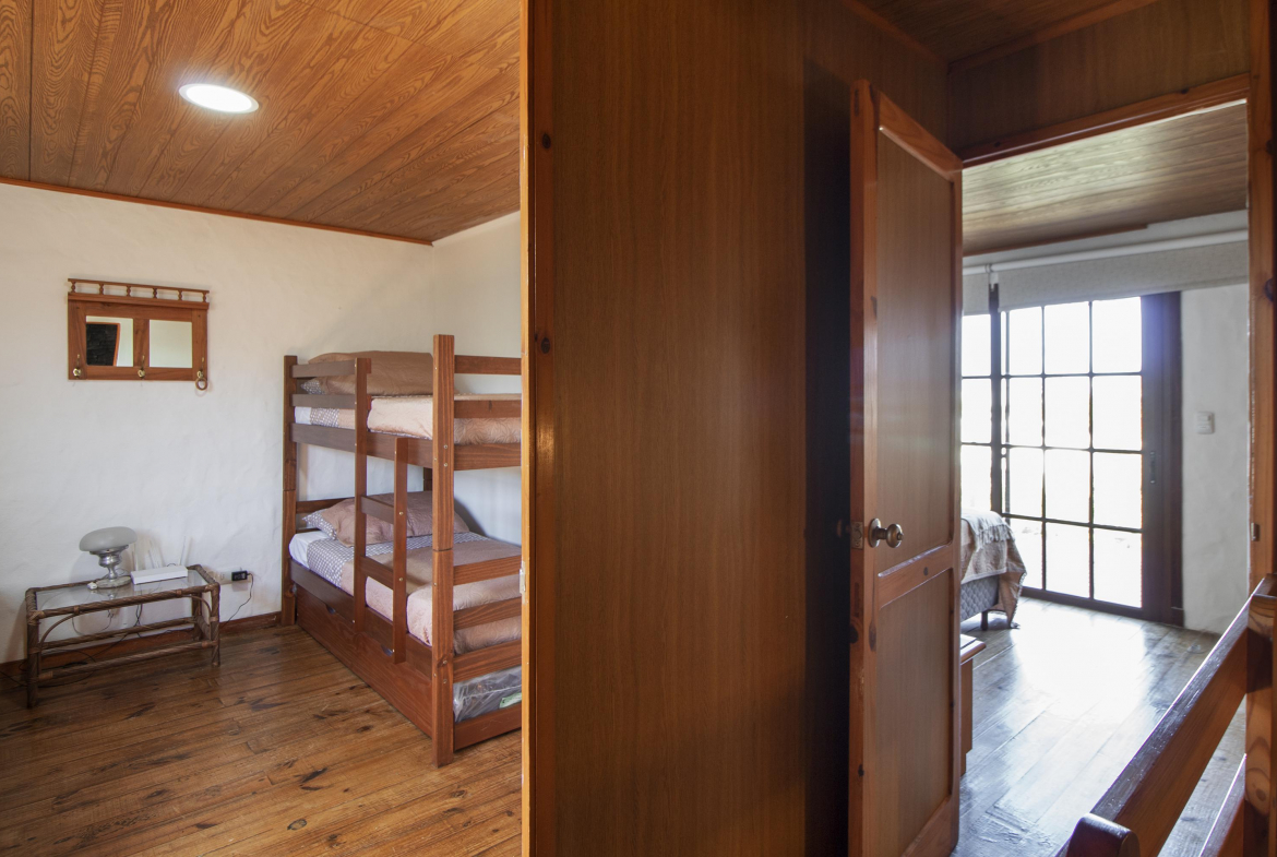 En planta alta, balcón, dormitorio con cama matrimonial, equipo de aire frio calor, y excelente vista al mar. Dormitorio con una cama single y una cucheta.