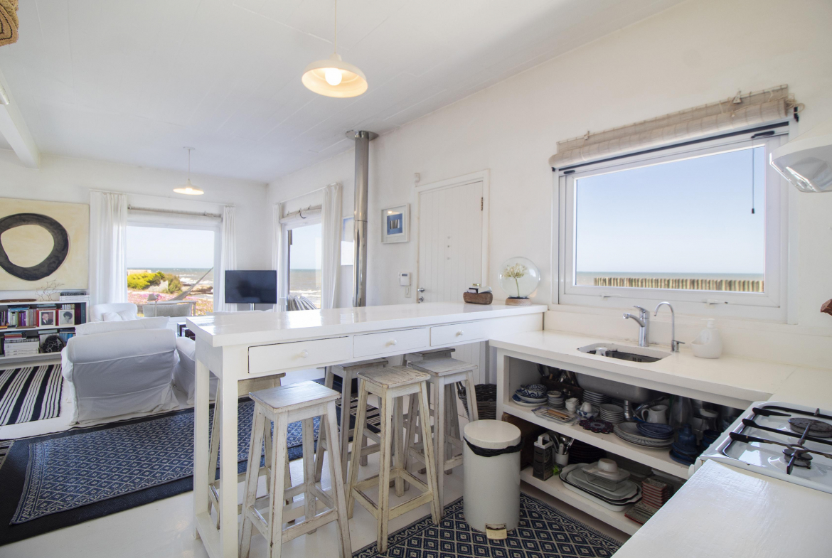 3 dormitorios con excelentes vistas hacia el mar, dependencia de servicio, living comedor con la cocina integrada. Galeria en su entorno, y sector de fogon en el jardin.