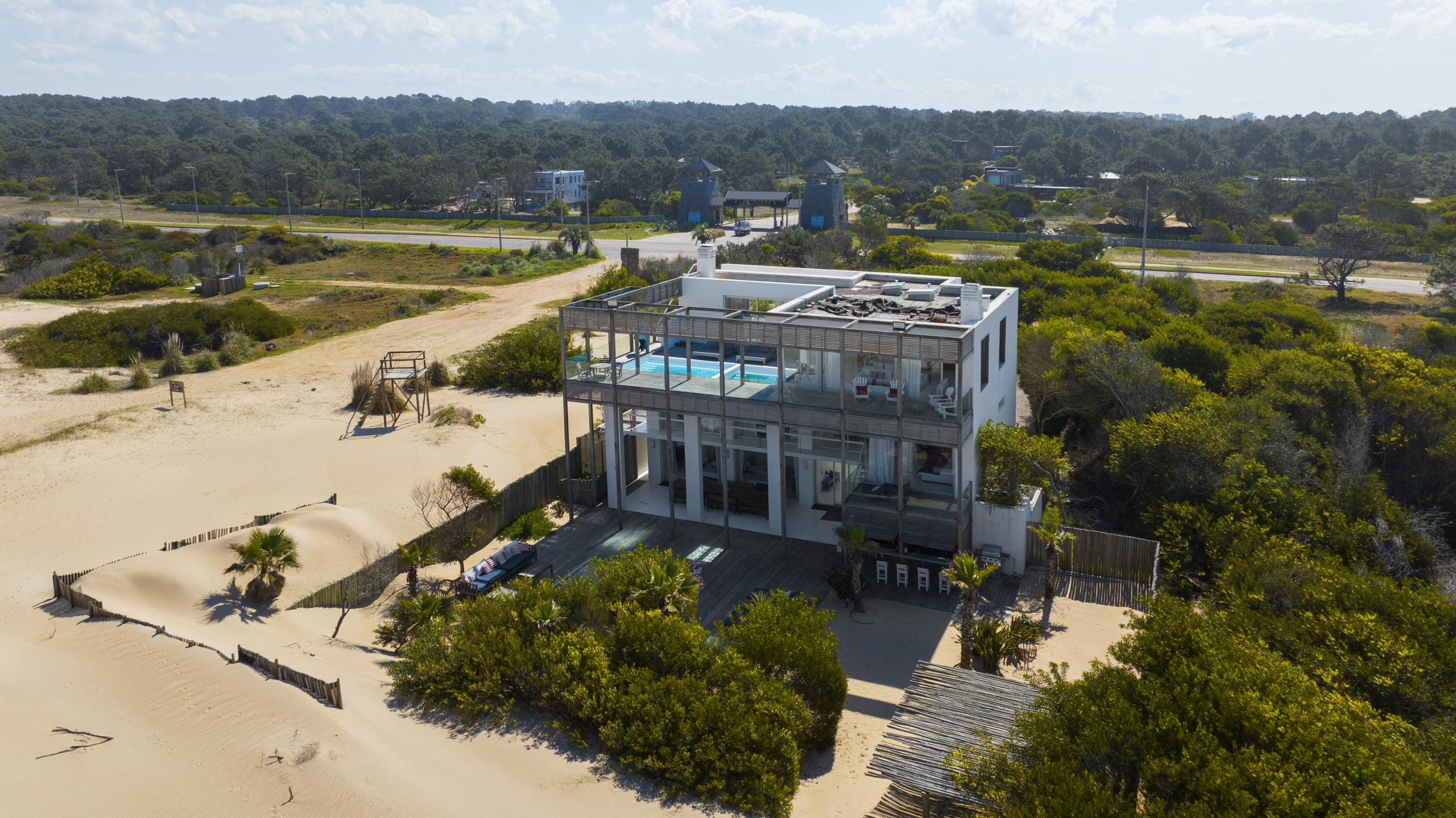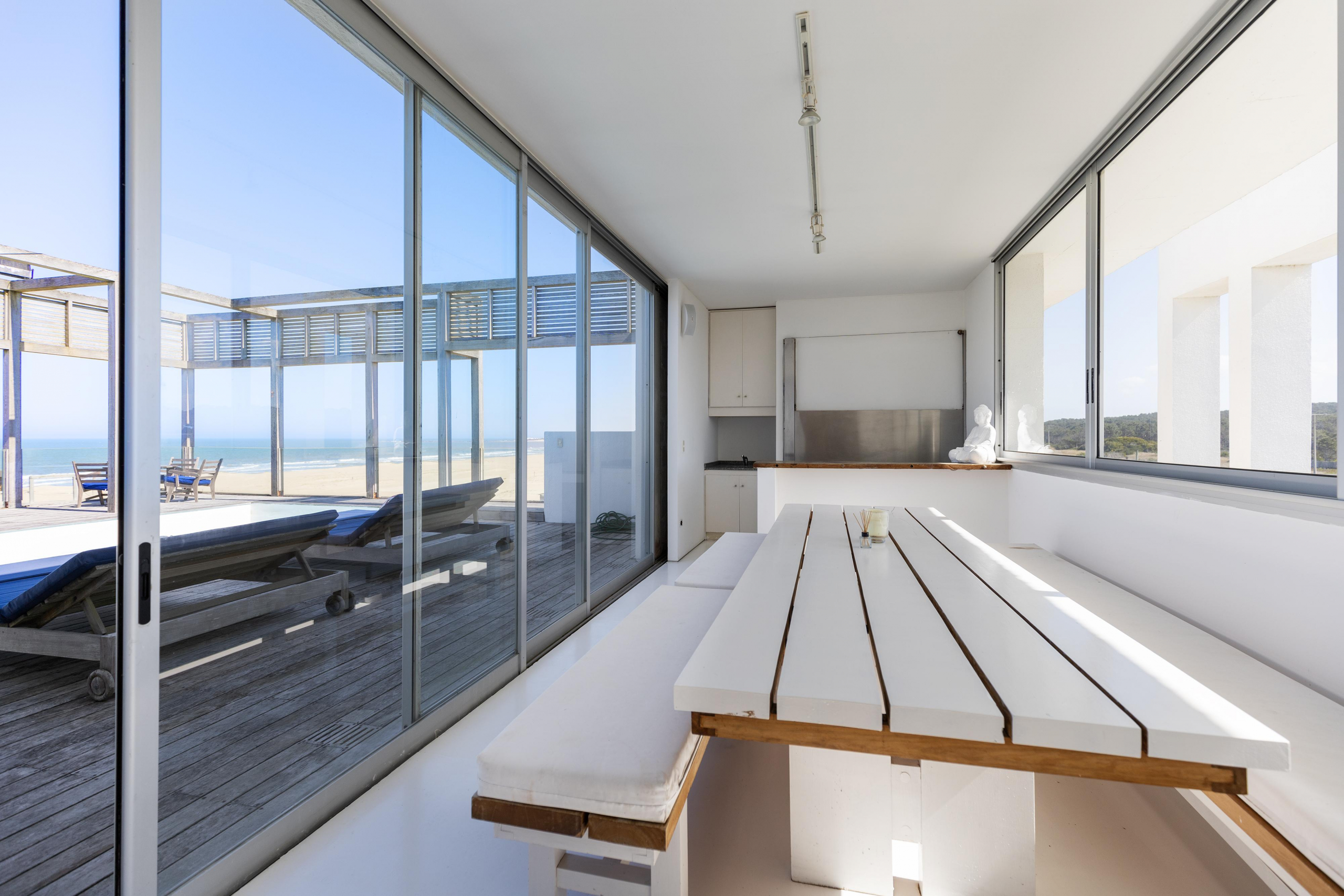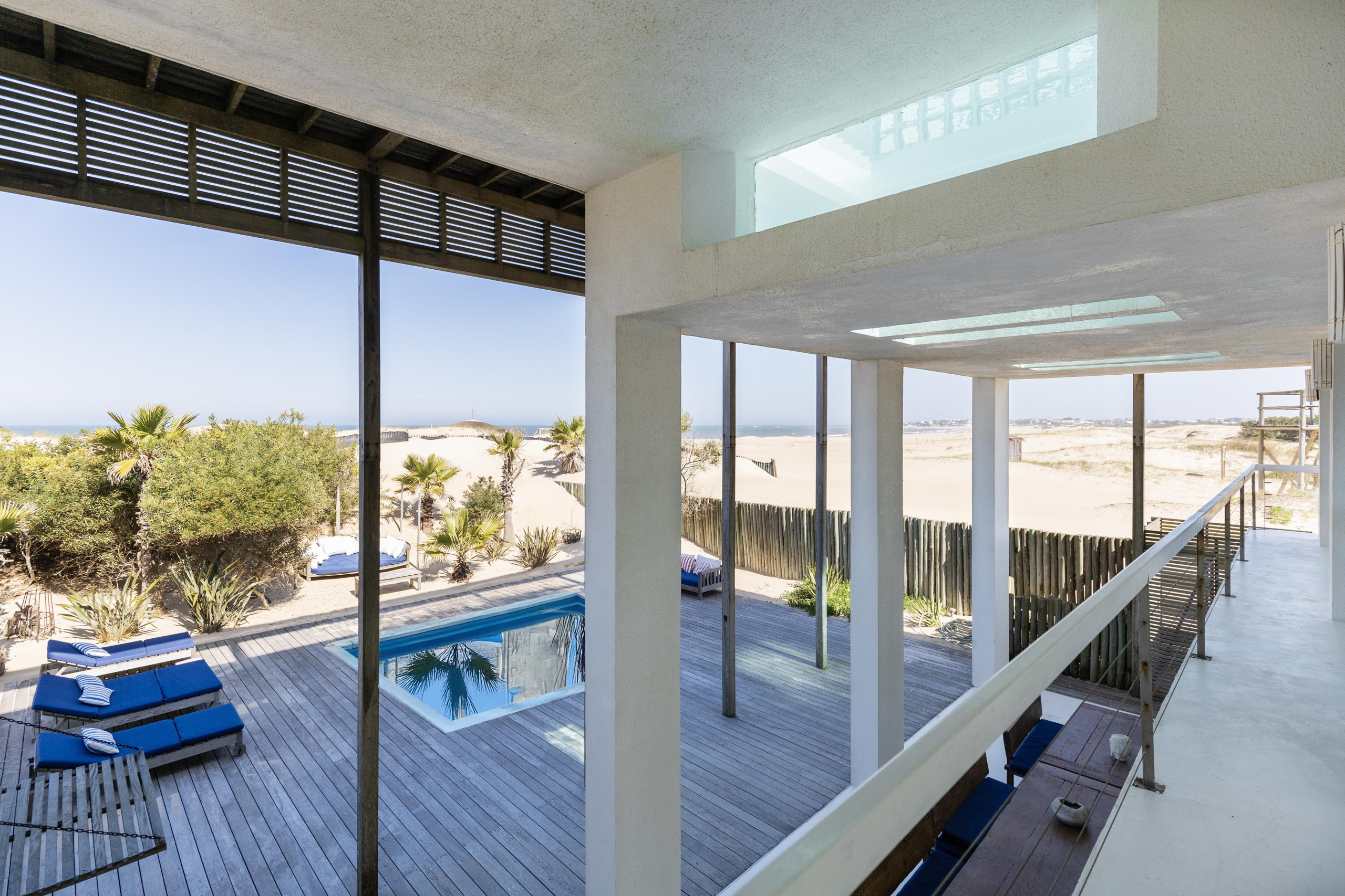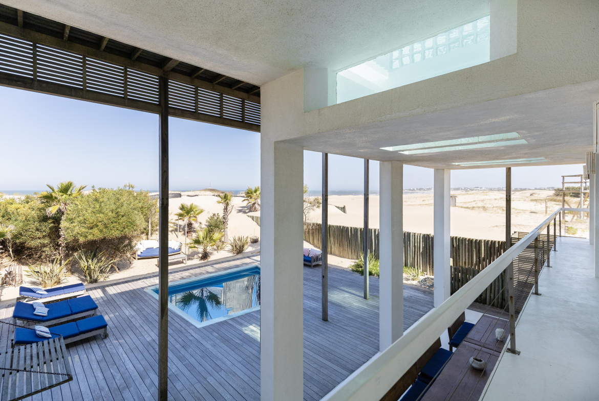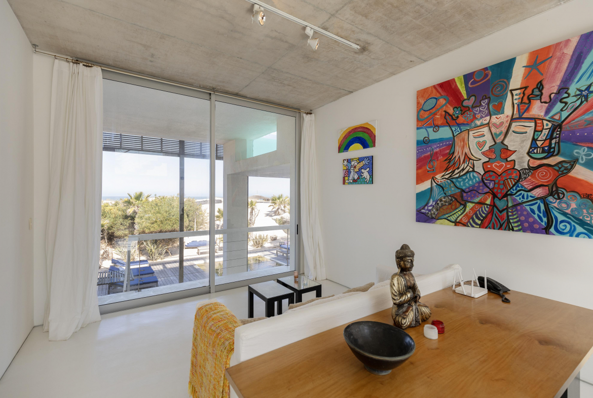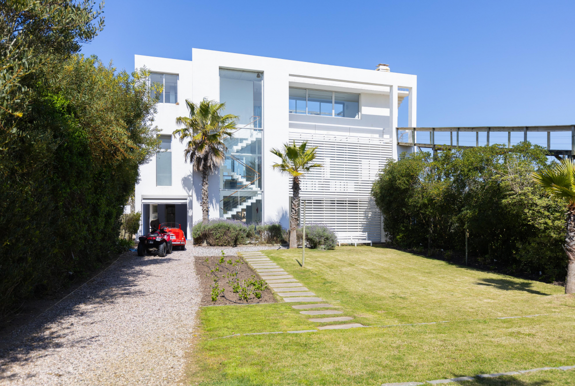 Impactante casa sobre la playa brava de Josè Ignacio , la mejor vista directa al faro, amanecer, salida de la Luna , amplias playas, puente laguna Garzon. Se dispone en tres niveles, con dos piscinas , una climatizada en la terraza y otra en el jardín. En el primer nivel encontramos el hall de entrada, con amplio ambiente de estar que se comunica con el jardín y la piscina ,barra y chill out. Dos suites , áreas de servicio con baño y cocina propias y garage. En el segundo nivel encontramos la master suite, estar, dos suites iguales a las de primer nivel.