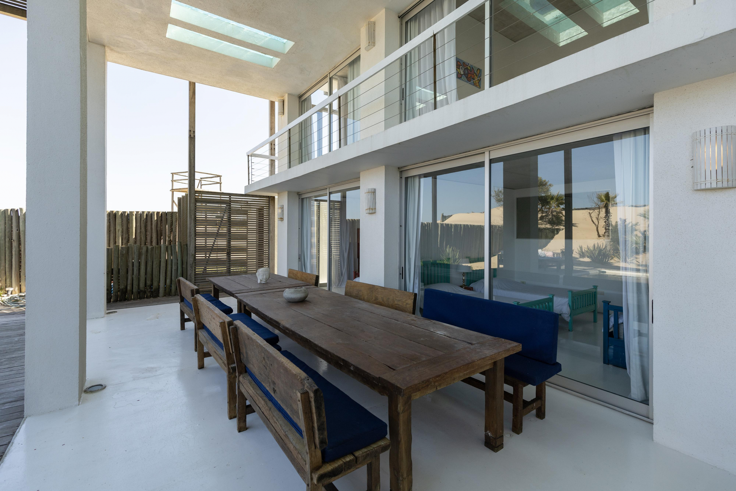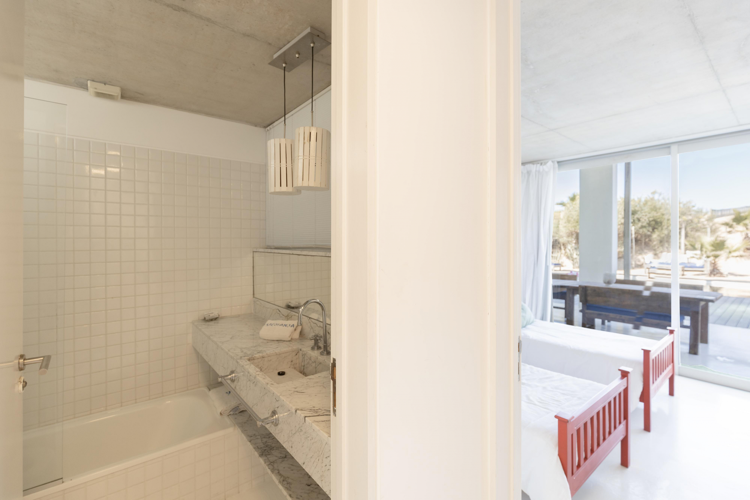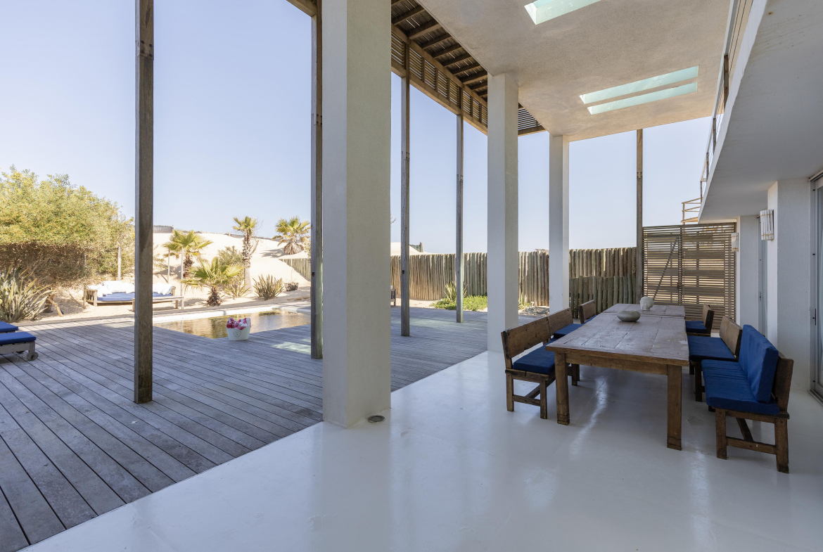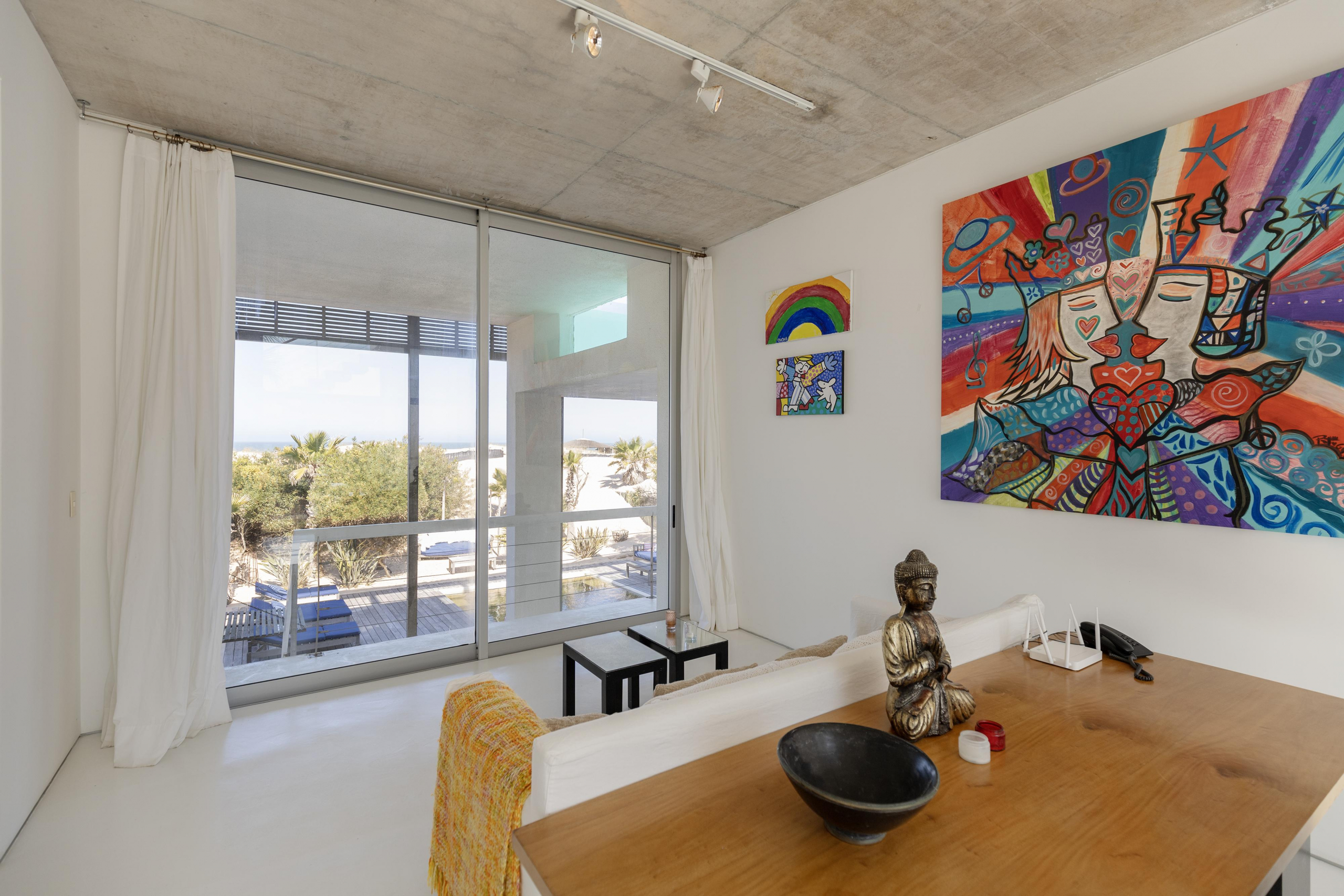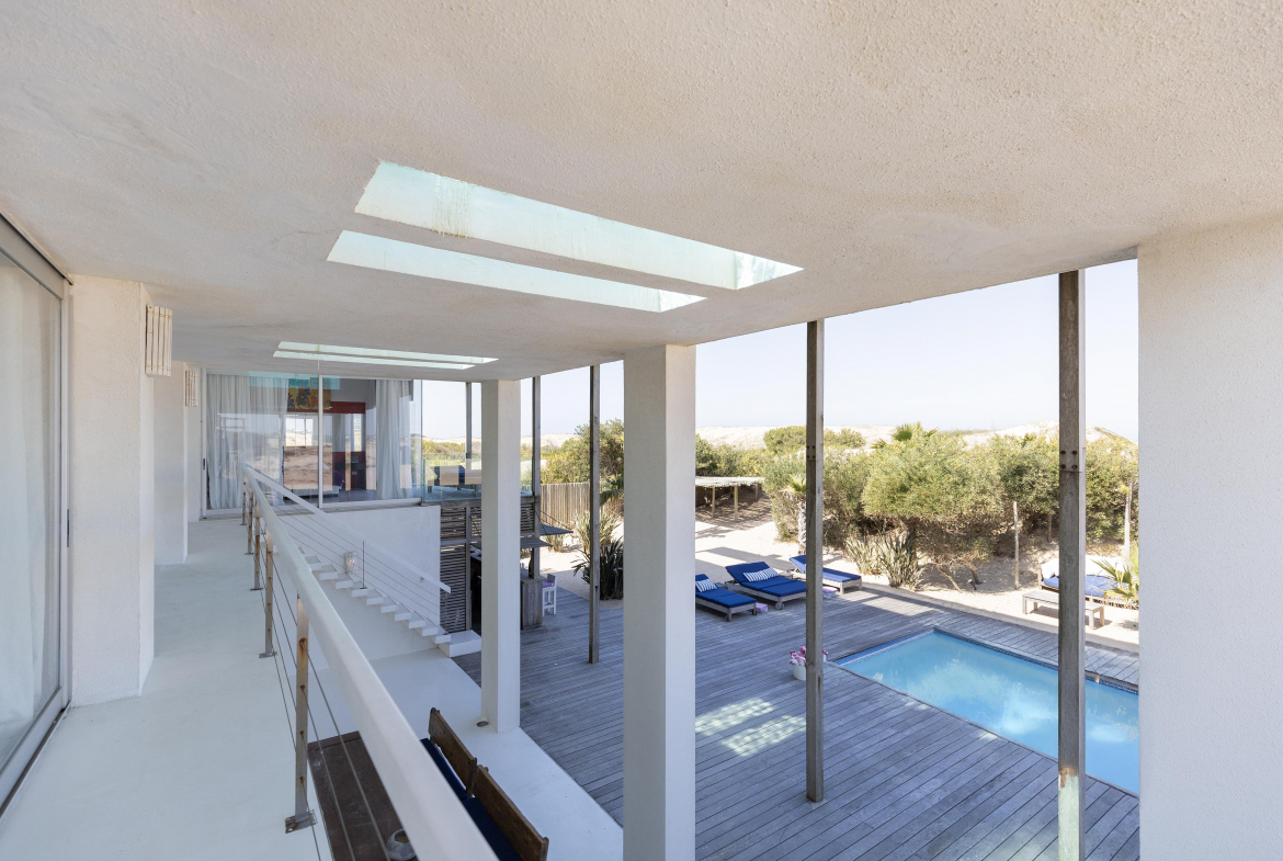 Impactante casa sobre la playa brava de Josè Ignacio , la mejor vista directa al faro, amanecer, salida de la Luna , amplias playas, puente laguna Garzon. Se dispone en tres niveles, con dos piscinas , una climatizada en la terraza y otra en el jardín. En el primer nivel encontramos el hall de entrada, con amplio ambiente de estar que se comunica con el jardín y la piscina ,barra y chill out. Dos suites , áreas de servicio con baño y cocina propias y garage. En el segundo nivel encontramos la master suite, estar, dos suites iguales a las de primer nivel.