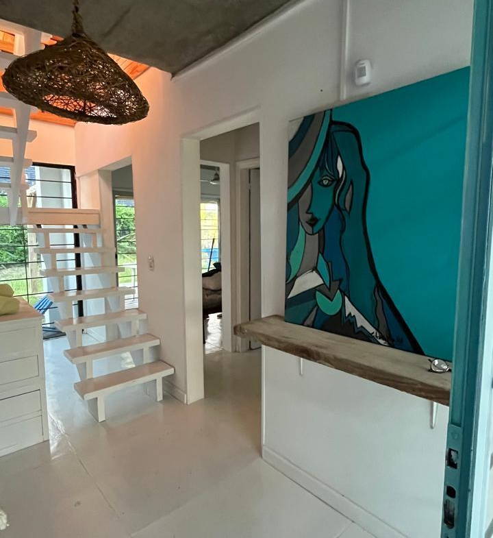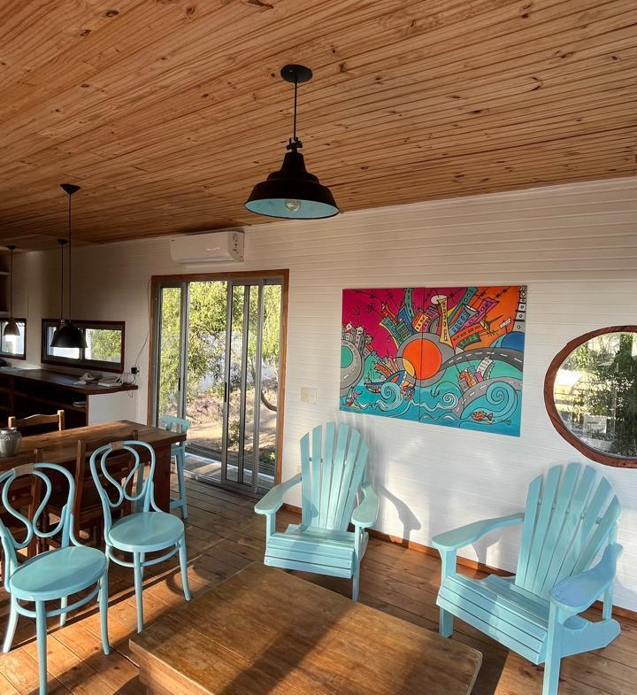Esta casa en el encantador barrio de la Juanita , ofrece la comodidad y el confort para disfrutar unas vacaciones en familia. Dispone de 4 dormitorios y dos baños en planta baja , y un espacio unico para reuniones sociales en la planta alta con una espectacular vista al bosque . Este espacio cuenta con cocina integrada a un living comedor y salida al deck de planta alta con una parrilla y espacio amplio.