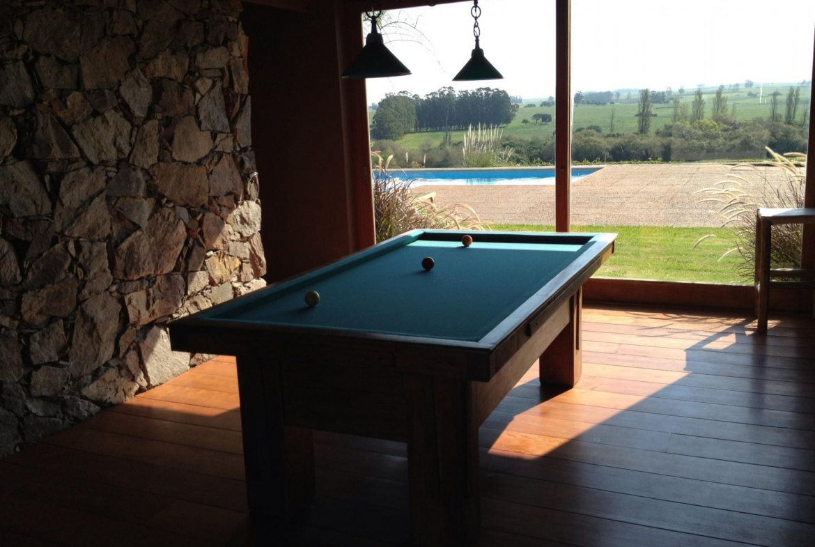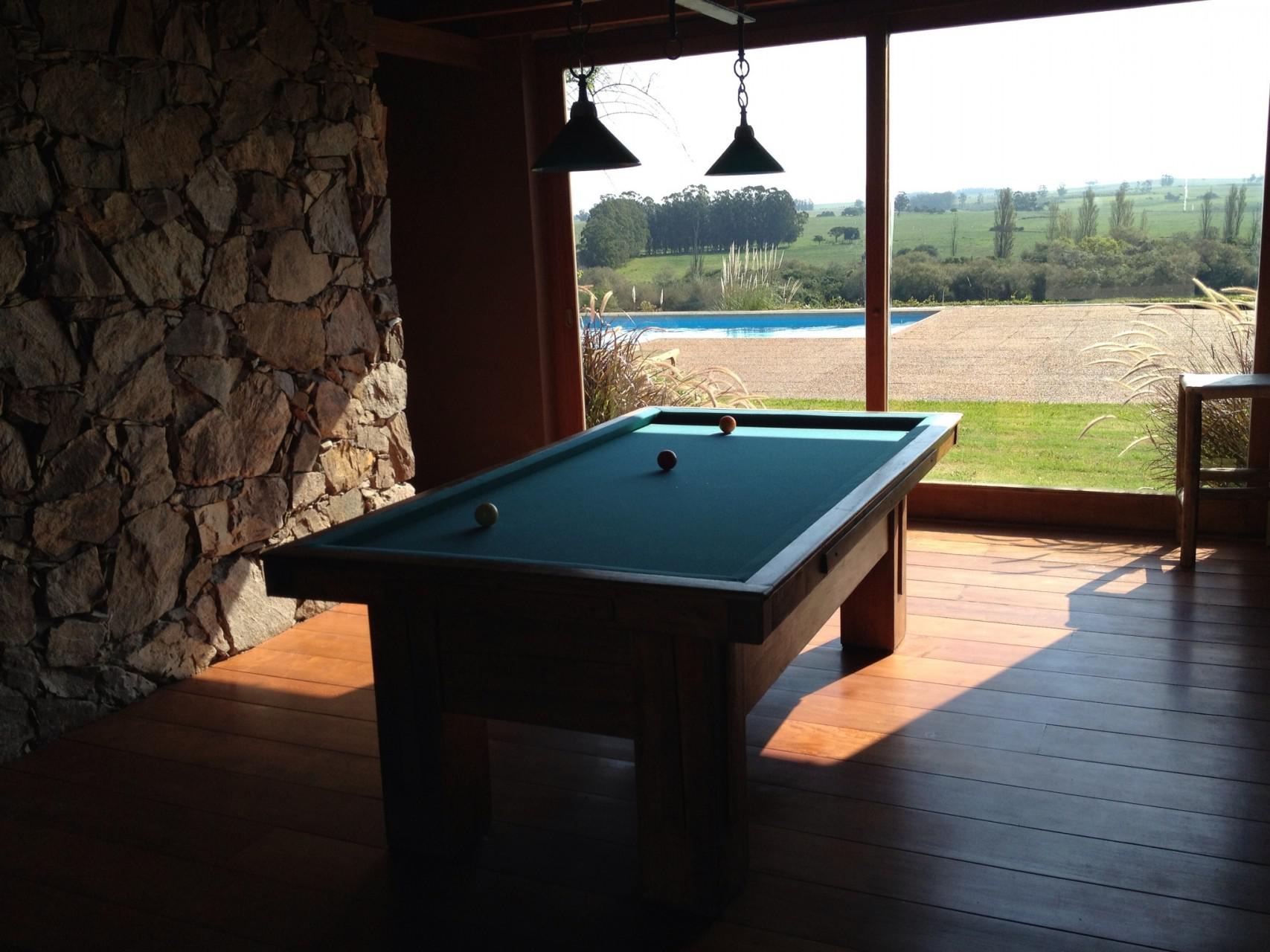 Amplio living comedor y cocina semi integrada, más playroom con mesa de pool. En un volumen independiente, en planta alta comodo dormitorio de huespedes y en planta baja, amplio playroom .