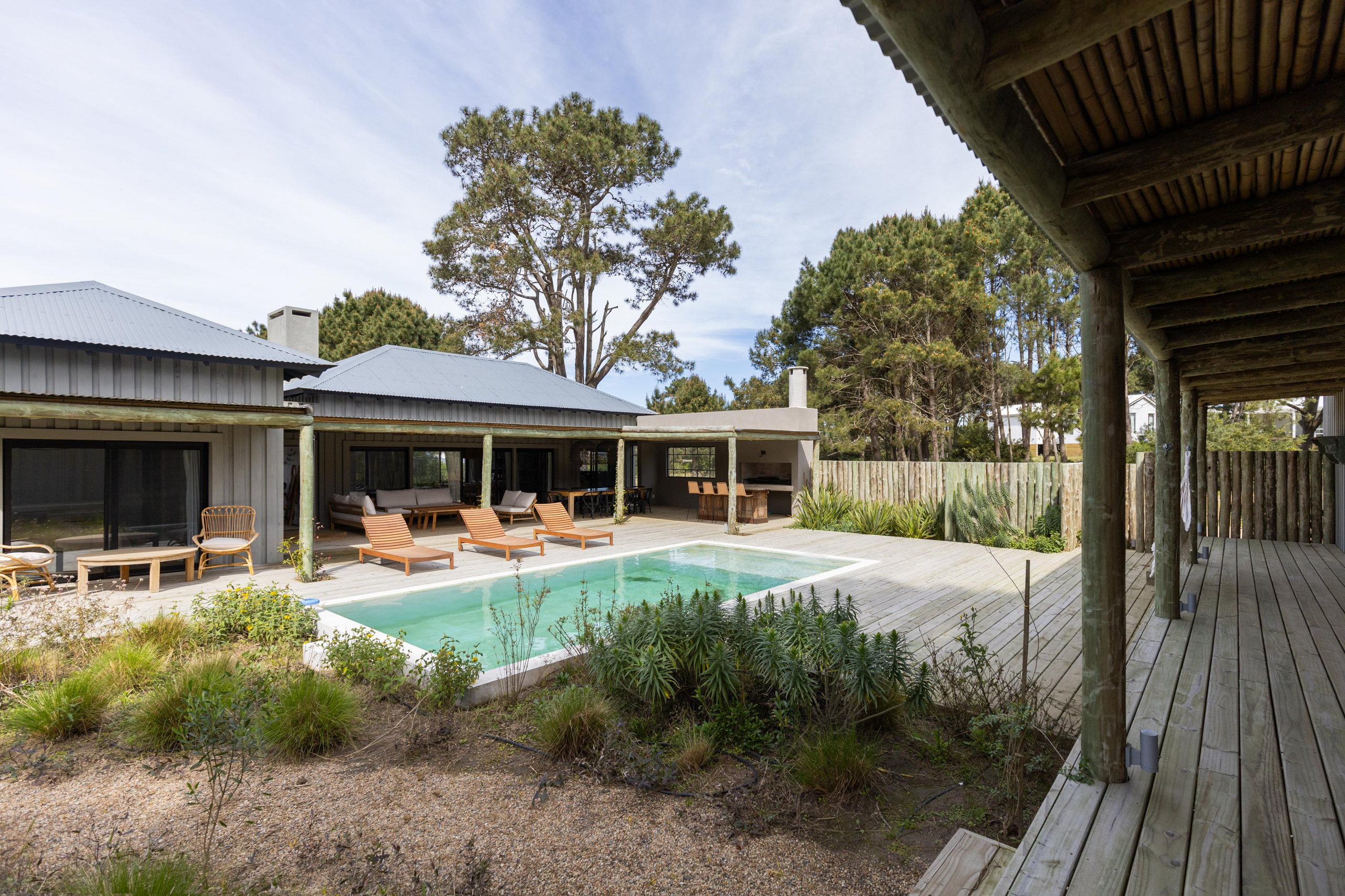 G28 excelente propiedad ubicada en el exclusivo barrio de Pinar de Faro, a minutos de José Ignacio. En una sola planta, la propiedad se distribuye en dos cuerpos importantes, uno principal con living comedor integrado, cocina amplia con vista a la amplia galería y una master suite. El otro cuerpo se compone de 3 habitaciones en suite en espejo con el primer bloque mencionado. Cuenta con amplios espacios de estar, tanto en interiores como en exteriores. El barrio ofrece la tranquilidad que caracteriza al balneario y las comodidades de un barrio privado.