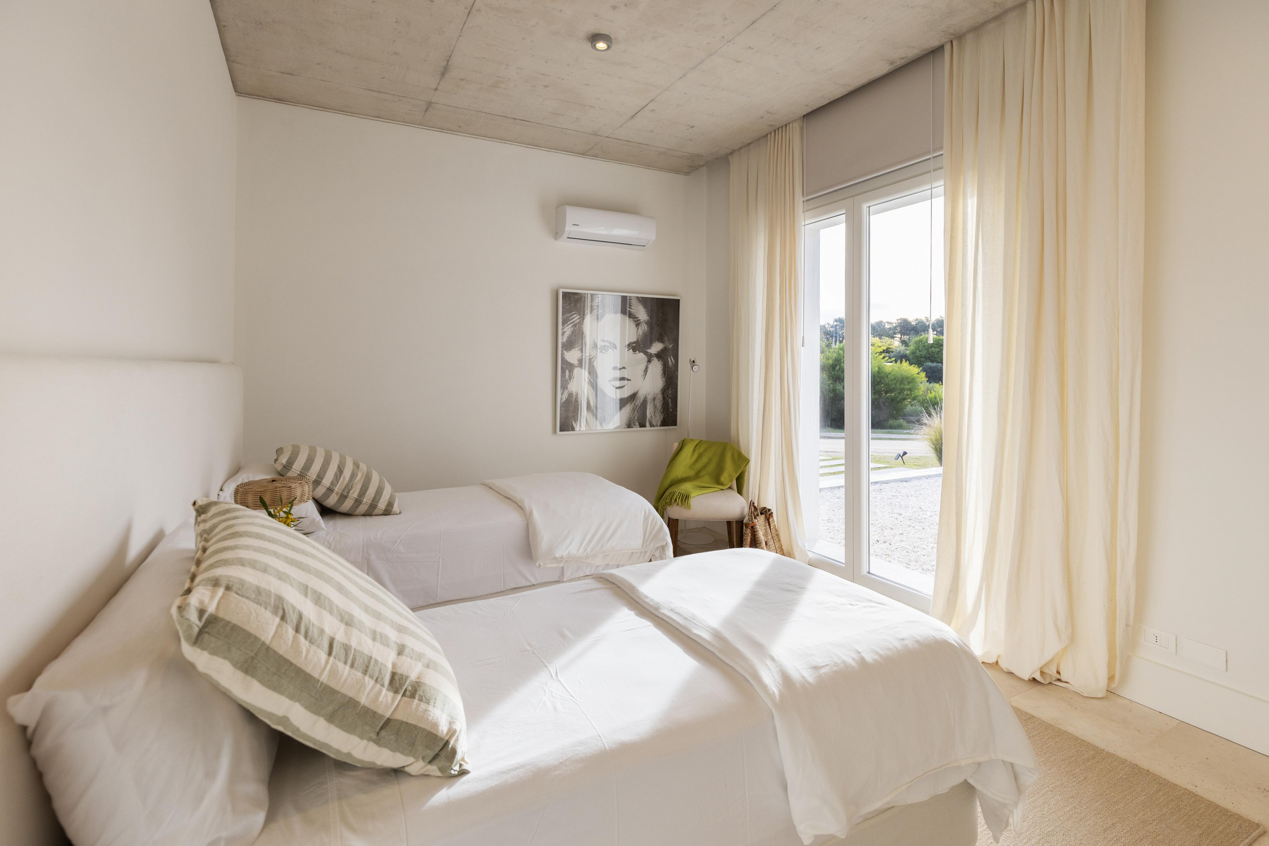 Increíble casa de diseño y estilo mediterráneo en Laguna Escondida con vista privilegiada al campo. Cuenta con 5 dormitorios en suite, uno de ellos con ingreso independiente que puede ser utilizado como dormitorio de servicio. Uno de ellos es la master suite con vestidor y terraza aparte con ingreso independiente a la piscina que cuenta con una vista privilegiada. La casa tiene loza radiante, aires acondicionados frio calor, y estufa de alto rendimiento. Los espacios comunes interiores se destacan por sus diseño y amplitud, y espacios para reuniones donde prevalece la tranquilidad del barrio y se explaya la dimension del espacion con su increible vista abierta. La cocina completa cuenta con despensa , doble heladera, lavadero con lavadora y secadora y una cava subterránea .
