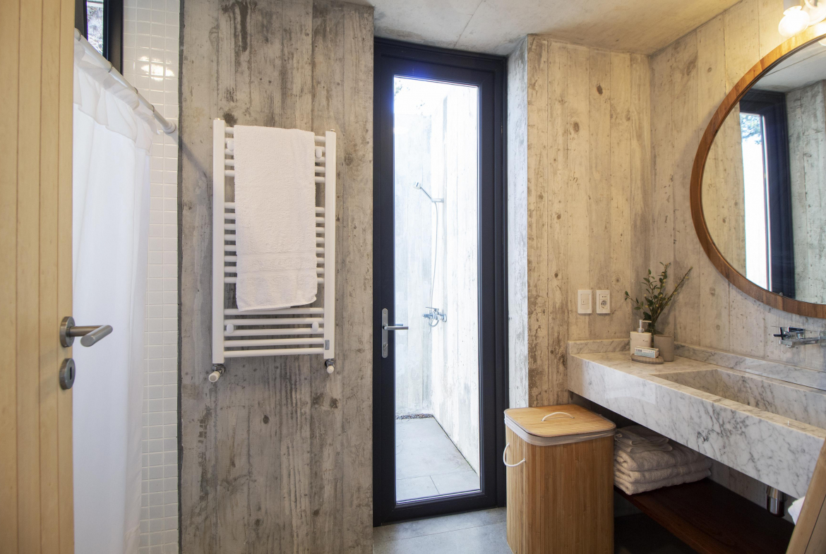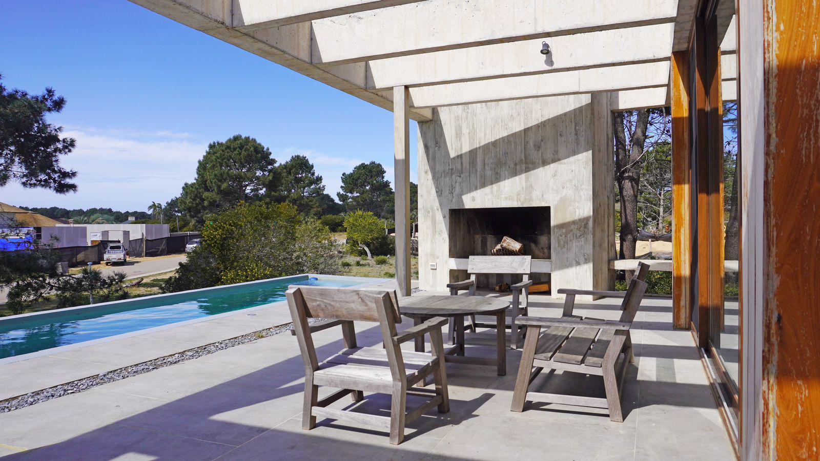 Linda galería semi cubierta hacia el este, junto a la piscina y al fogón/parrilla exterior. Próximo al área de la piscina hay un baño completo con ducha externa.