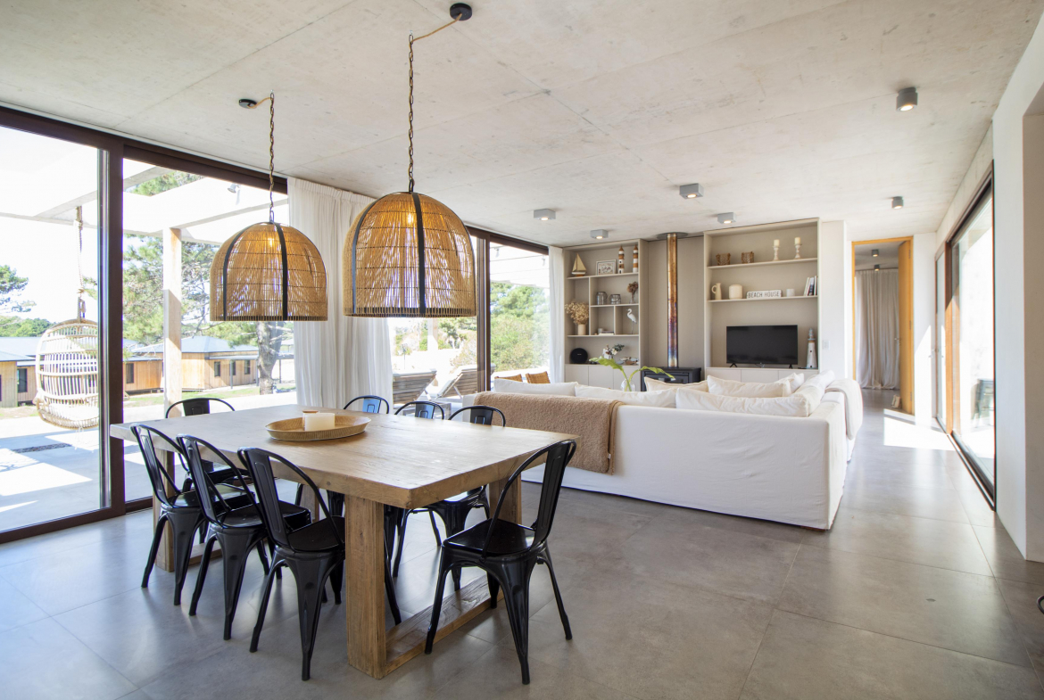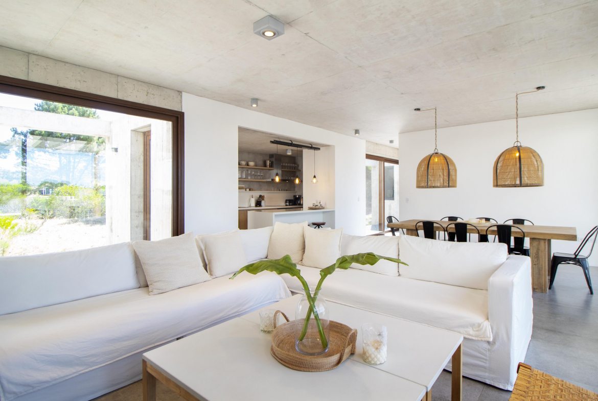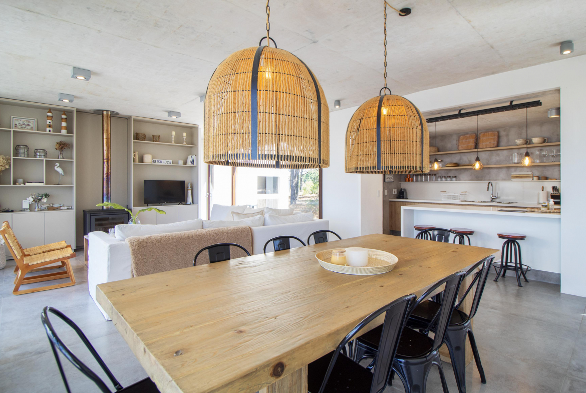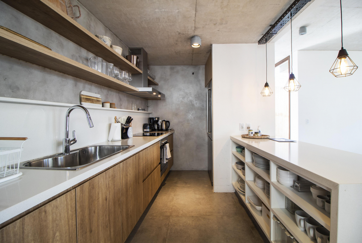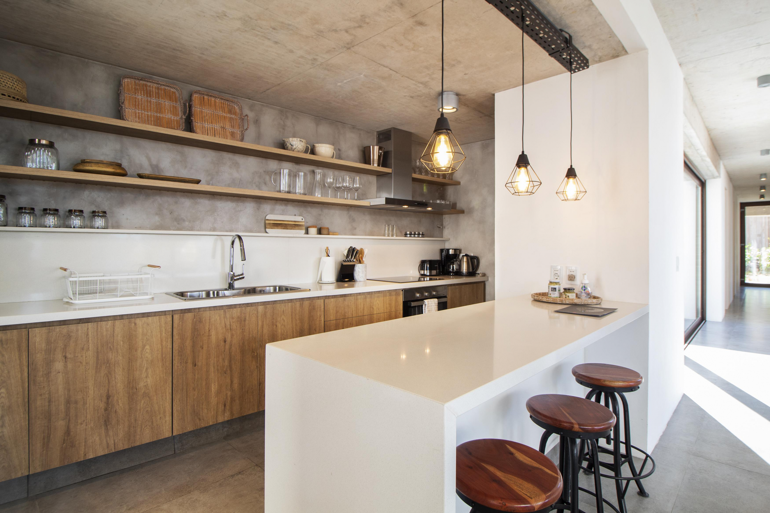 Amplio living comedor integrado, hogar de alto rendimiento, cocina estilo americana muy bien equipada.