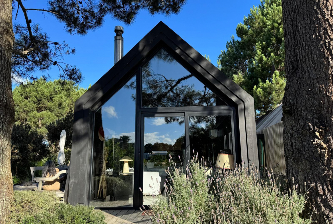 Al entrar, te recibe un amplio espacio lleno de luz natural, gracias a grandes ventanales que se abren a un jardín privado. Desde aquí, puedes disfrutar de la vista de árboles y plantas que proporcionan un refugio sereno. Las noches son mágicas; las ventanas del dormitorio, estratégicamente ubicadas, te ofrecen un espectáculo celestial, permitiéndote contemplar las estrellas desde la comodidad de tu cama.