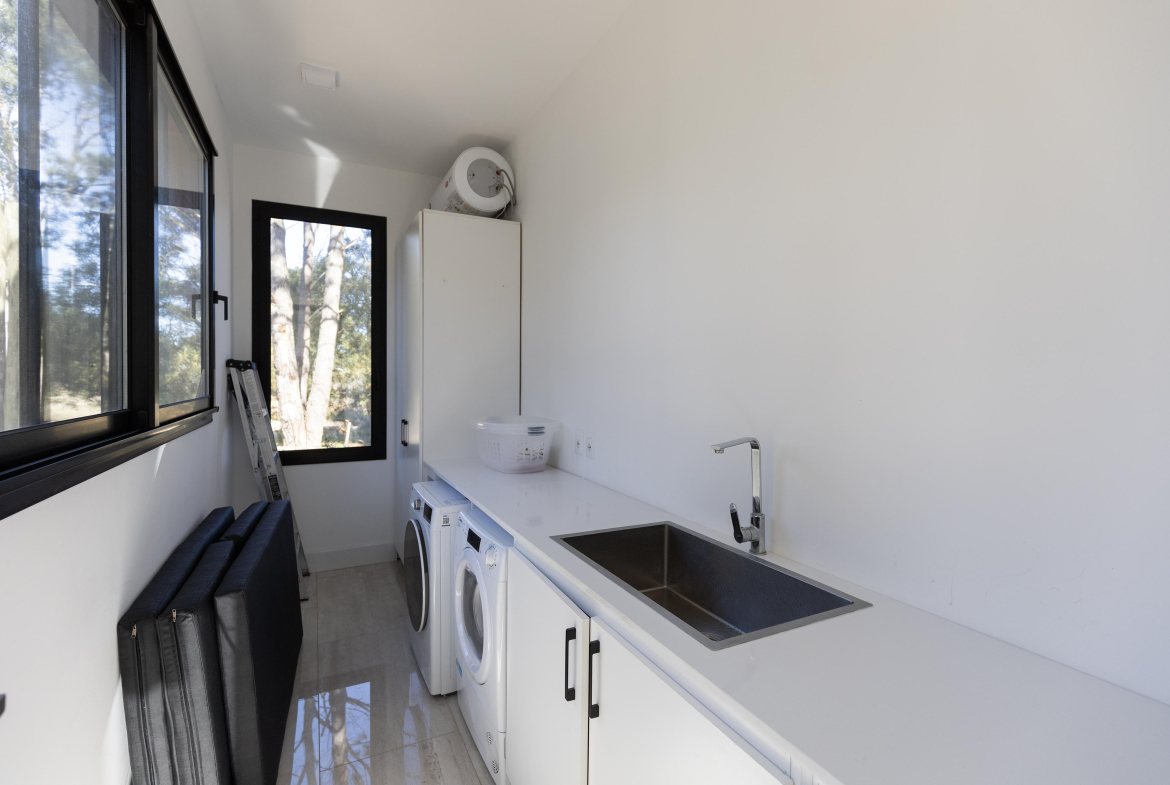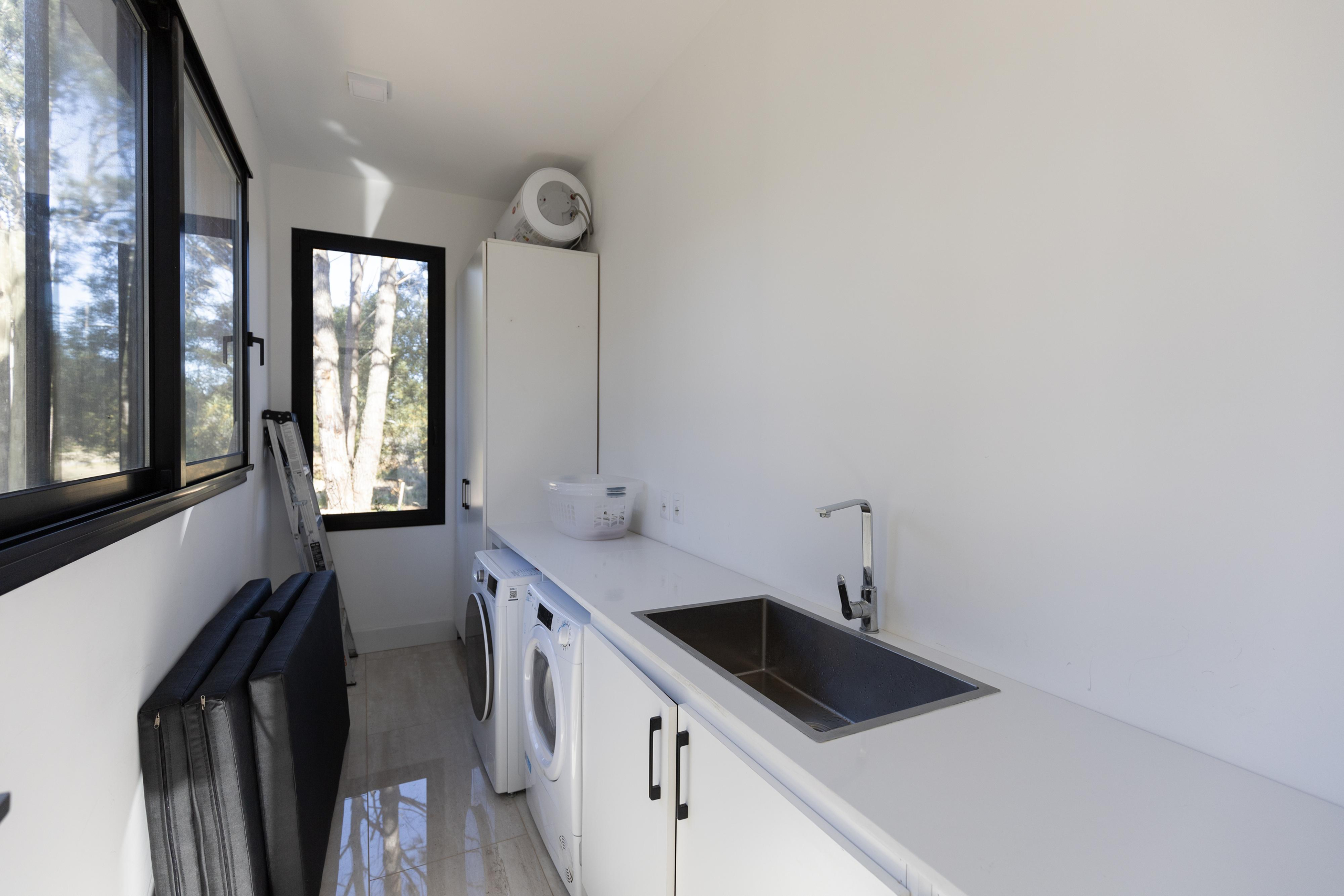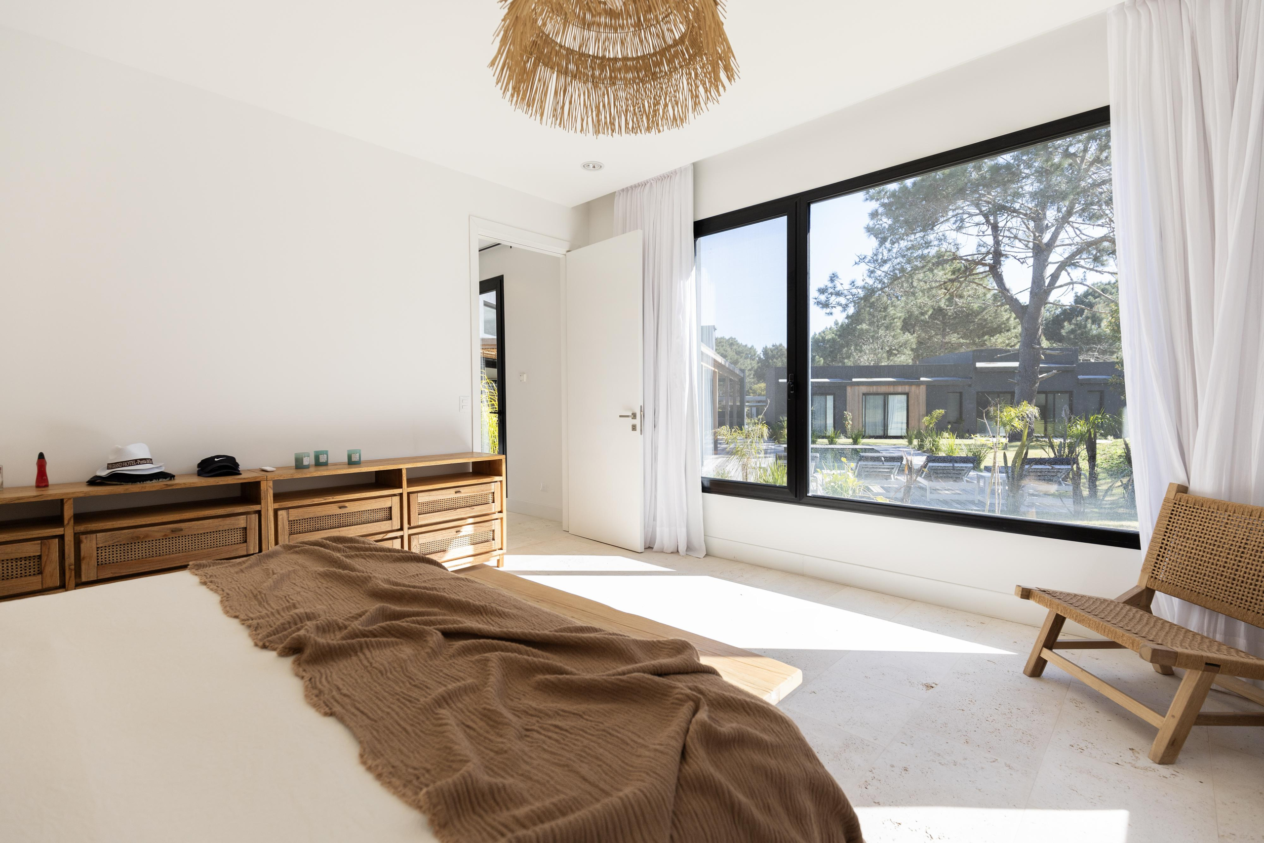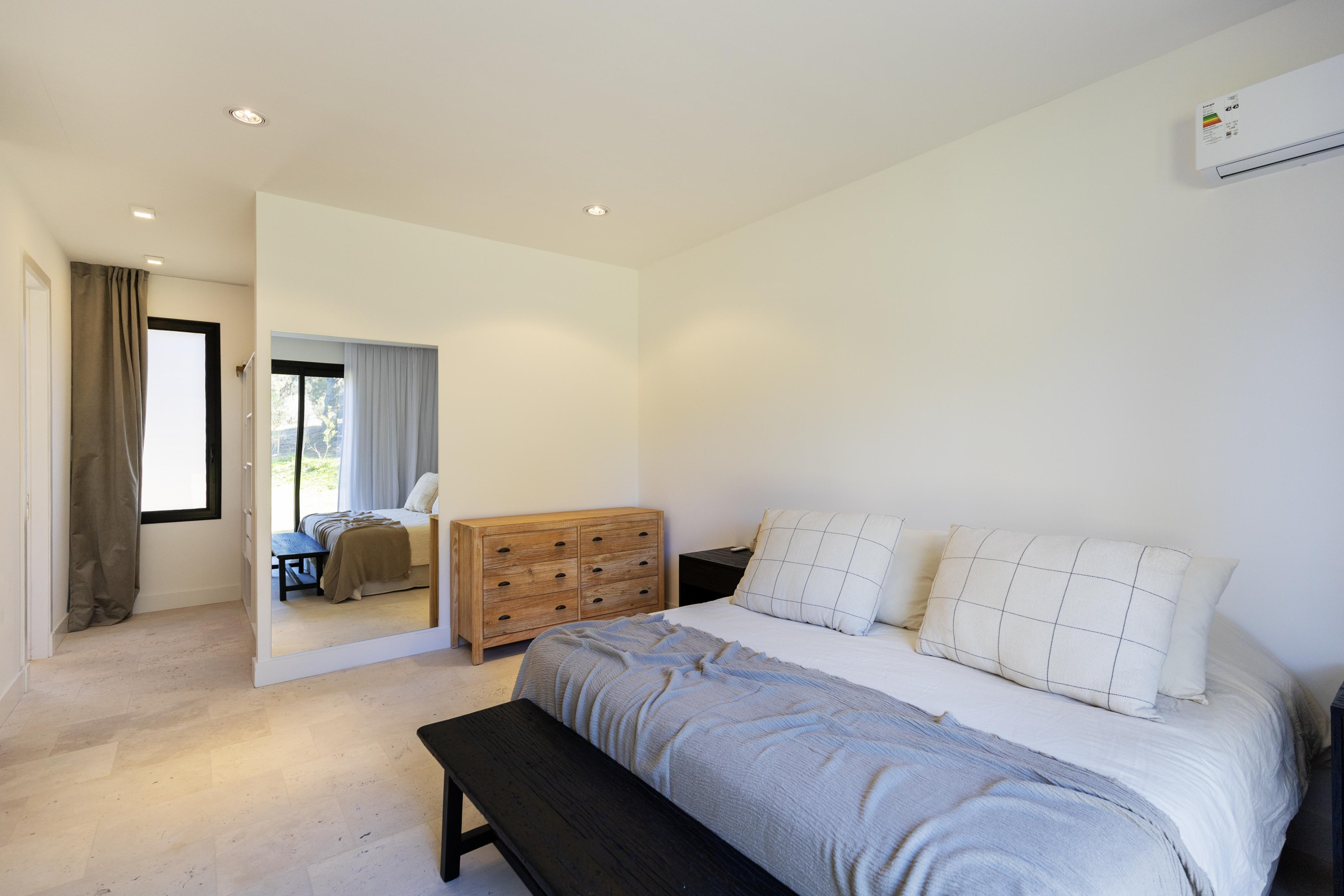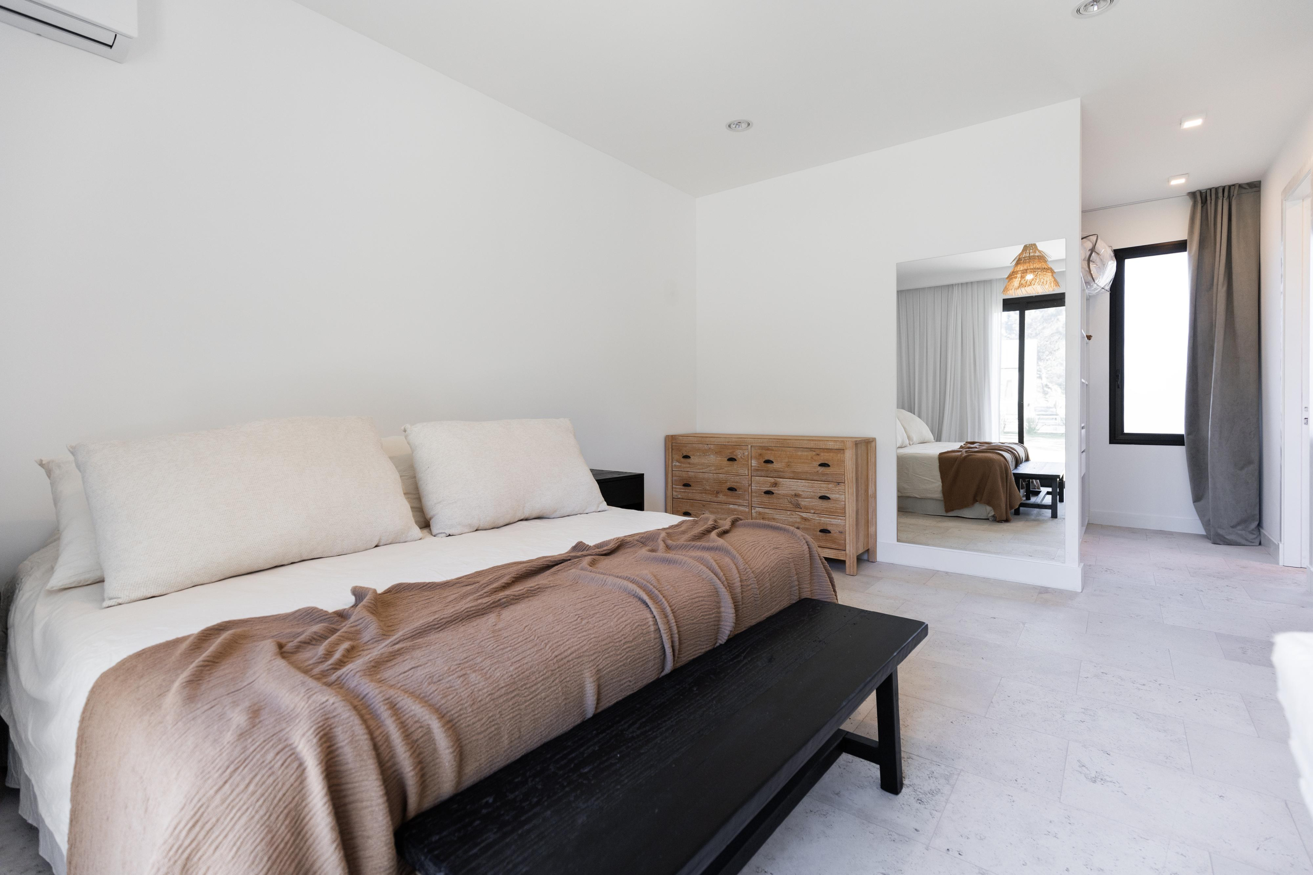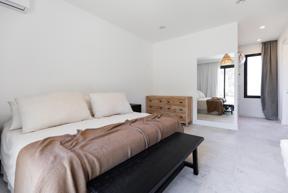 Principal: El primer bloque de la casa es el corazón de la residencia, un amplios espacio abierto que invita a la convivencia y al descanso. La sala de estar, con sus ventanales de piso a techo, ofrece vistas al jardin y piscina y al paisaje circundante. La cocina equipada con electrodomésticos de última generación Este bloque también alberga el dormitorio principal, un refugio de lujo con un baño en suite, vestidor y acceso directo a una terraza con vista al jardin, y un play room con tv y audio de calidad. Este espacio cuenta con habitacion de servicio y lavadero.