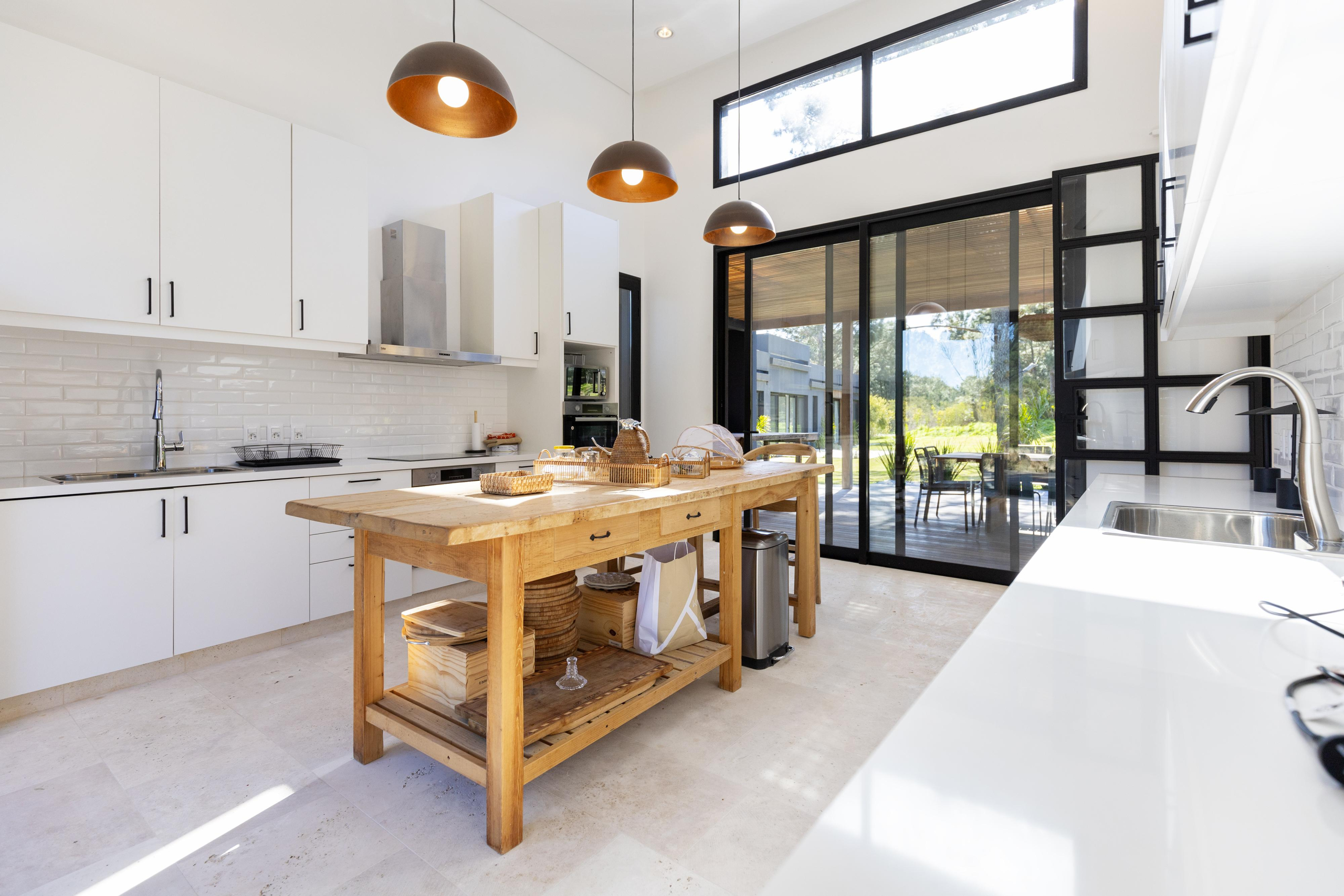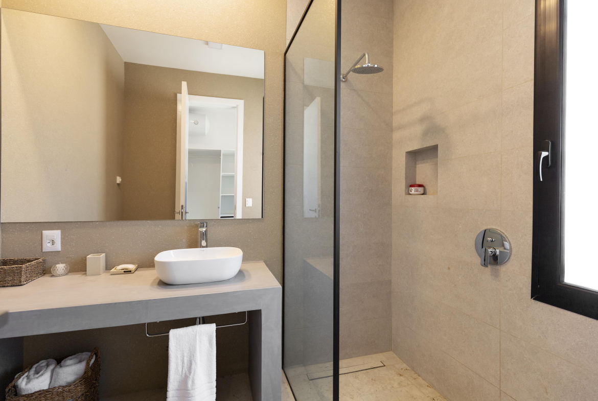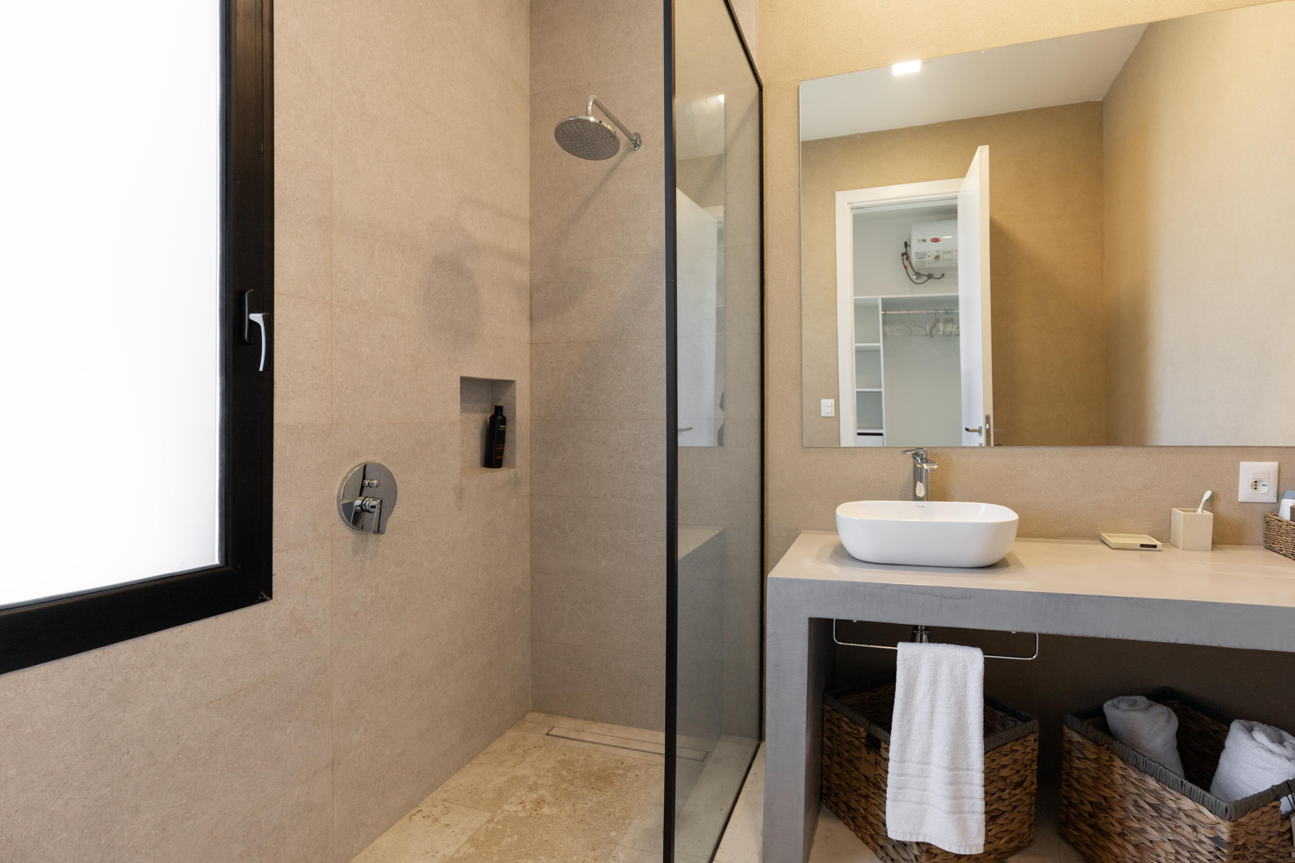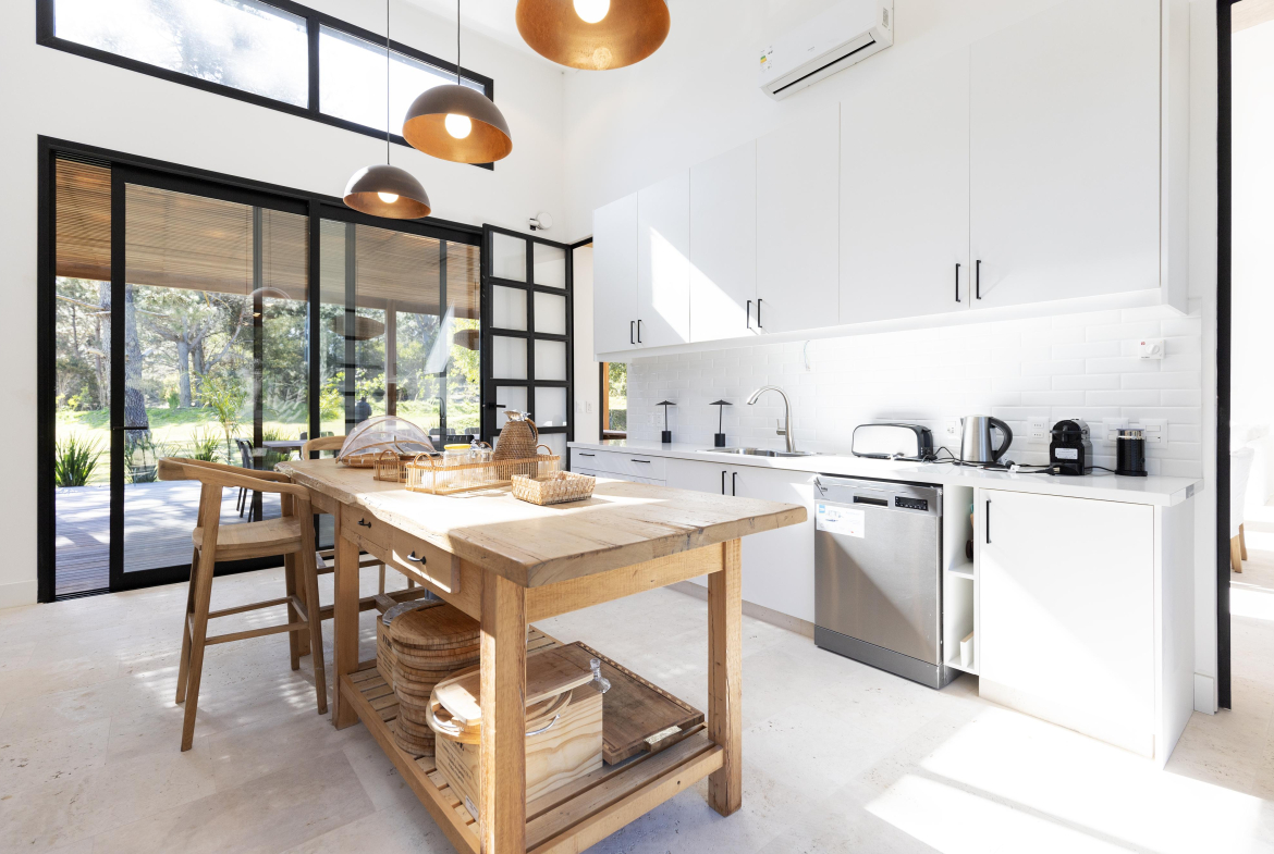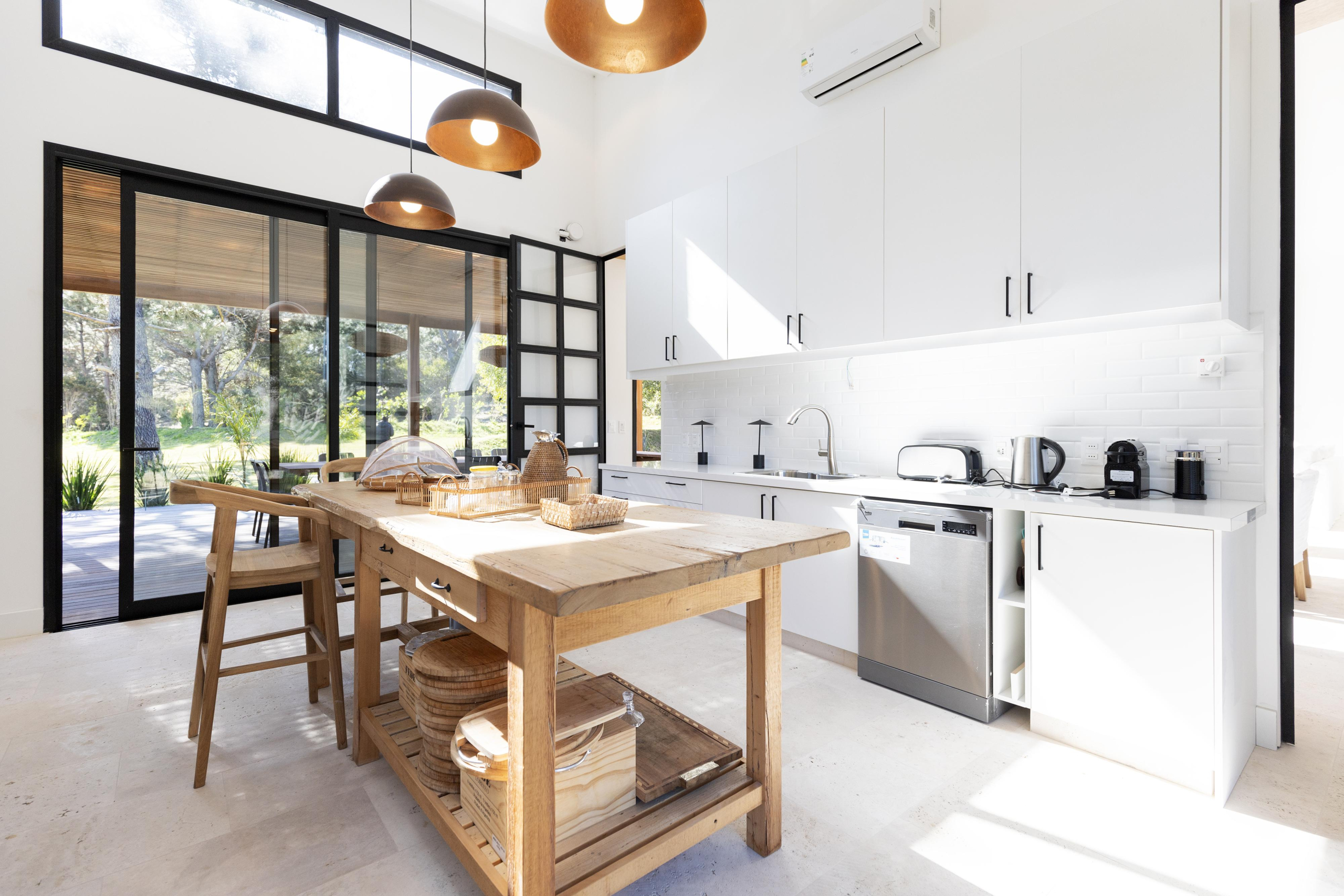 Principal: El primer bloque de la casa es el corazón de la residencia, un amplios espacio abierto que invita a la convivencia y al descanso. La sala de estar, con sus ventanales de piso a techo, ofrece vistas al jardin y piscina y al paisaje circundante. La cocina equipada con electrodomésticos de última generación Este bloque también alberga el dormitorio principal, un refugio de lujo con un baño en suite, vestidor y acceso directo a una terraza con vista al jardin, y un play room con tv y audio de calidad. Este espacio cuenta con habitacion de servicio y lavadero.
