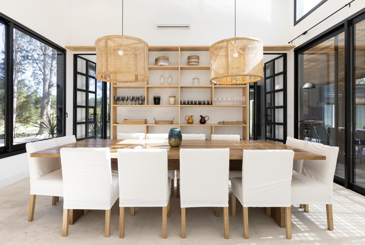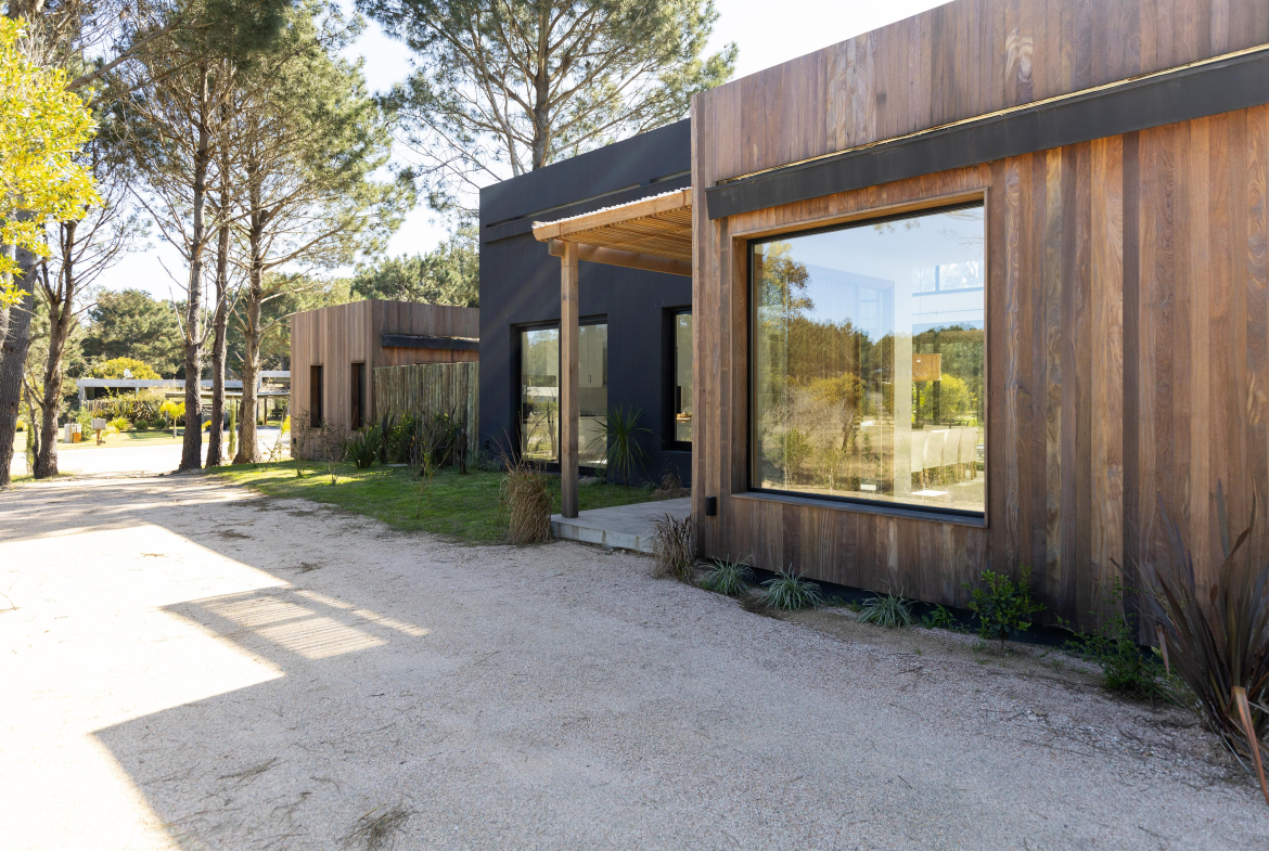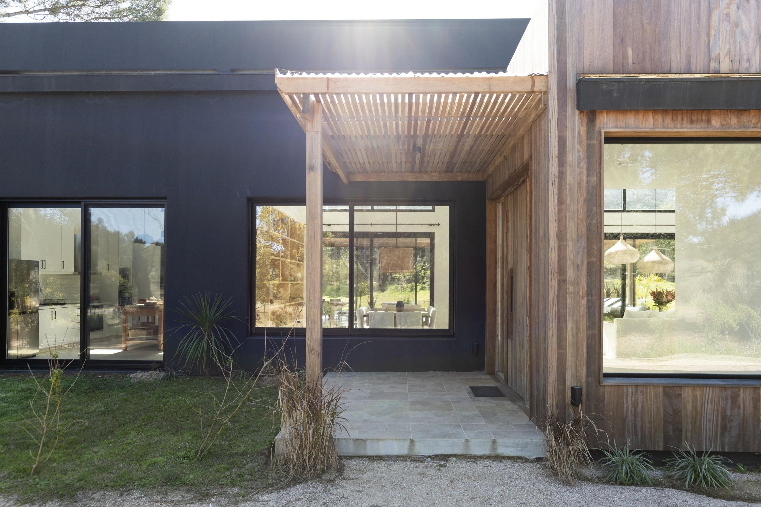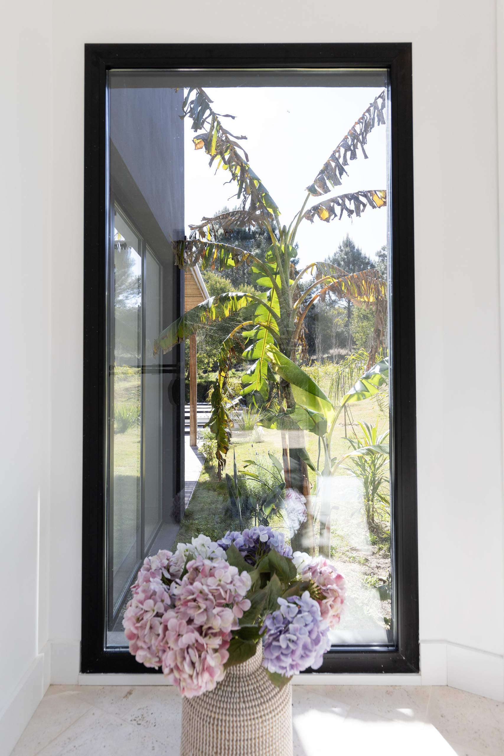 Ambos bloques están separados fisicamente por un pequeño espacio que proporciona una transición suave entre una casa y otra, al tiempo que mantiene la privacidad y la independencia de cada área. La casa está rodeada de arboles y cuenta con una terraza exterior con zona de barbacoa, perfecta para disfrutar del clima y las vistas a la laguna.