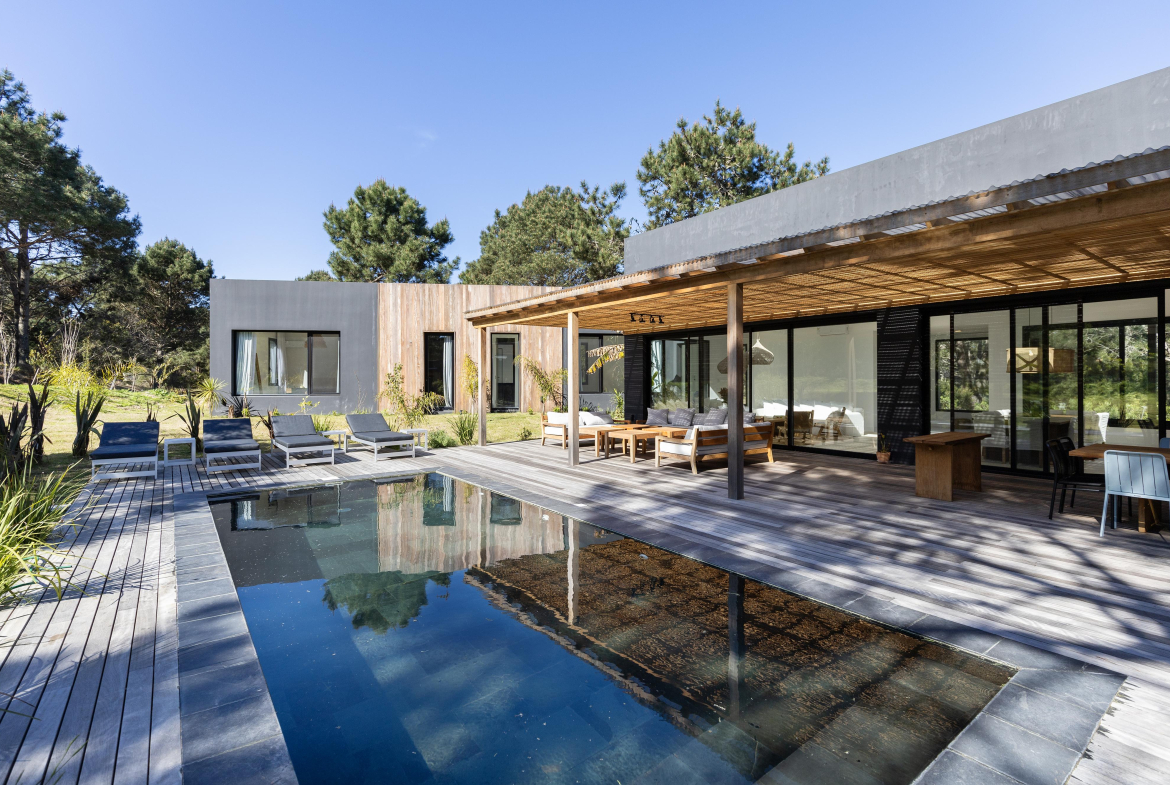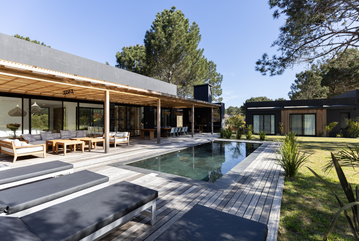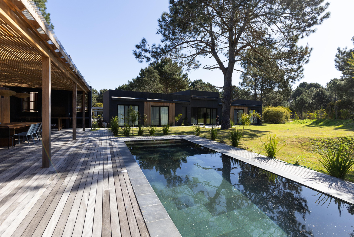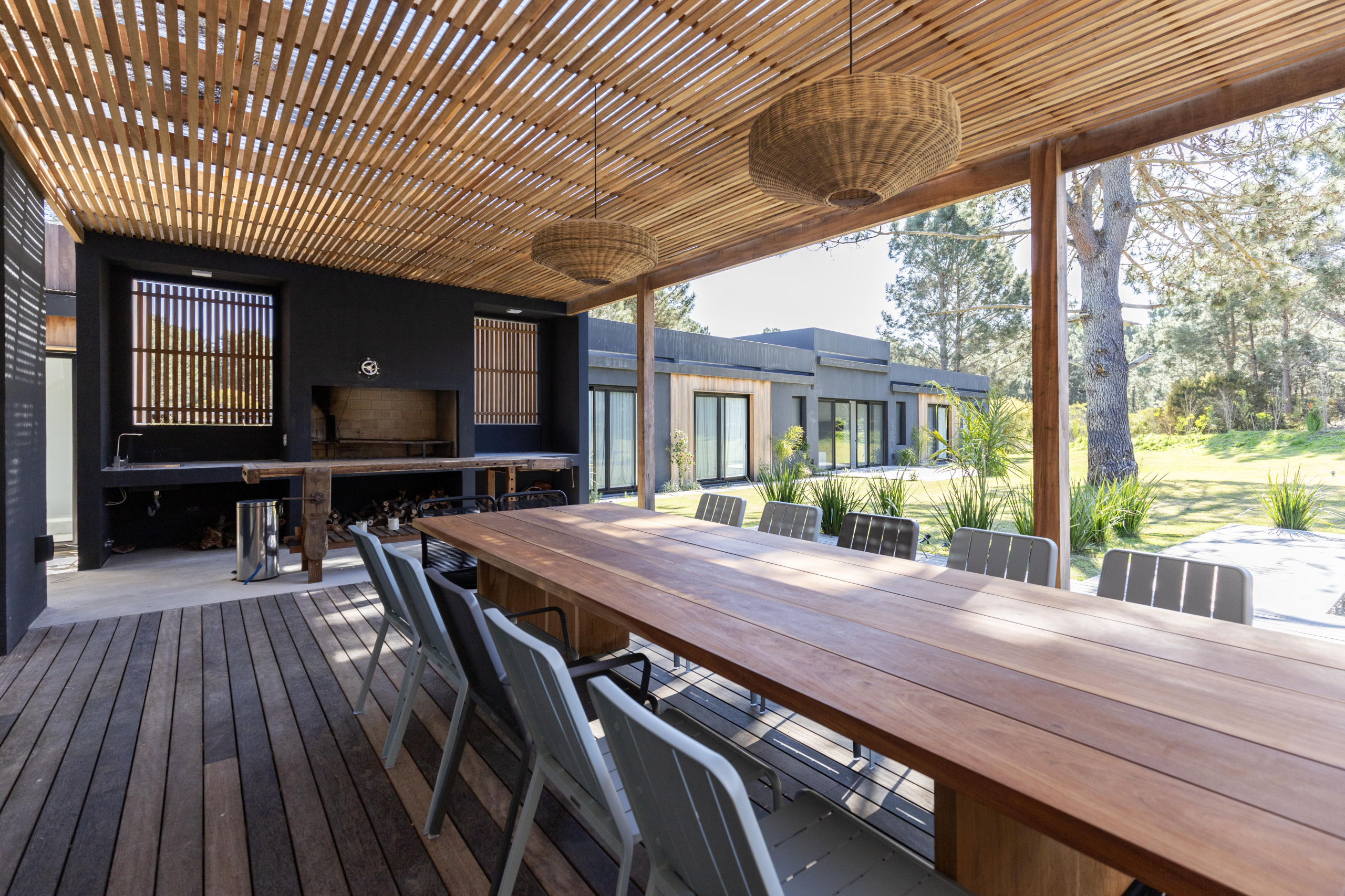 Ubicada en el exclusivo barrio privado de Laguna Escondida, esta impresionante casa se destaca por su diseño único dividido en dos bloques que ofrecen funcionalidad , independencia y un estilo en armonía perfecta con su entorno natural.