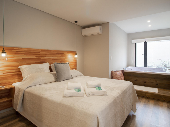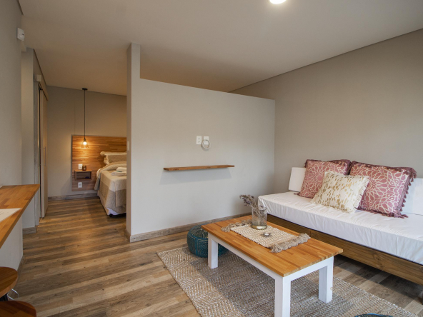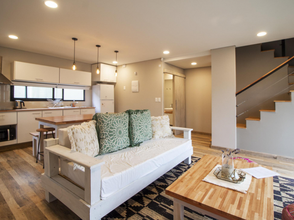 Las Esteñas son dos terrenos fusionados, con buena orientación con respecto al sol y la distribución de las unidades. Son 11, de las cuales hay 3 duplex, 5 estudios, 1 estudio con jacuzzi y 2 mono ambientes.