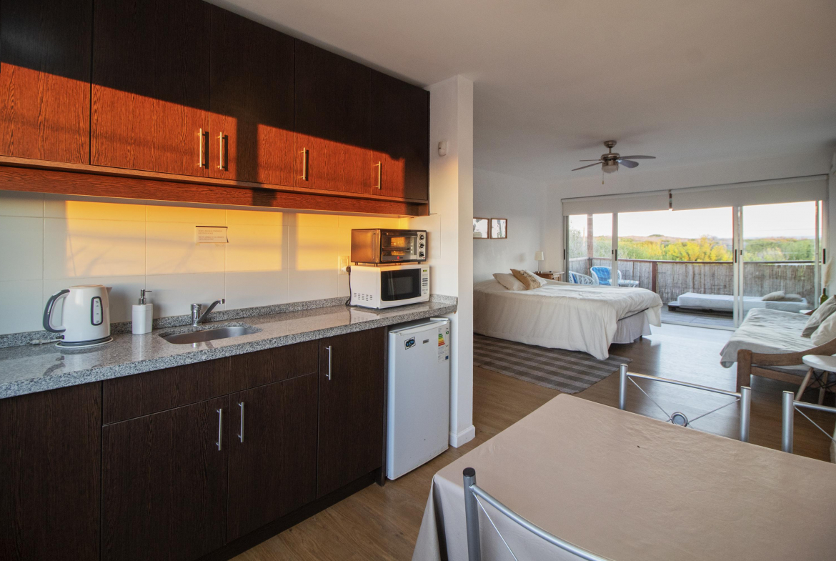 Las unidades son de 40 m2 cada una con un espacio integrado con aire acondicionado, cama matrimonial + sillón cama, kitchenette completa comedor diario, baño. Los apartamentos de la segunda planta tienen el agregado de la vista al mar y al pueblo más terraza techada.