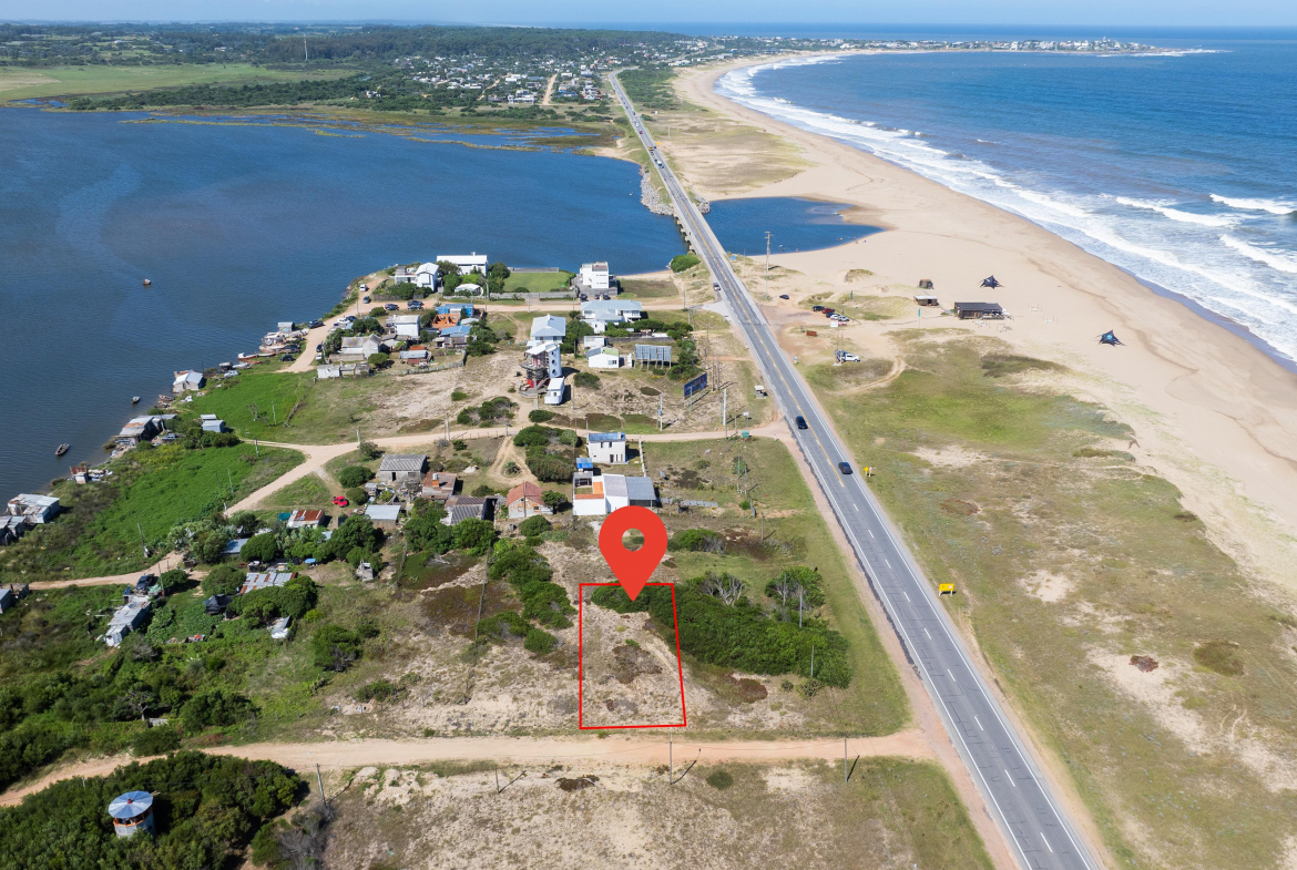 Lote en Santa Monica de 412 metros cuadrados, a 250 metros del puente de la Laguna Jose Ignacio. Se encuentra en una de las bajadas a la laguna Jose Ignacio, con doble vista , al oceano y a la laguna .