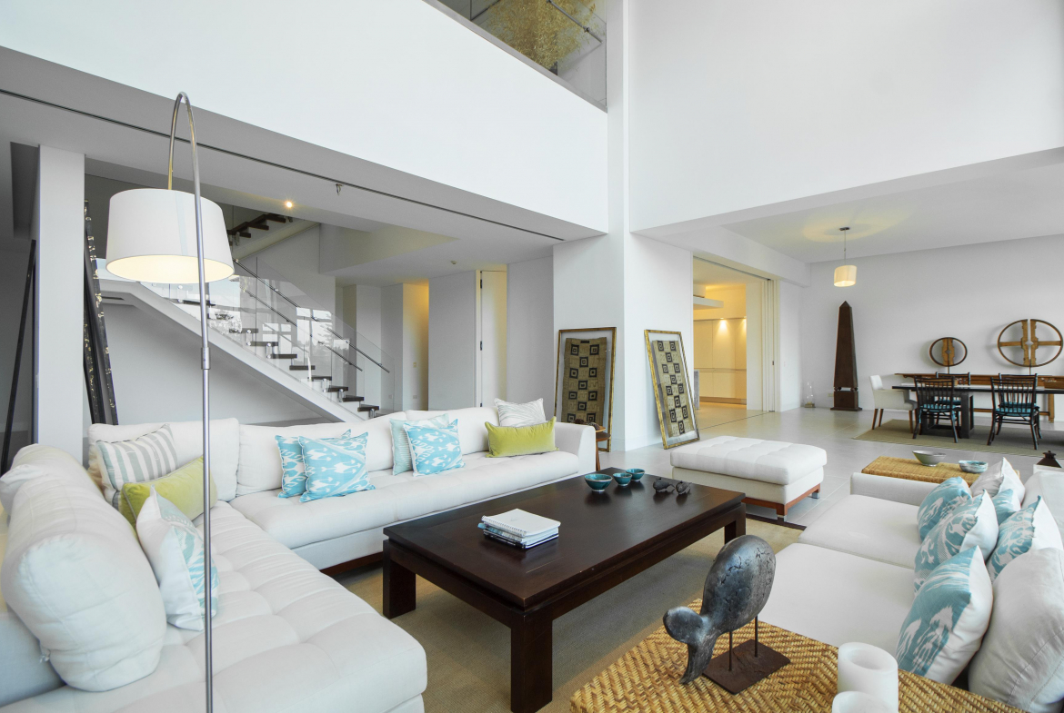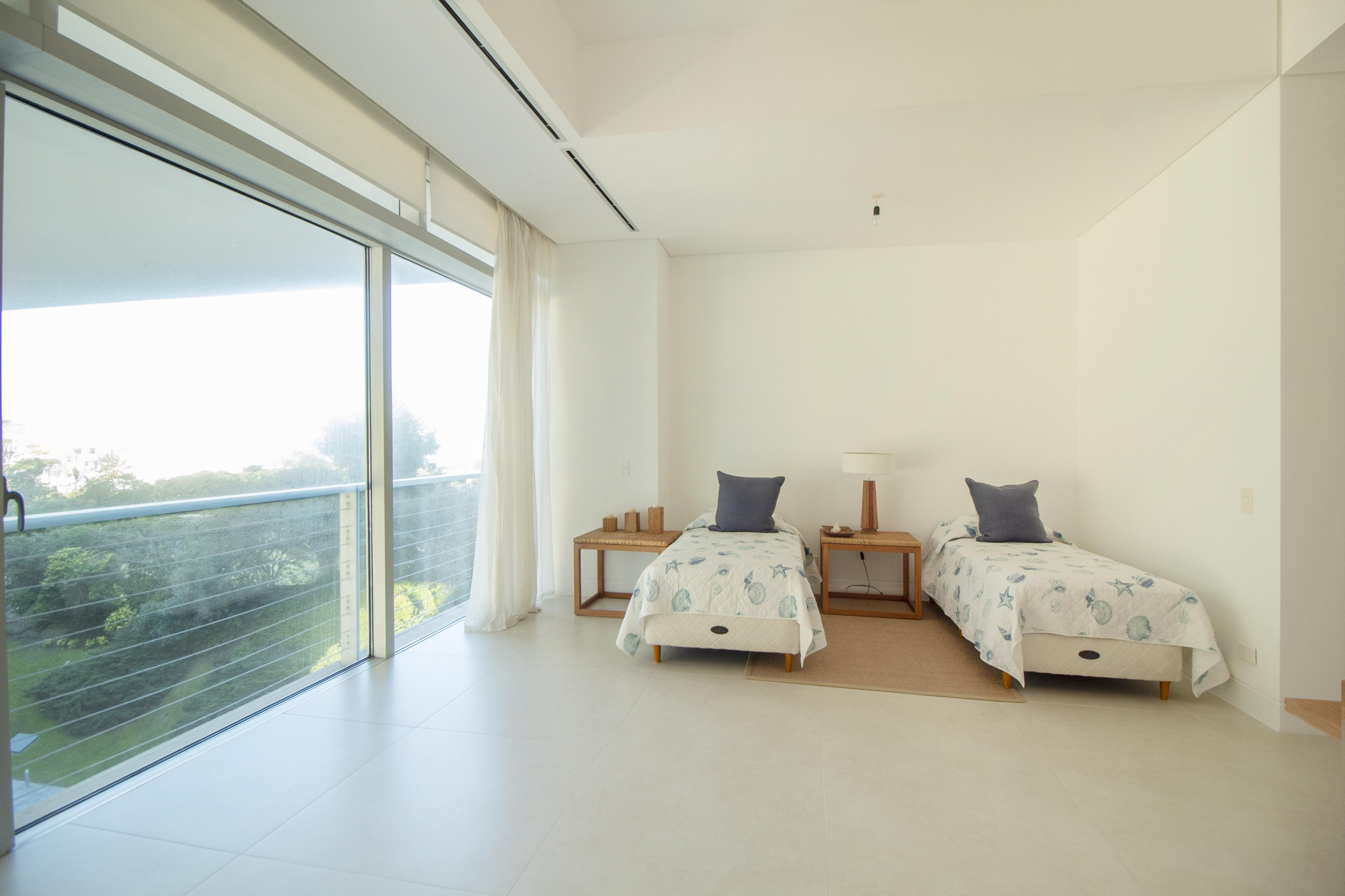 Amplio apartamento duplex central con vista al mar. Cuenta en la plata baja con living comedor y cocina independiente con baño -lavadero , toilette y dos dormitorios en suitecon vestidor .En la planta alta tenemos una sala de televisión, una área de descanso, dos dormitorios en suite, el principal con salida al balcón con vista al mar, amplio vestidor y baño con jaccuzi. Losa rádiante en baños y calefacción central en todo el apartamento . Dormitorio de servicio en suite externo al apartamento.