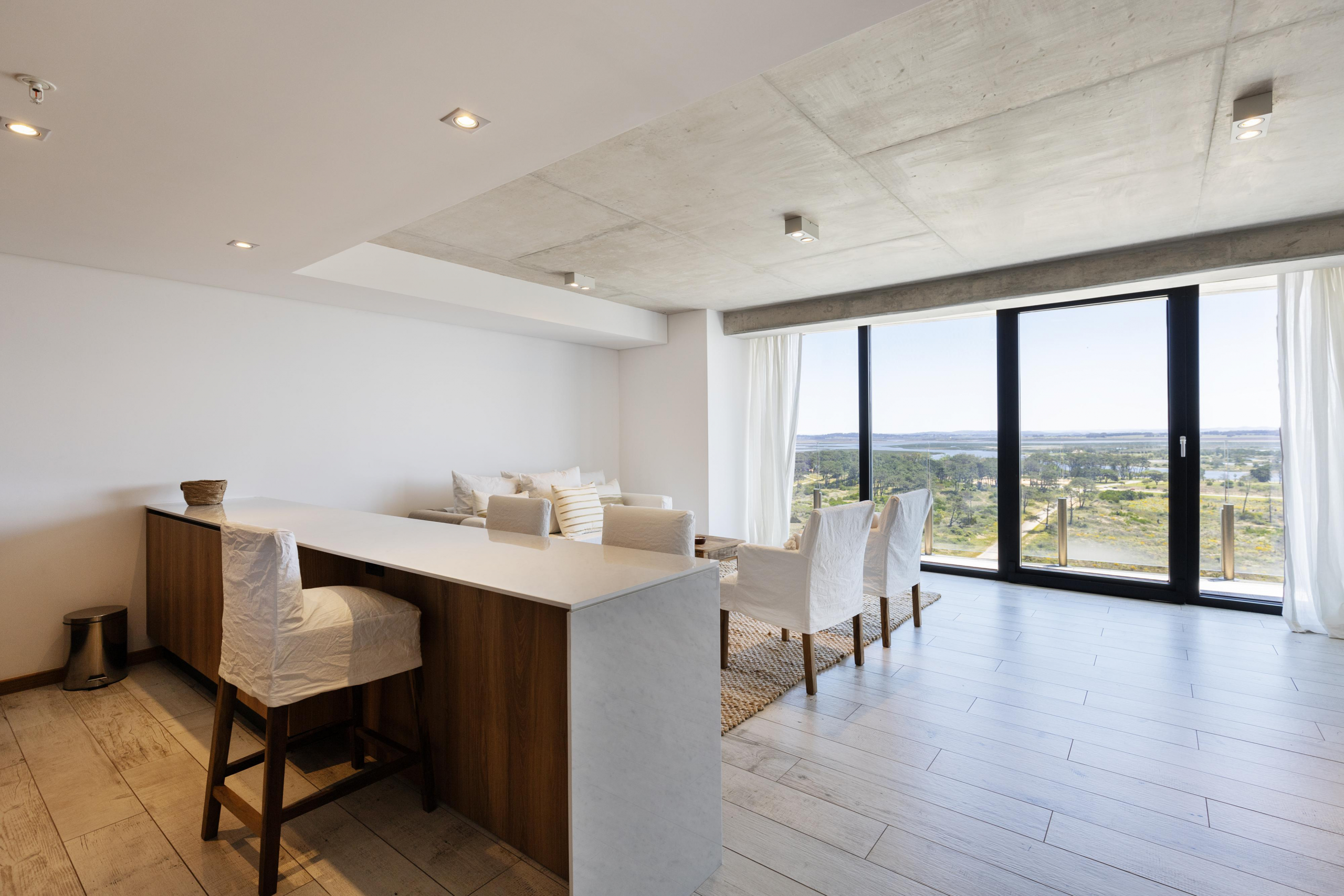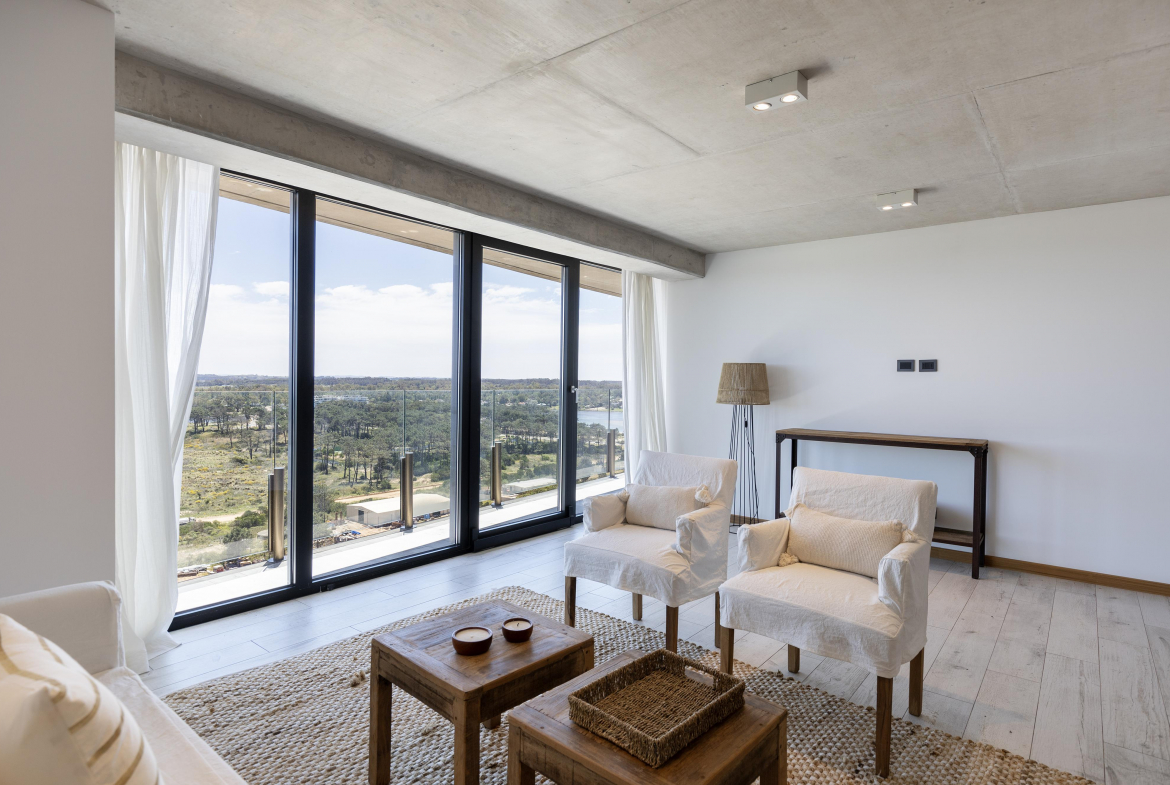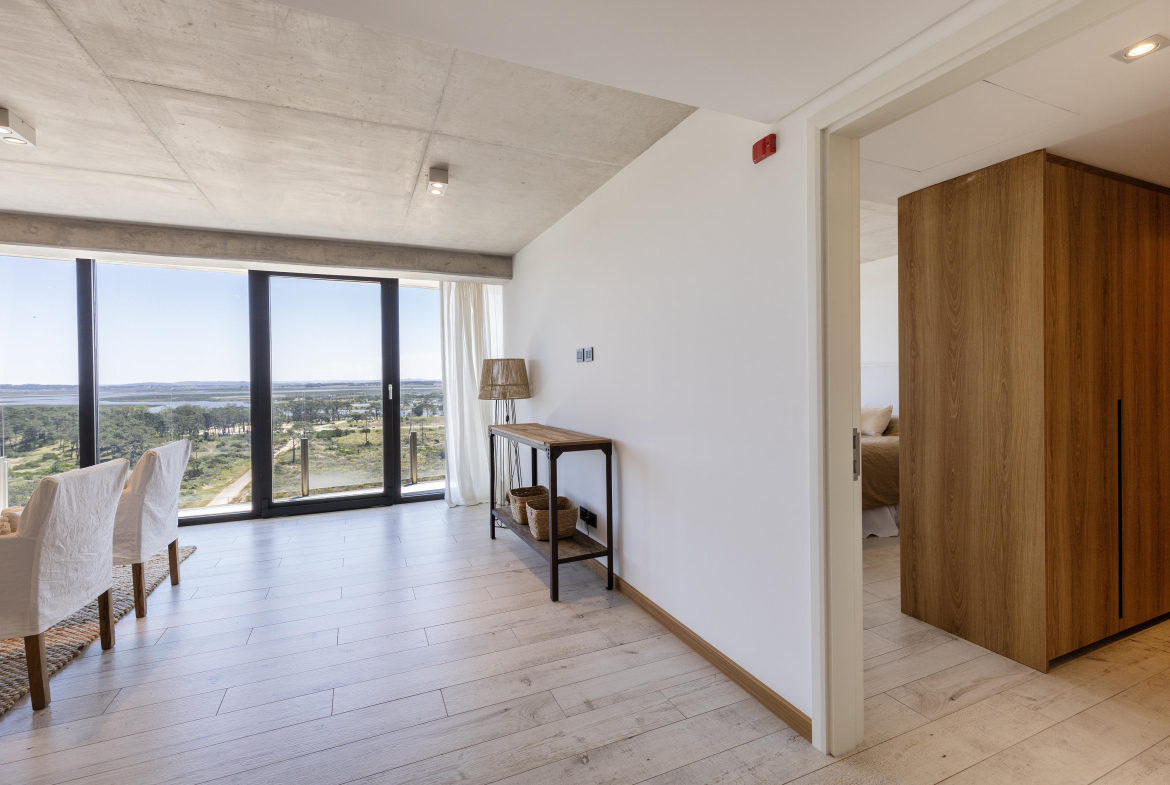 Esta unidad cuenta con un total de 116 metros cuadrados, en un piso 14, distribuido en un dormitorio en suite, baño social. El área de comedor se integra perfectamente con la cocina, creando un ambiente sociable y acogedor unido a un amplio y luminoso living que da la sensación de estar suspendido sobre el mar. Esta fusión de espacios ofrece vistas panorámicas inigualables y una de amplitud simplemente extraordinaria.
