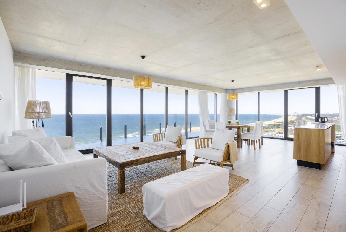 Esta unidad cuenta con un total de 226 metros cuadrados, en un piso 14, distribuido en dos dormitorios en suite, baños social completo, el área de comedor se integran perfectamente con la cocina, creando un ambiente sociable y acogedor unido a un amplio y luminoso living que da la sensación de estar suspendido sobre el mar. Esta fusión de espacios ofrece vistas panorámicas inigualables y una de amplitud simplemente extraordinaria.