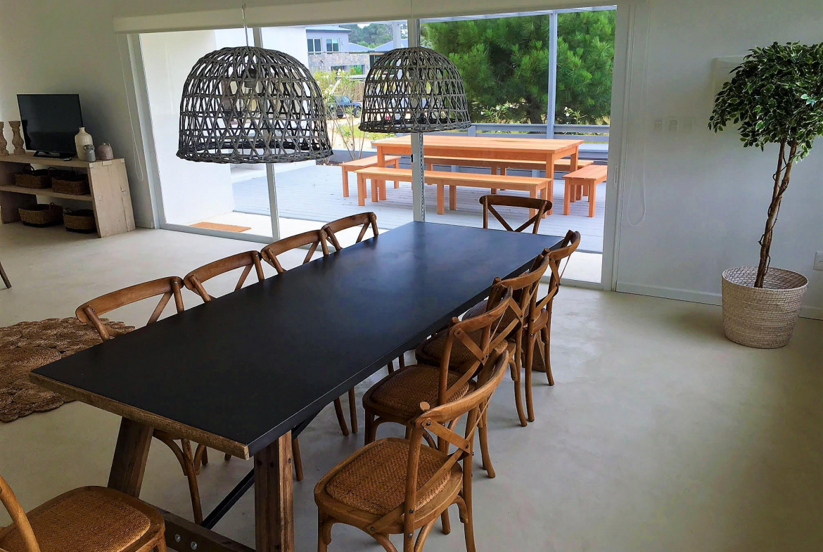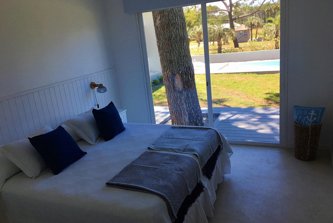 El metraje es de 180m² en planta baja y 100 en planta alta. Posee calefacción por losa radiante eléctrica, y equipos split en todos los ambientes (incluido la dependencia de servicio). Living comedor amplio con hogar a leña, cocina semi integrada y toilette . Tiene capacidad máxima de 12 plazas distribuidas en 5 dormitorios (cuatro de ellos en suite) y la dependencia de servicio.