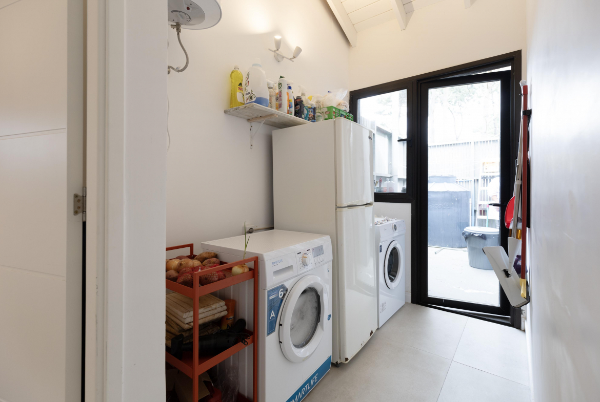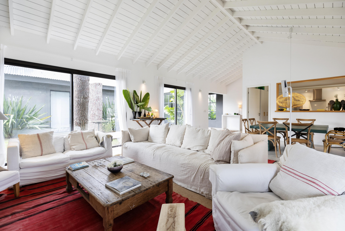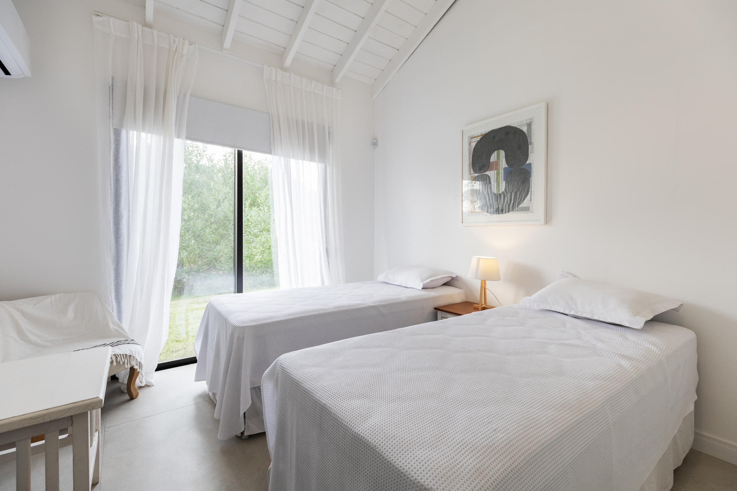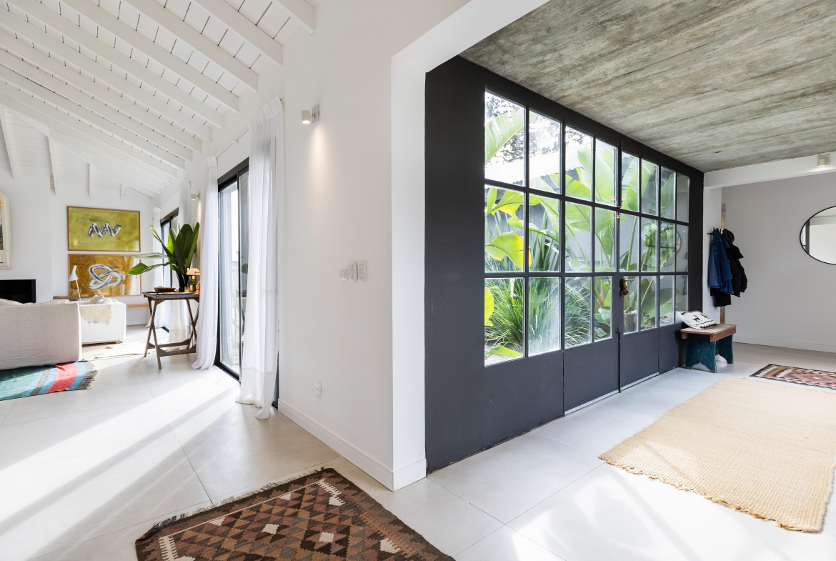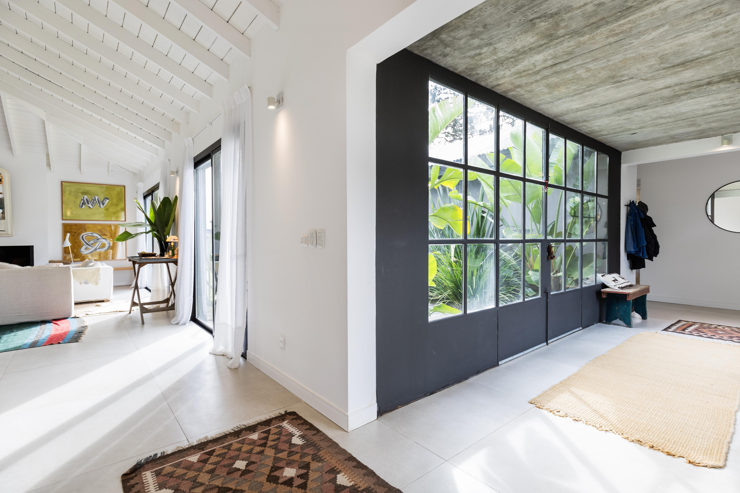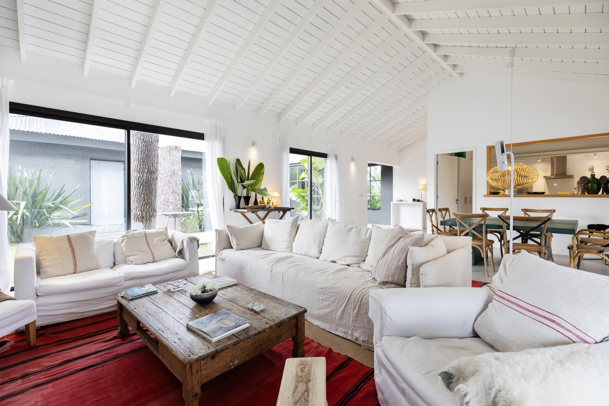 Emplazada en un terreno de mil mts, se desarrolla esta casa en una planta, distribuida en dos módulos, dentro del barrio privado Pinar del Faro.