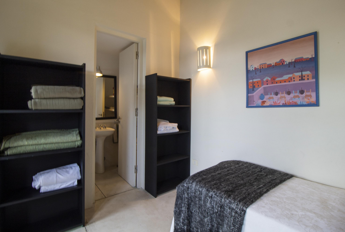 En el segundo modulo, living con cocina integrada y dos dormitorios que comparten un baño. Área de servicio con baño que posee entrada independiente desde el patio, y lavadero.