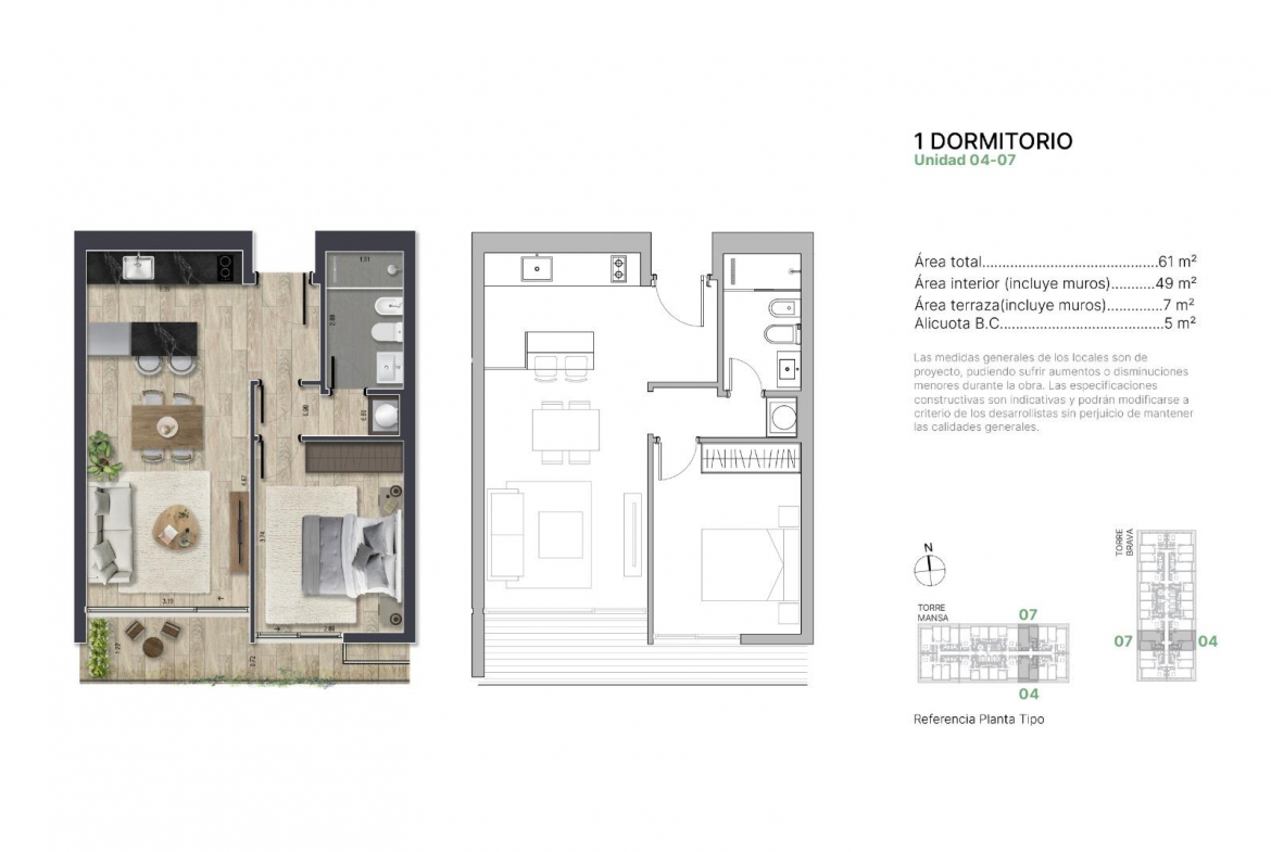 1 dormitorio cómodo 1 baño completo Cocina integrada Espacios bien aprovechados