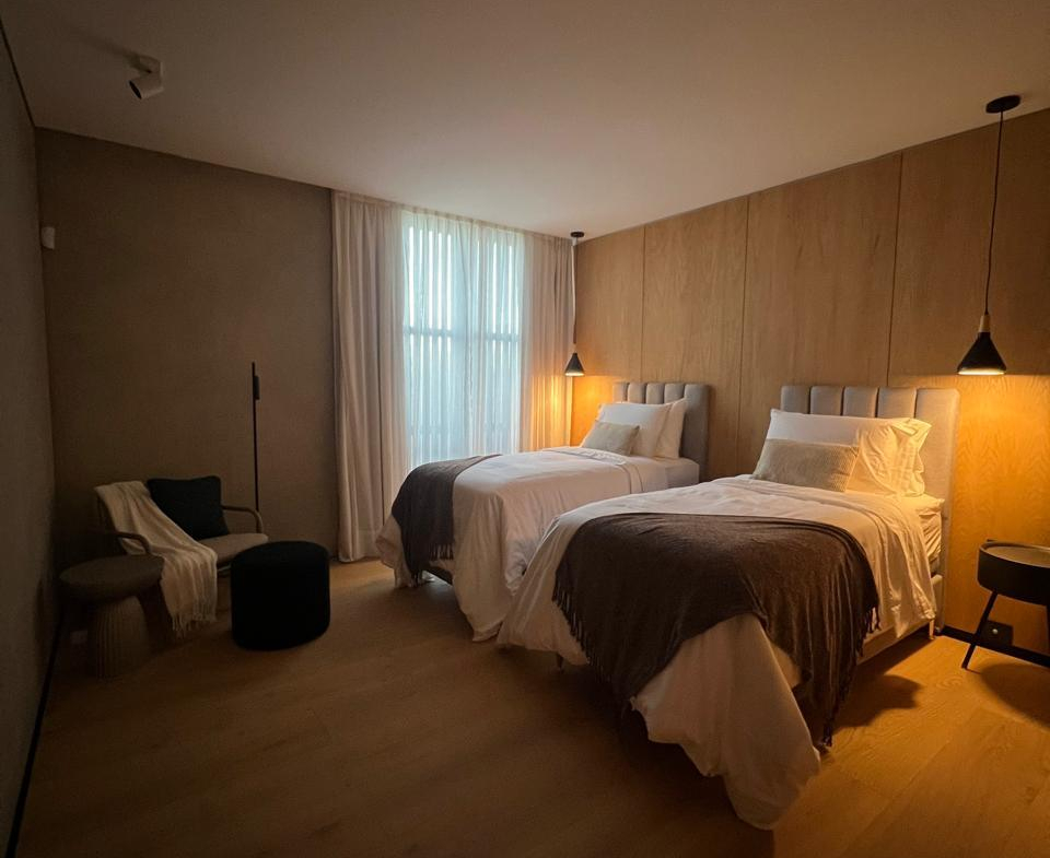 Dos dormitorios en suite y un tercer dormitorio. También cuenta con un tercer baño para mayor comodidad.