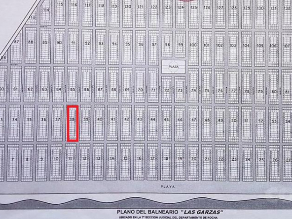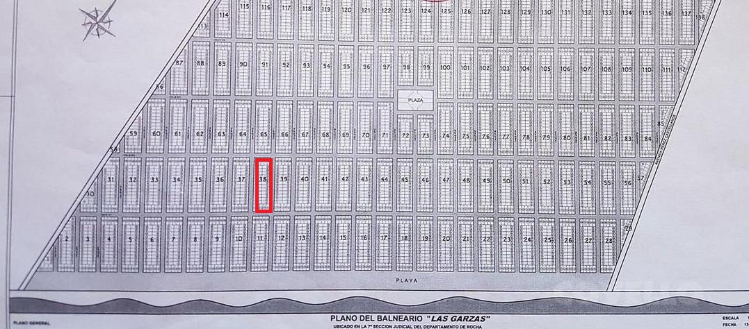 26 solares ubicados en la manzana 38 del Balneario “Las Garzas” en Rocha, aproximadamente en el Kilometro 215.500 de la ruta 10.