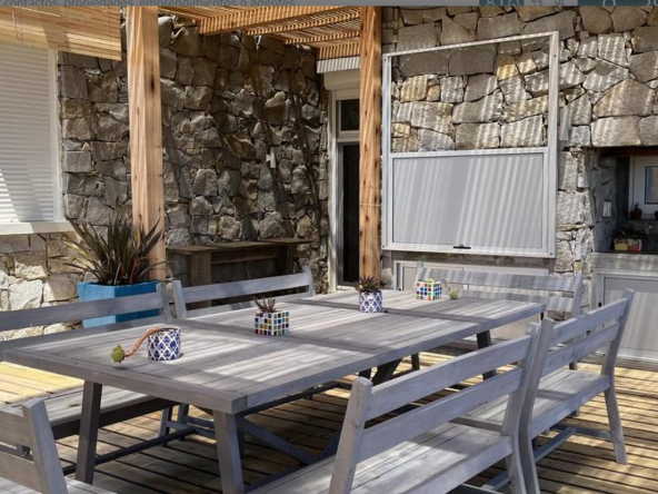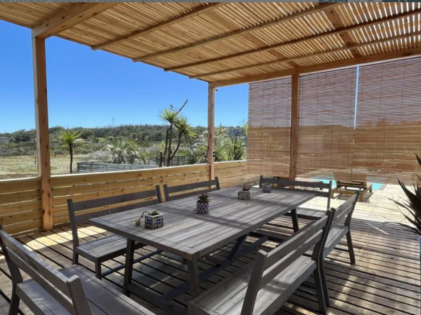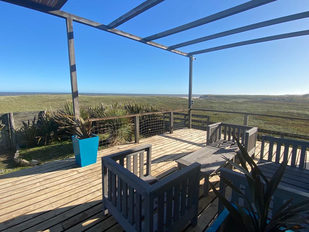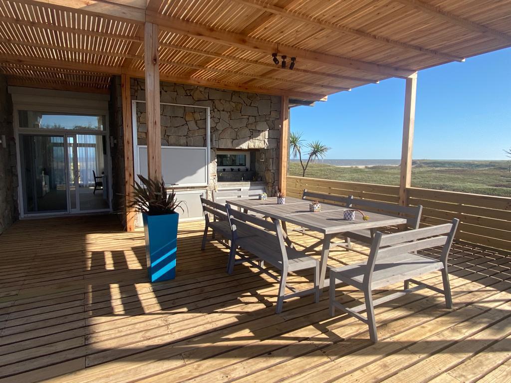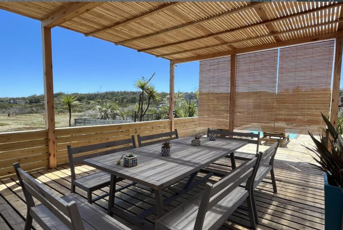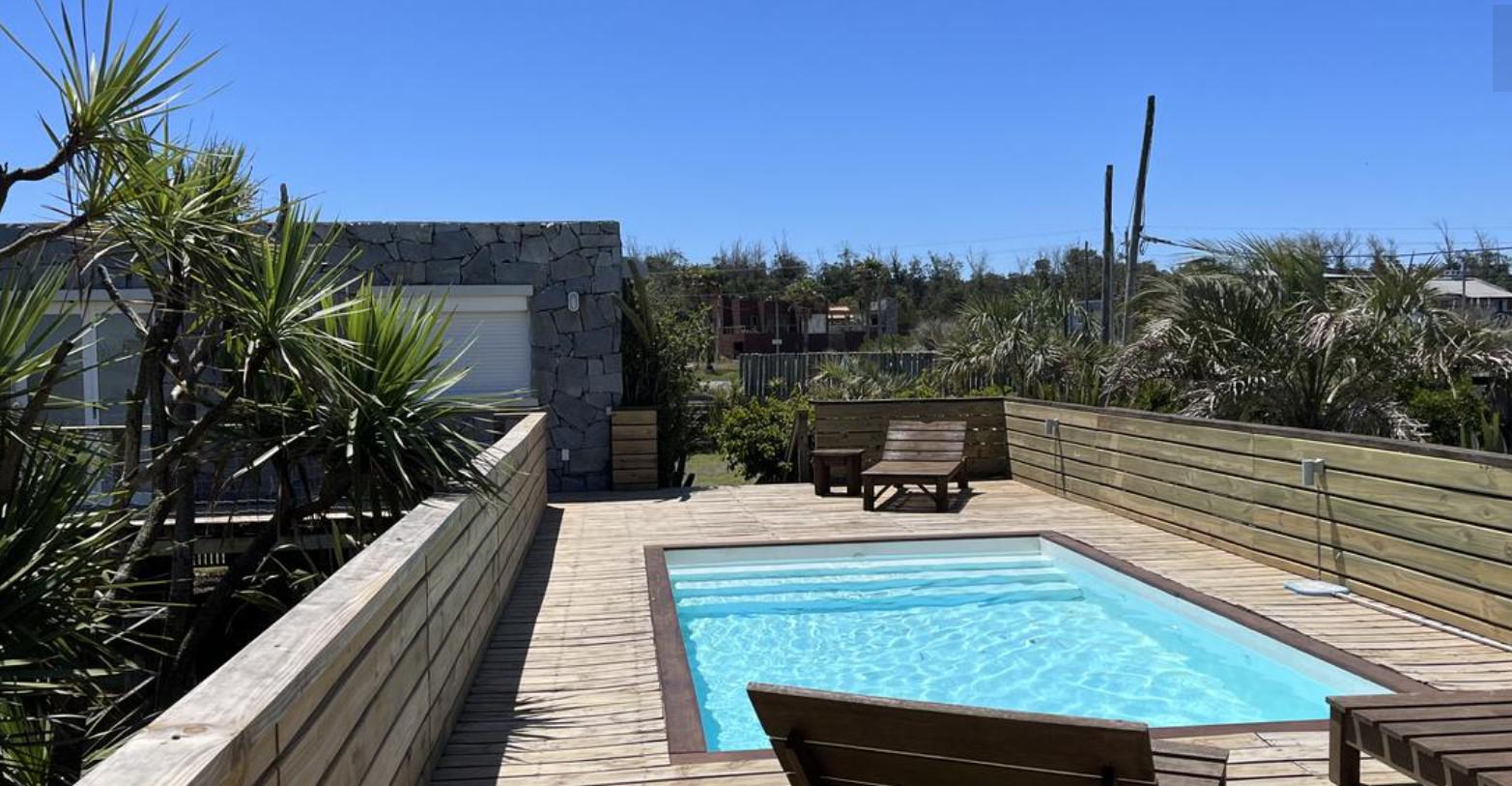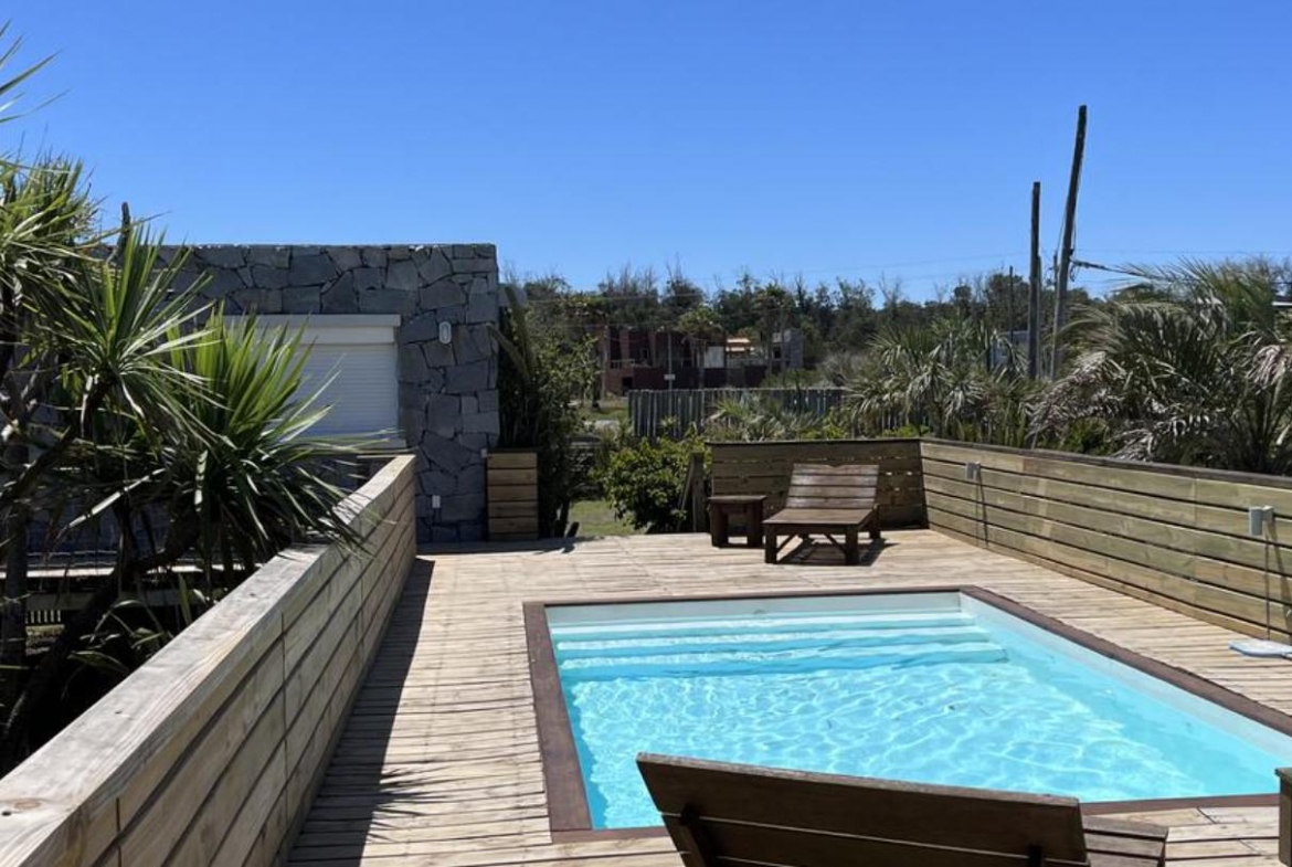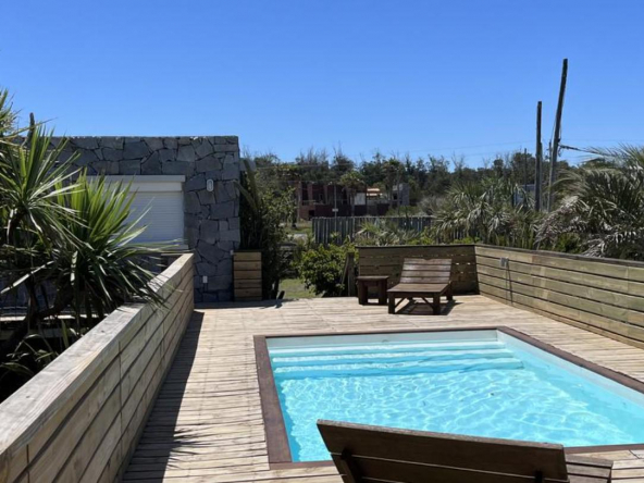 Esta linda y canchera casa de playa posee pileta y dependencia de servicio.