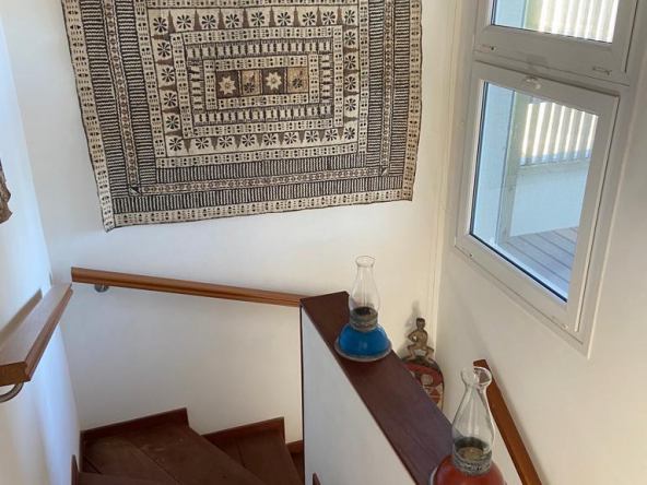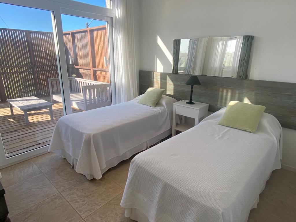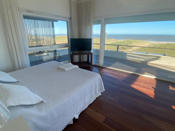 La master suite se encuentra en planta alta con salida a una amplia terraza hacia el mar y donde también se pueden disfrutan los atardeceres mas lindos del lugar. Allí también un tercer dormitorio.