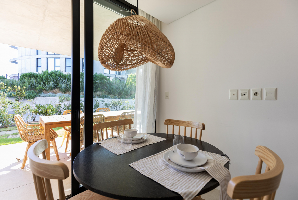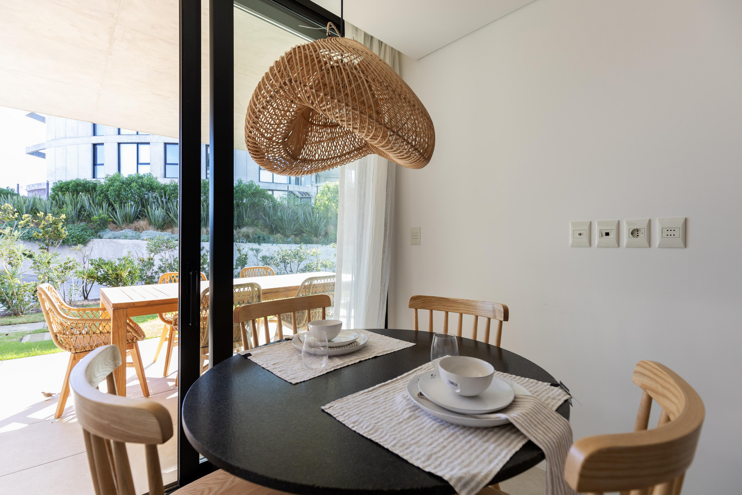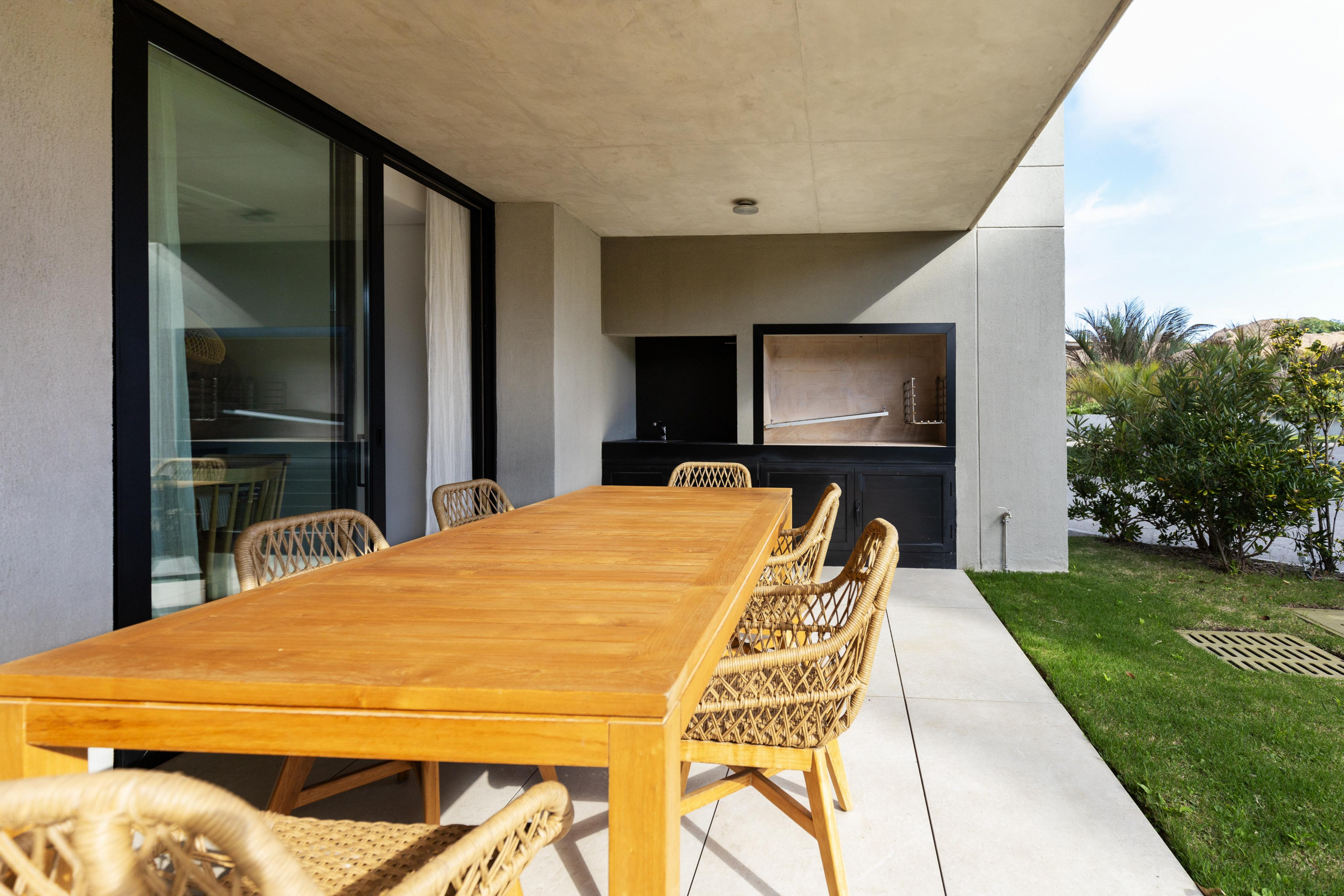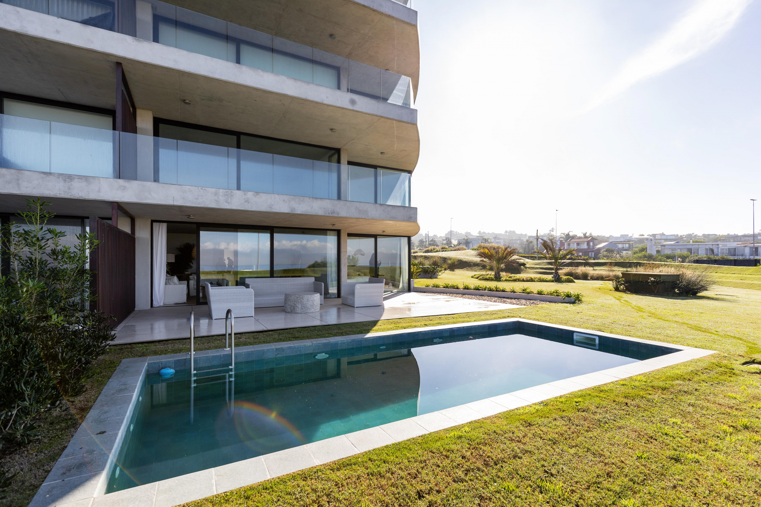 Tiene 3 dormitorios en suite, incluyendo un dormitorio de servicio, un toillete, todo a estrenar. A su vez, al ser en planta baja incluye piscina privada y jardin. Al fondo, junto al jardin interno, se encuentra el parrillero. Incluye instalación de aire acondicionado.