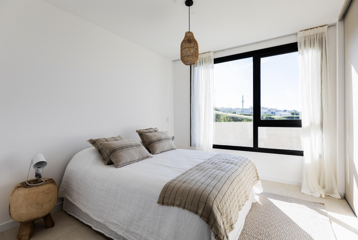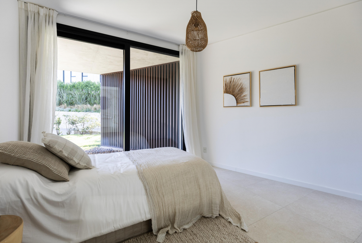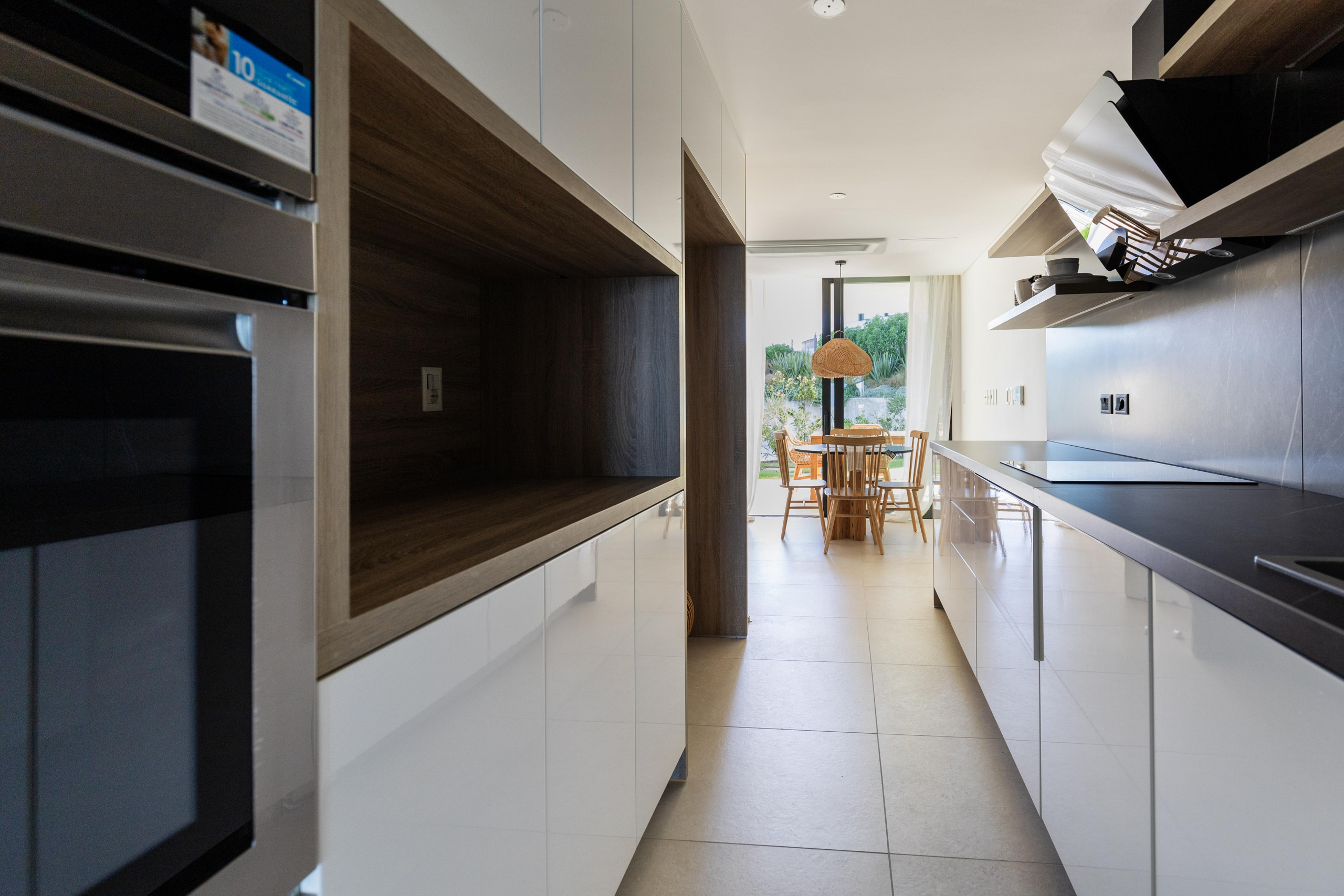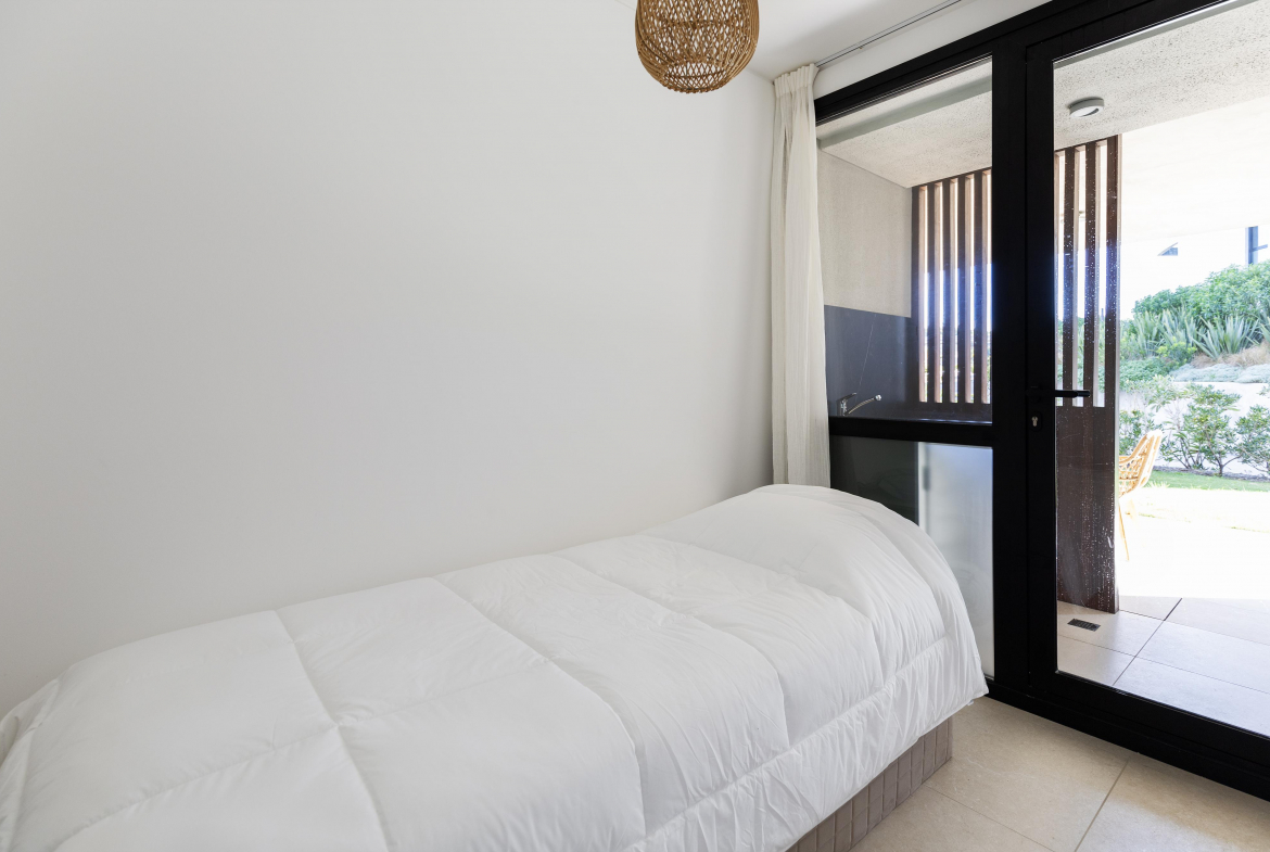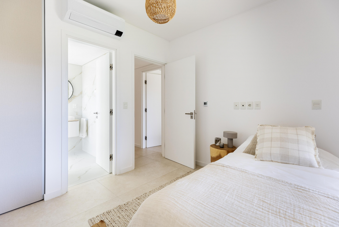 Tiene 3 dormitorios en suite, incluyendo un dormitorio de servicio, un toillete, todo a estrenar. A su vez, al ser en planta baja incluye piscina privada y jardin. Al fondo, junto al jardin interno, se encuentra el parrillero. Incluye instalación de aire acondicionado.