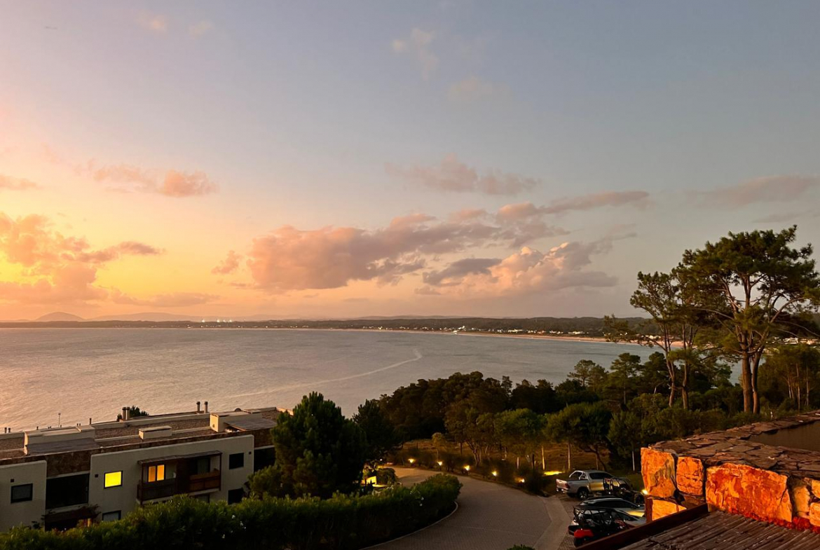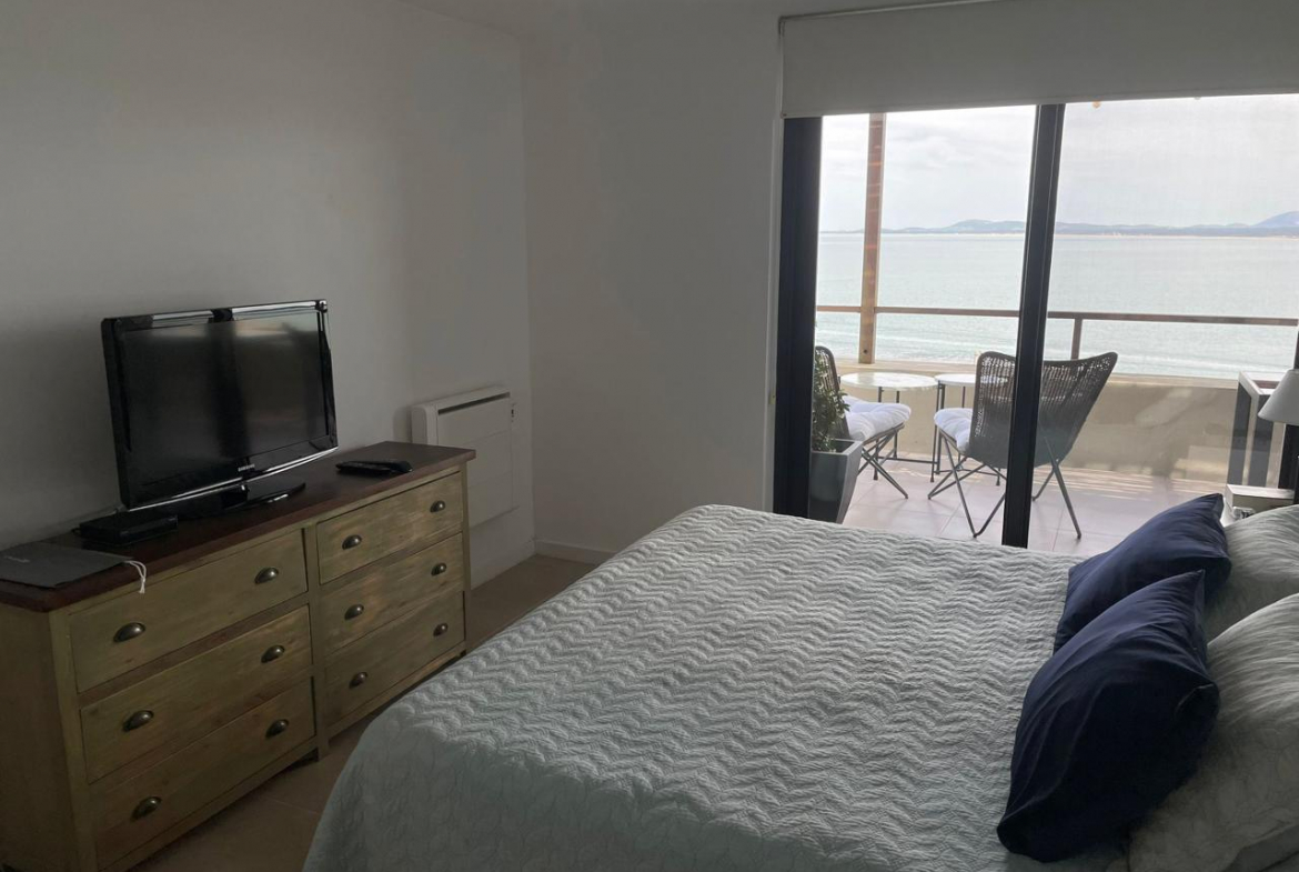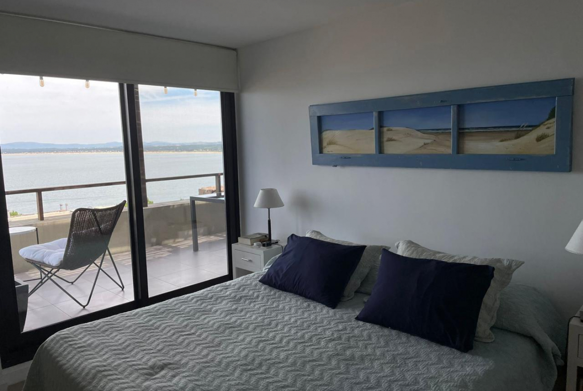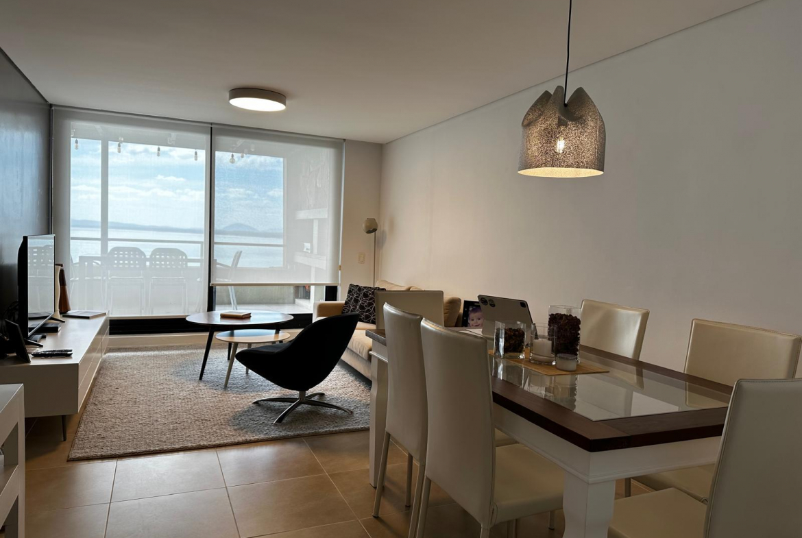 Dto de 2 dormitorios en suite, toilete, parrillero con vista al mar, servicio de mucama, piscina del complejo, club house.