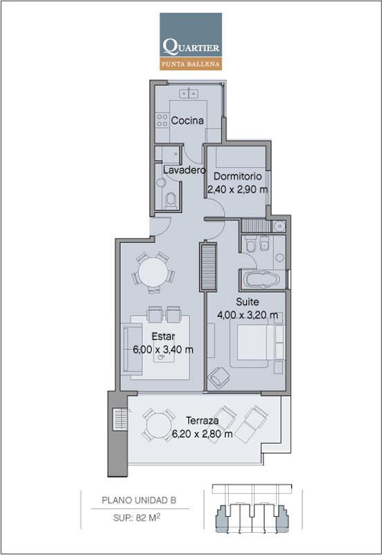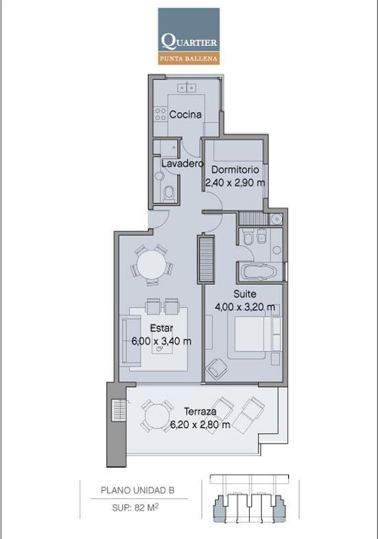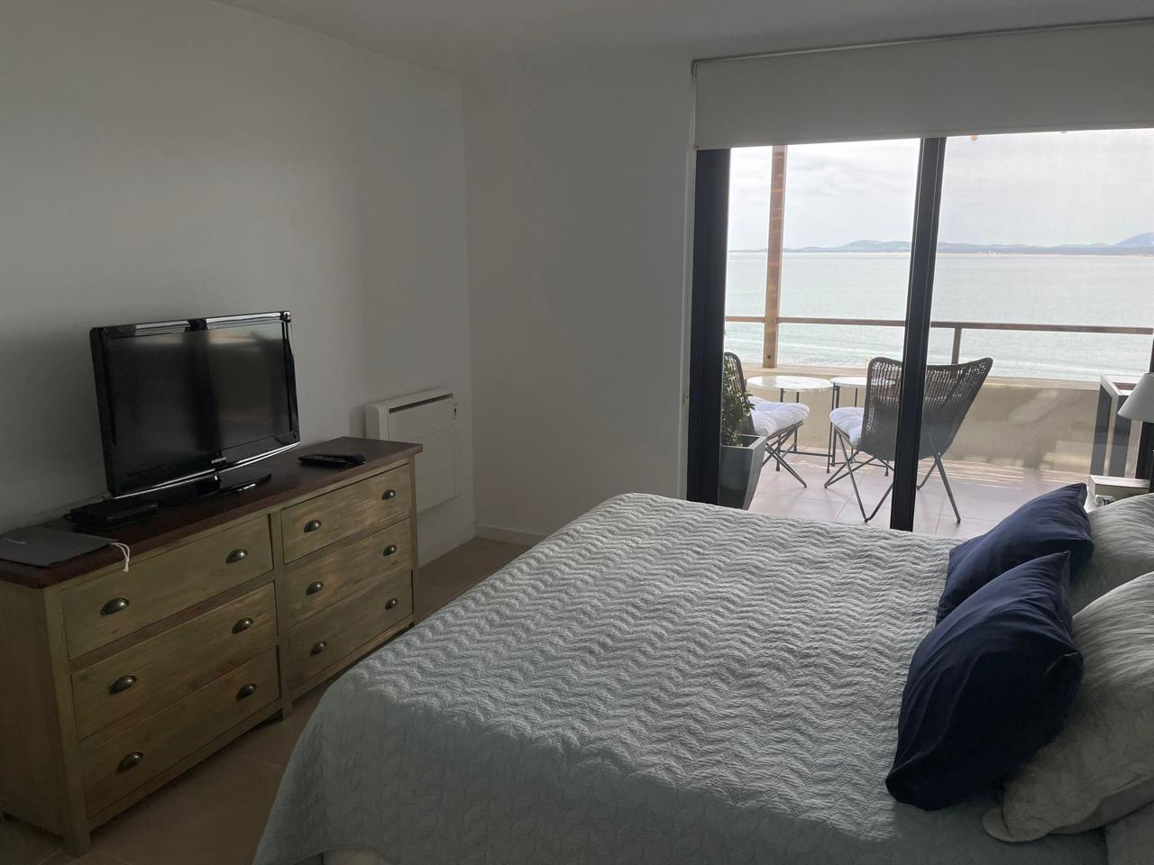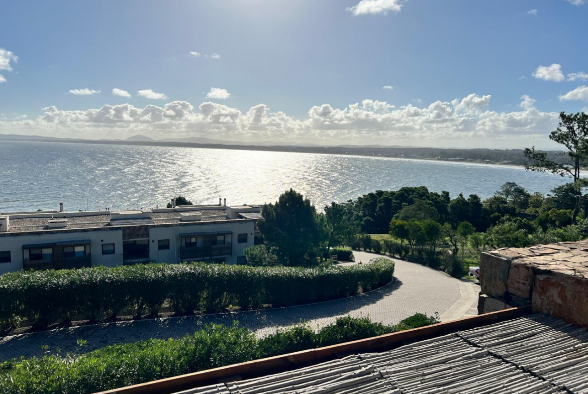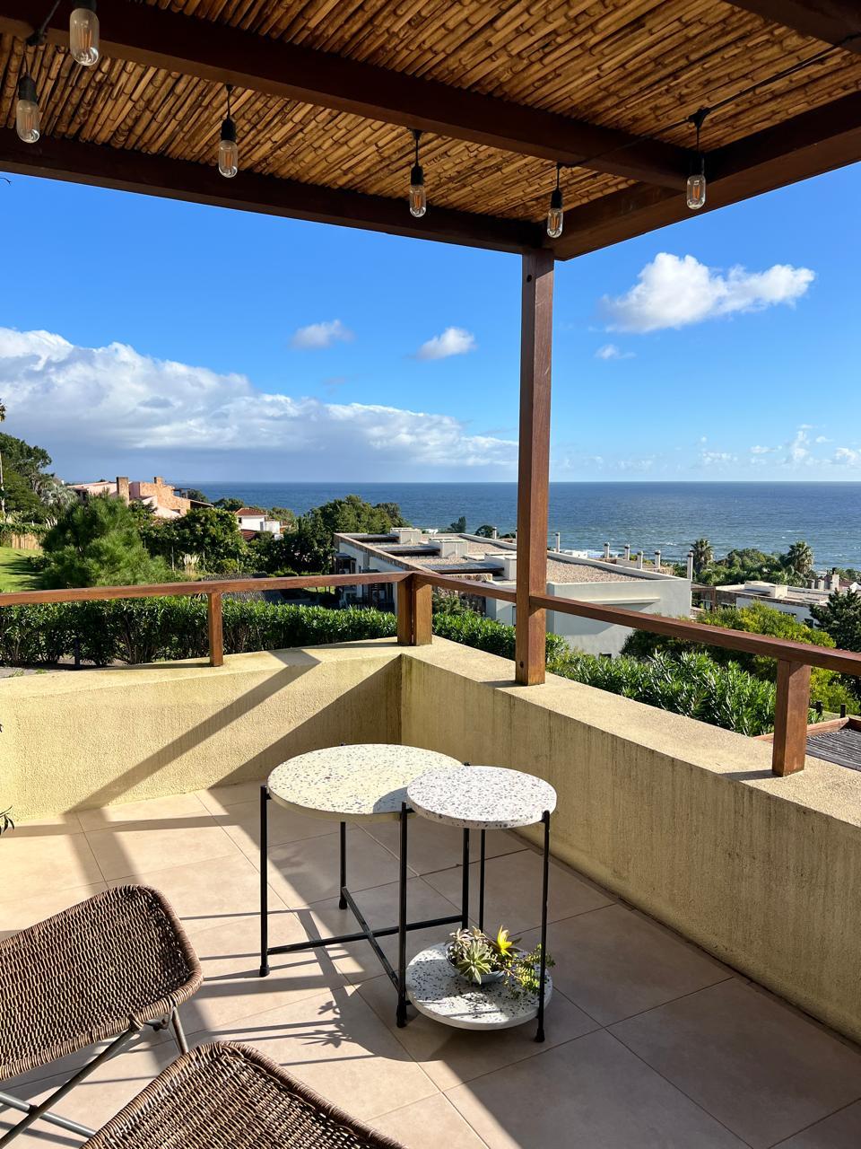 Dto de 2 dormitorios en suite, toilete, parrillero con vista al mar, servicio de mucama, piscina del complejo, club house.