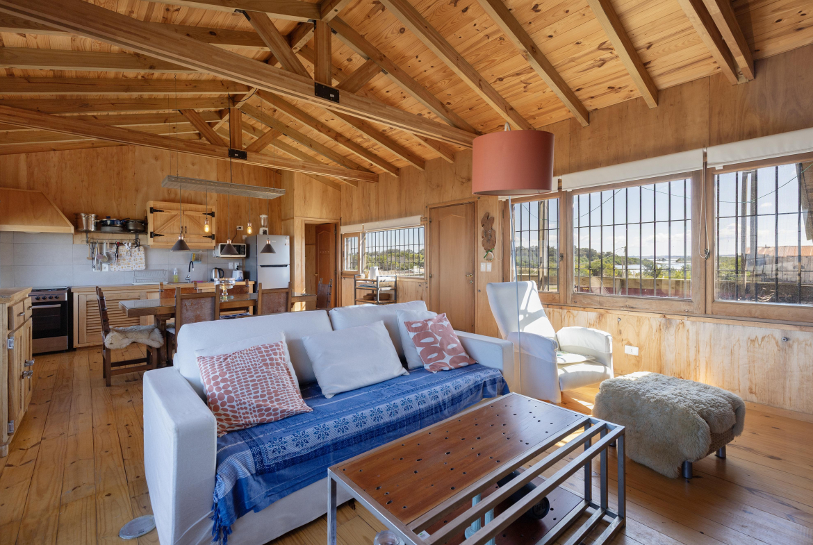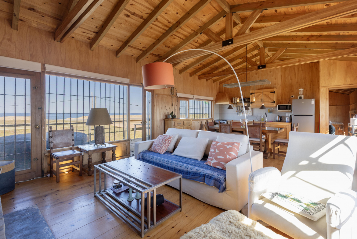 Casa de 3 dormitorios en Santa Monica con increibles vistas al oceano y a la laguna Jose Ignacio. Construida de madera y en altura, con balcones amplios panaramicos.