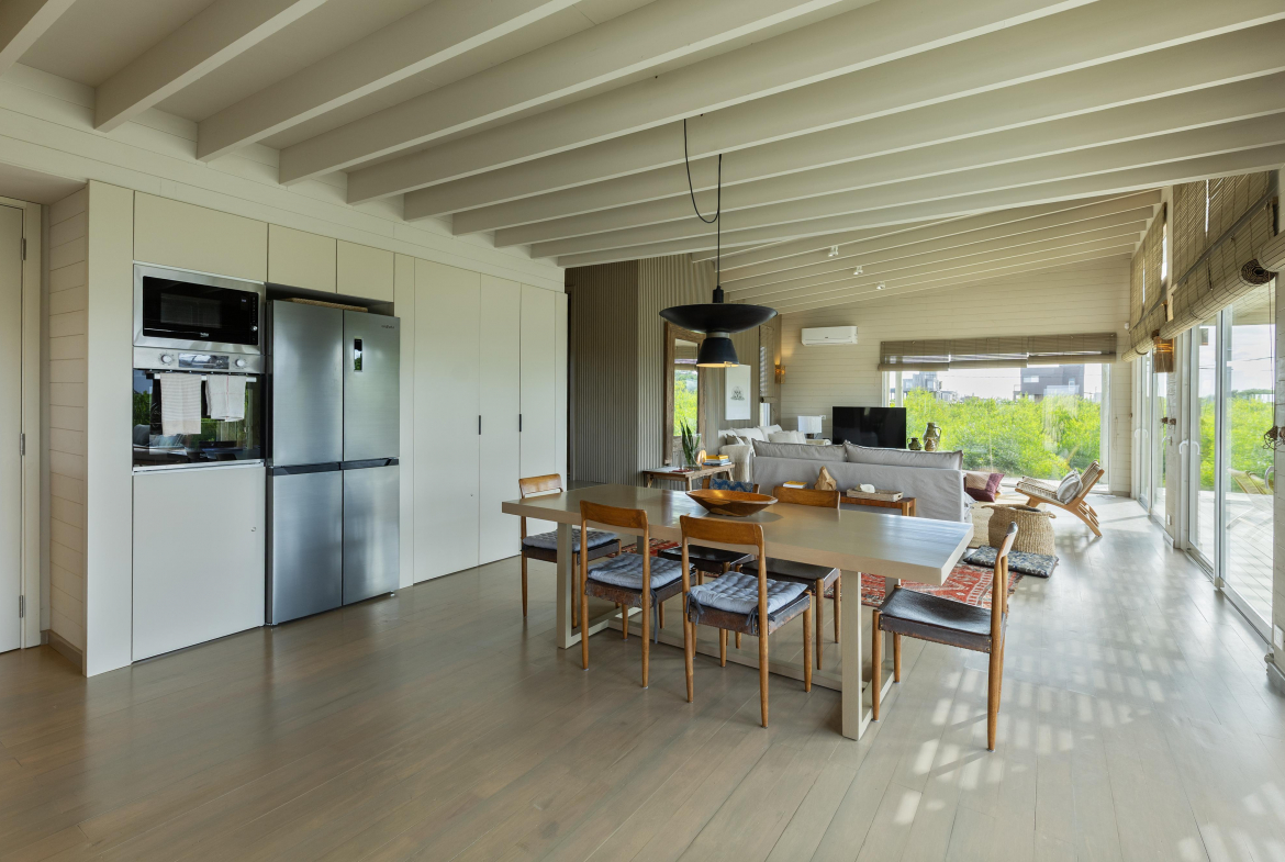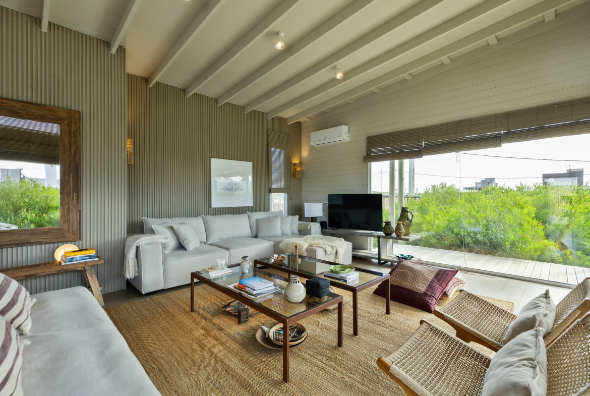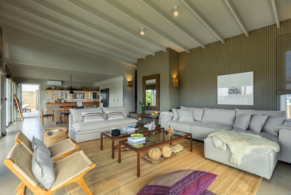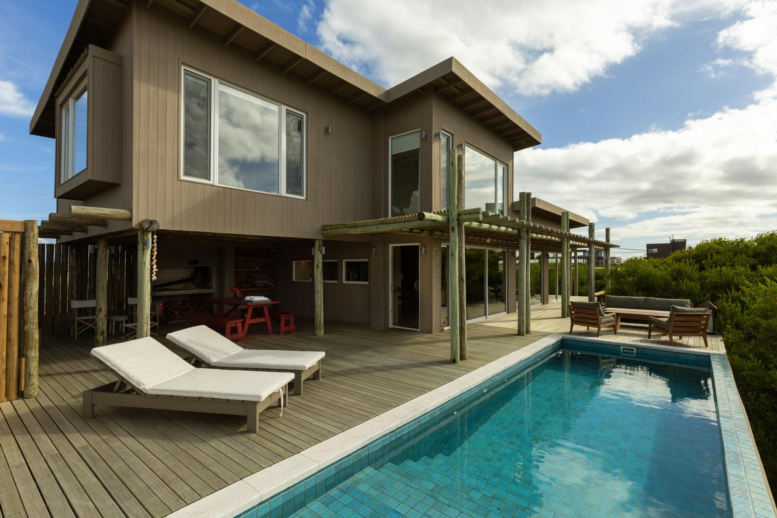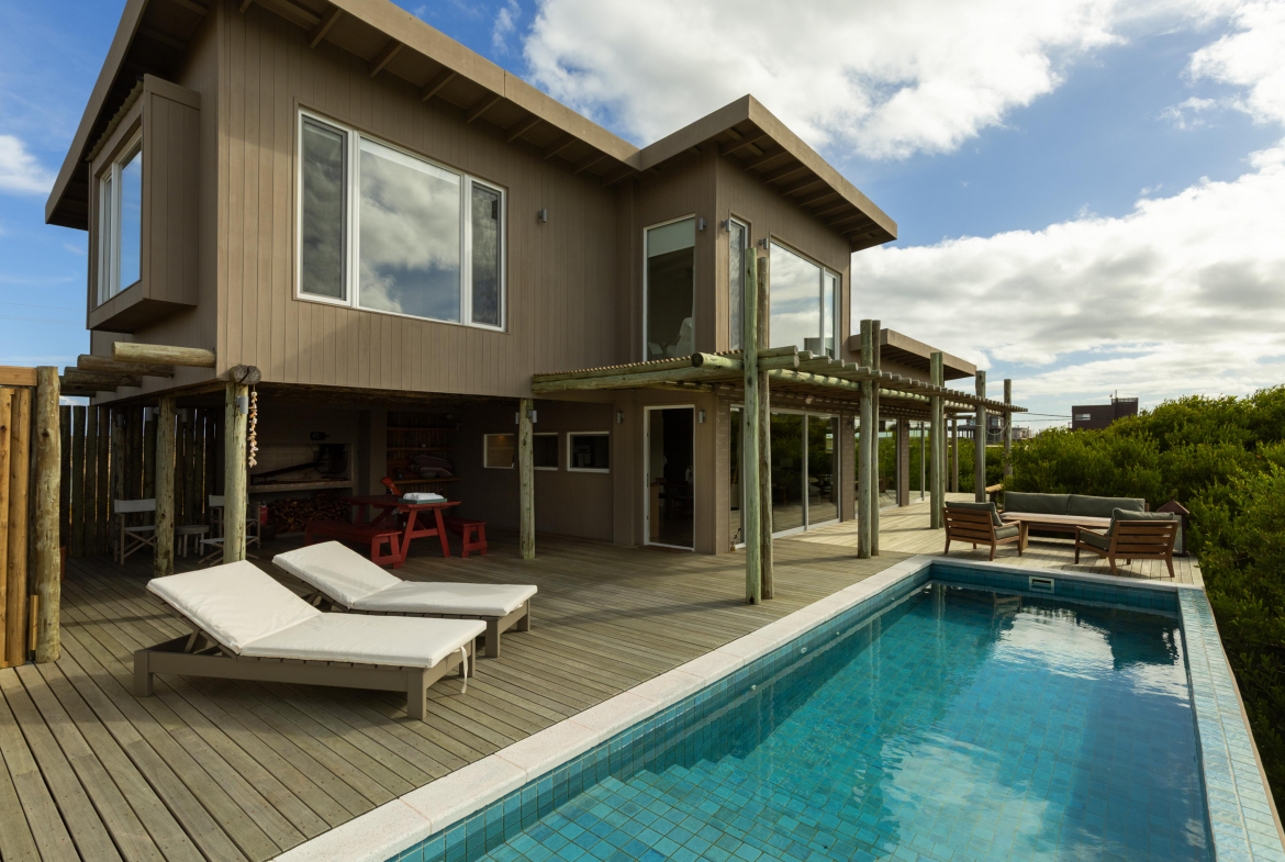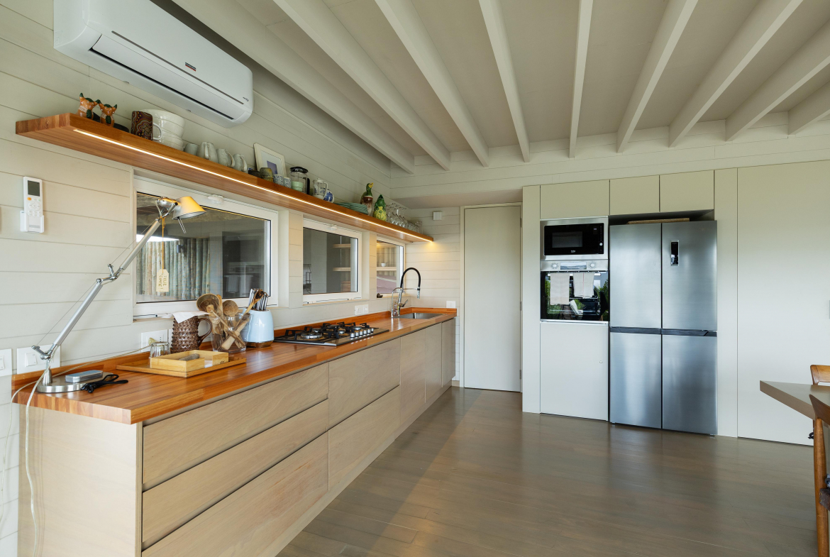 Construcción en madera nacional, aberturas de aluminio con doble vidrio , aire acondicionado en todos los ambientes , fibra óptica , alarma y cámara de seguridad.