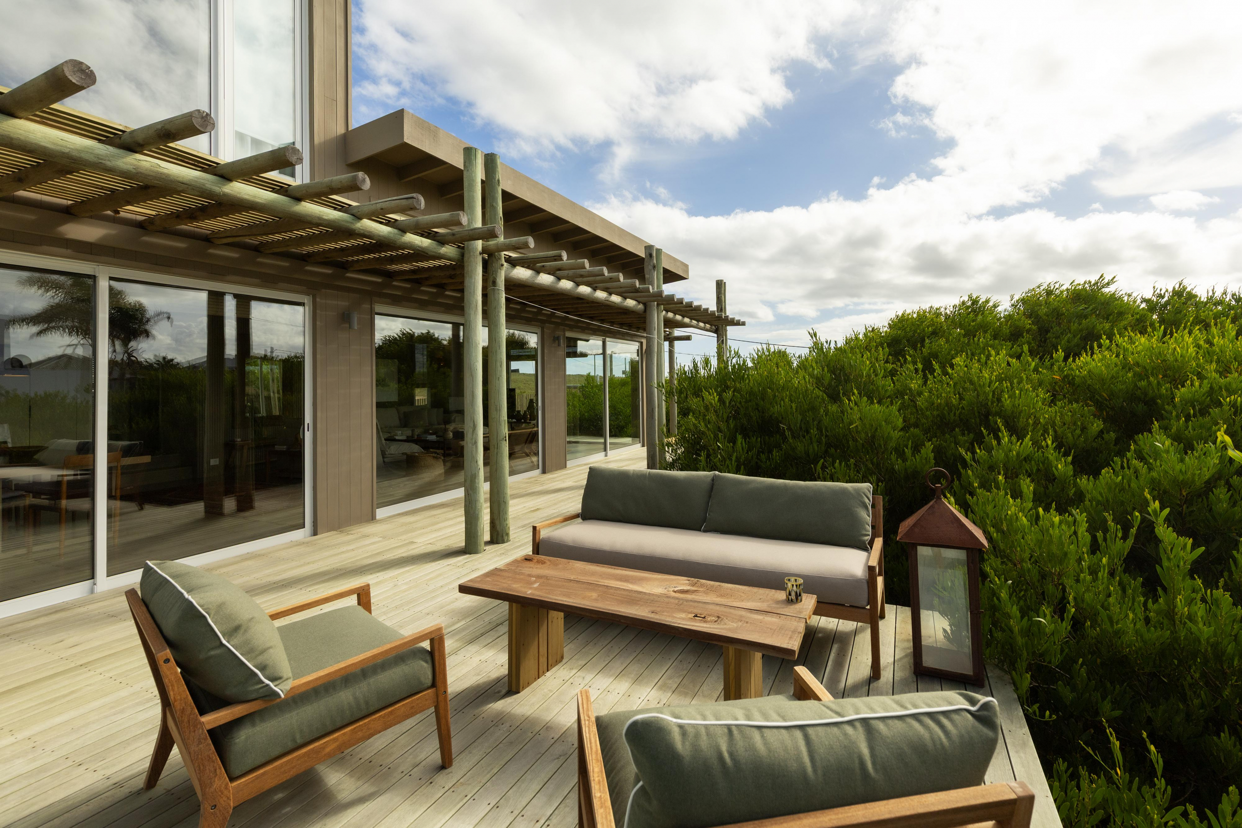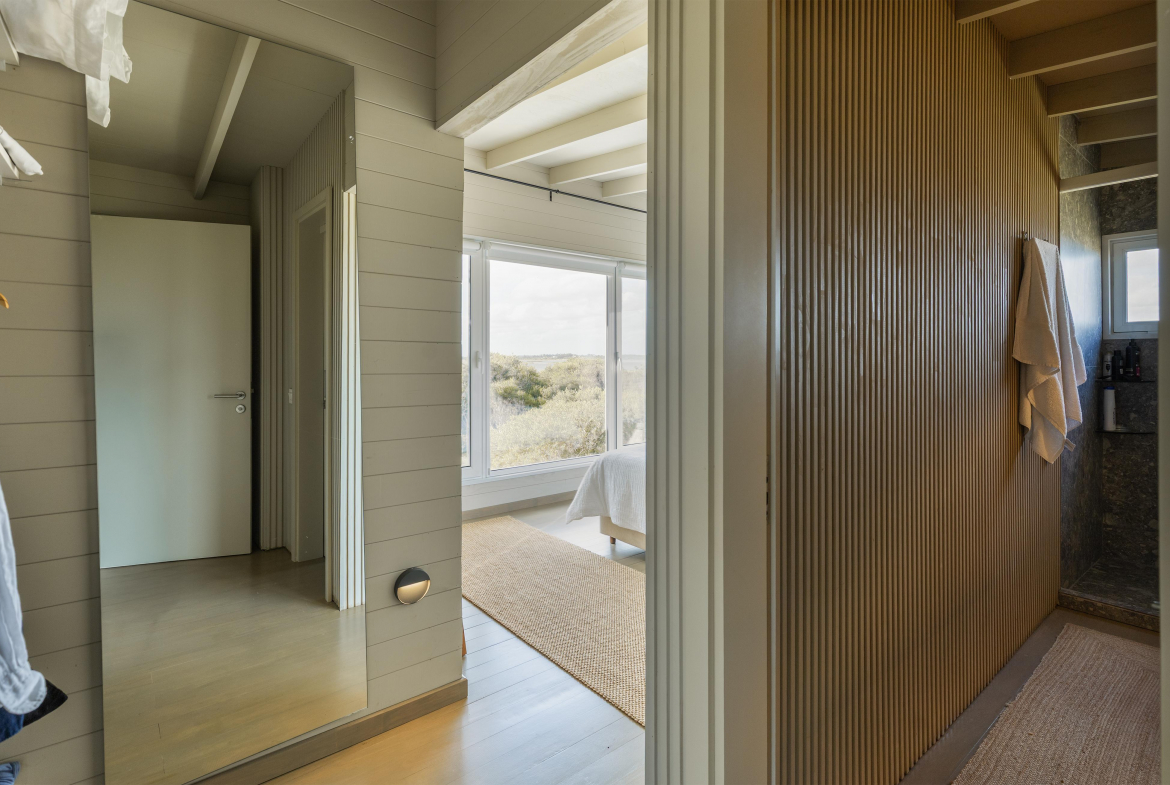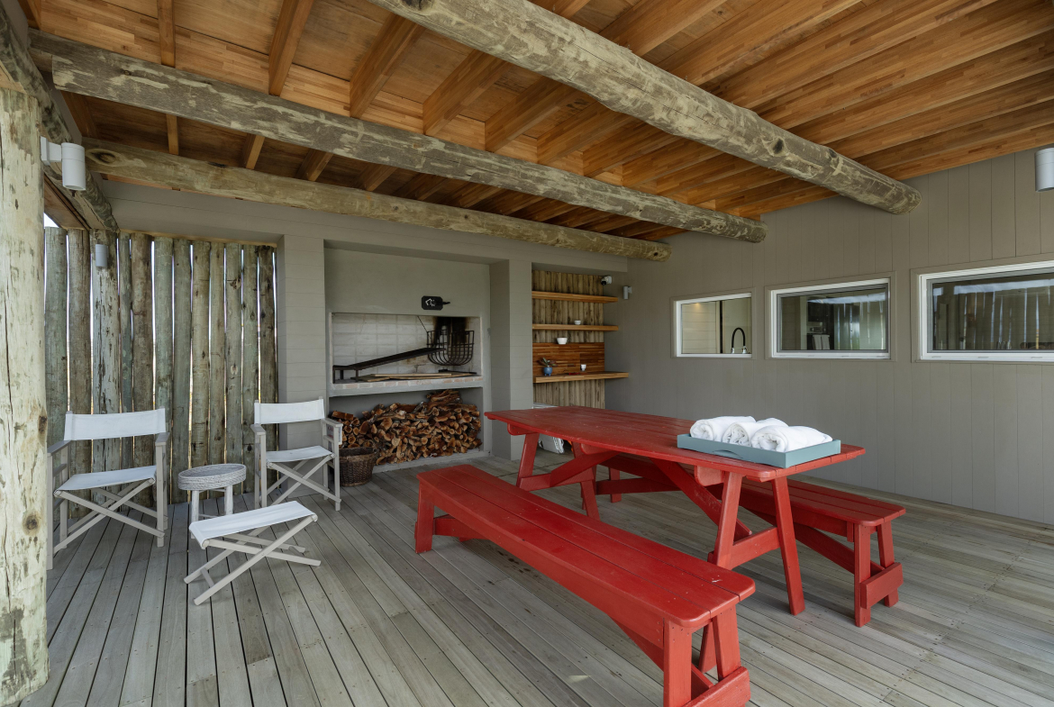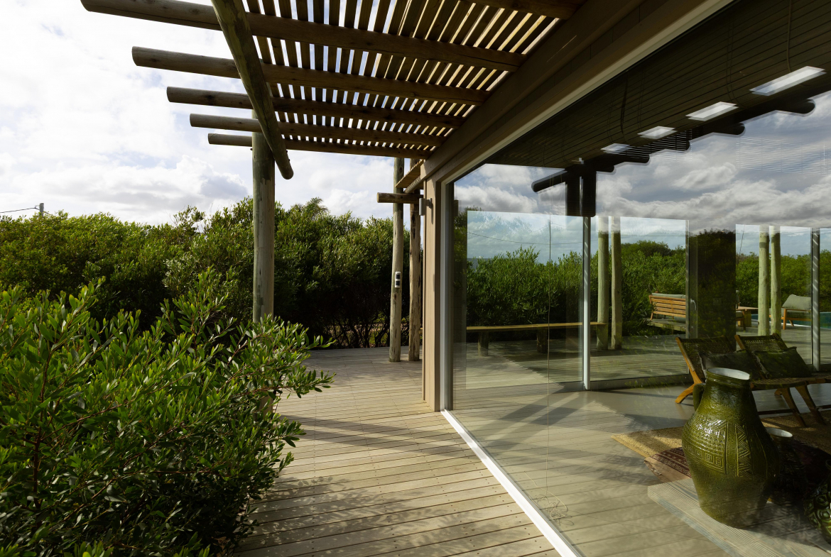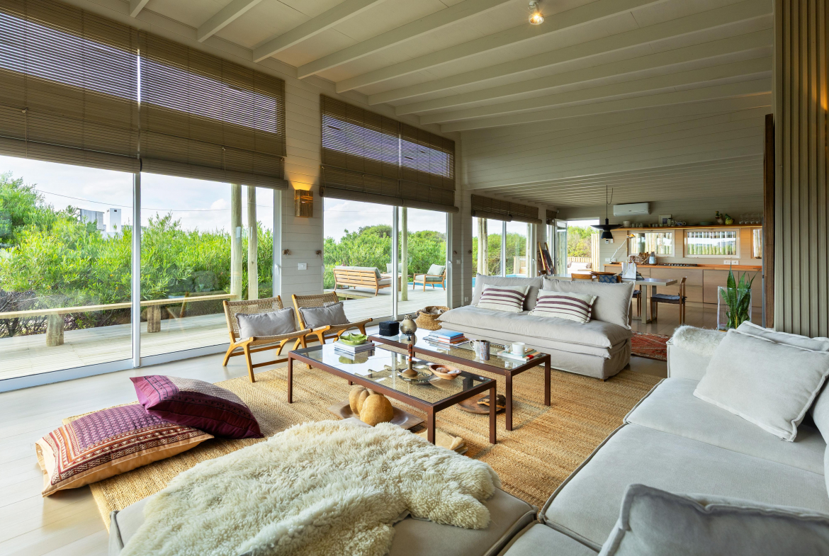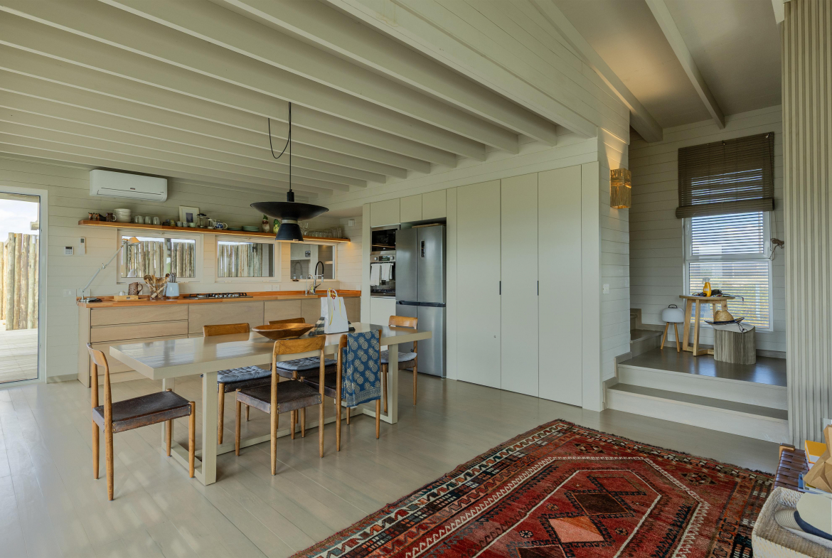 Construcción en madera nacional, aberturas de aluminio con doble vidrio , aire acondicionado en todos los ambientes , fibra óptica , alarma y cámara de seguridad.