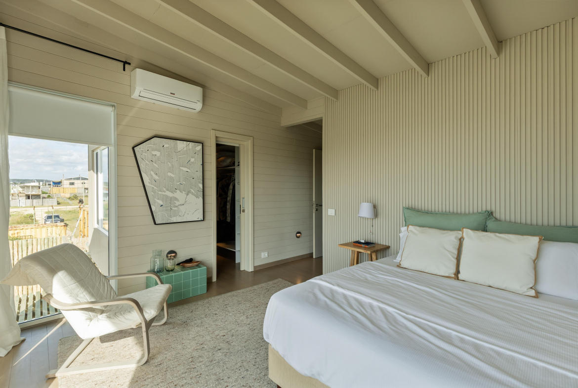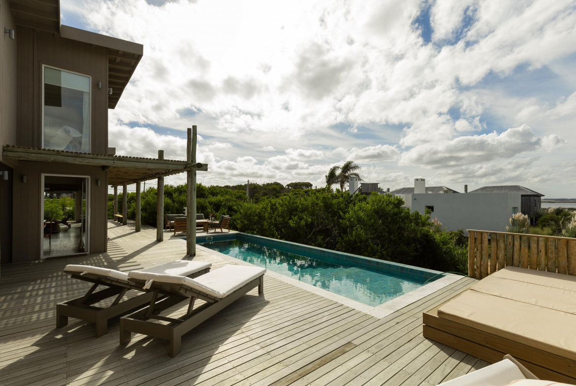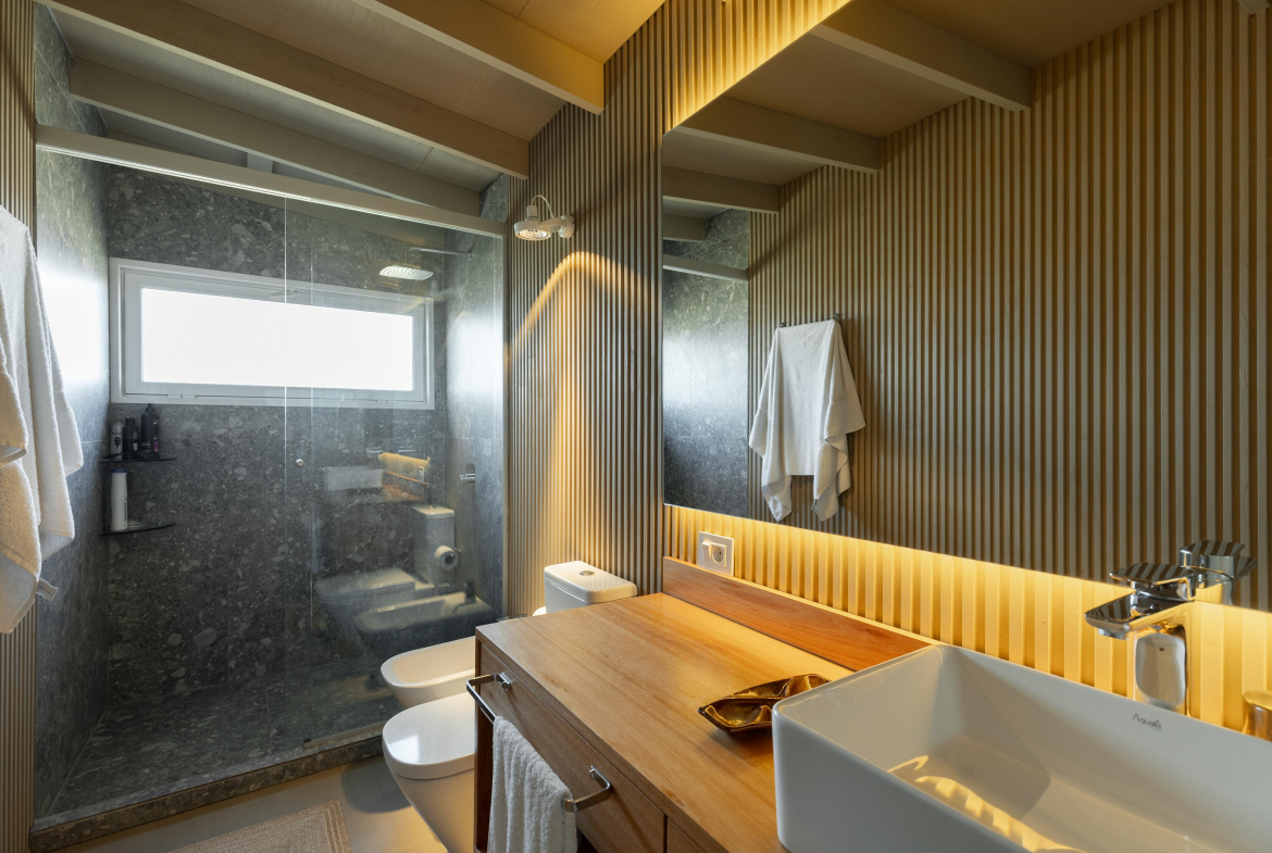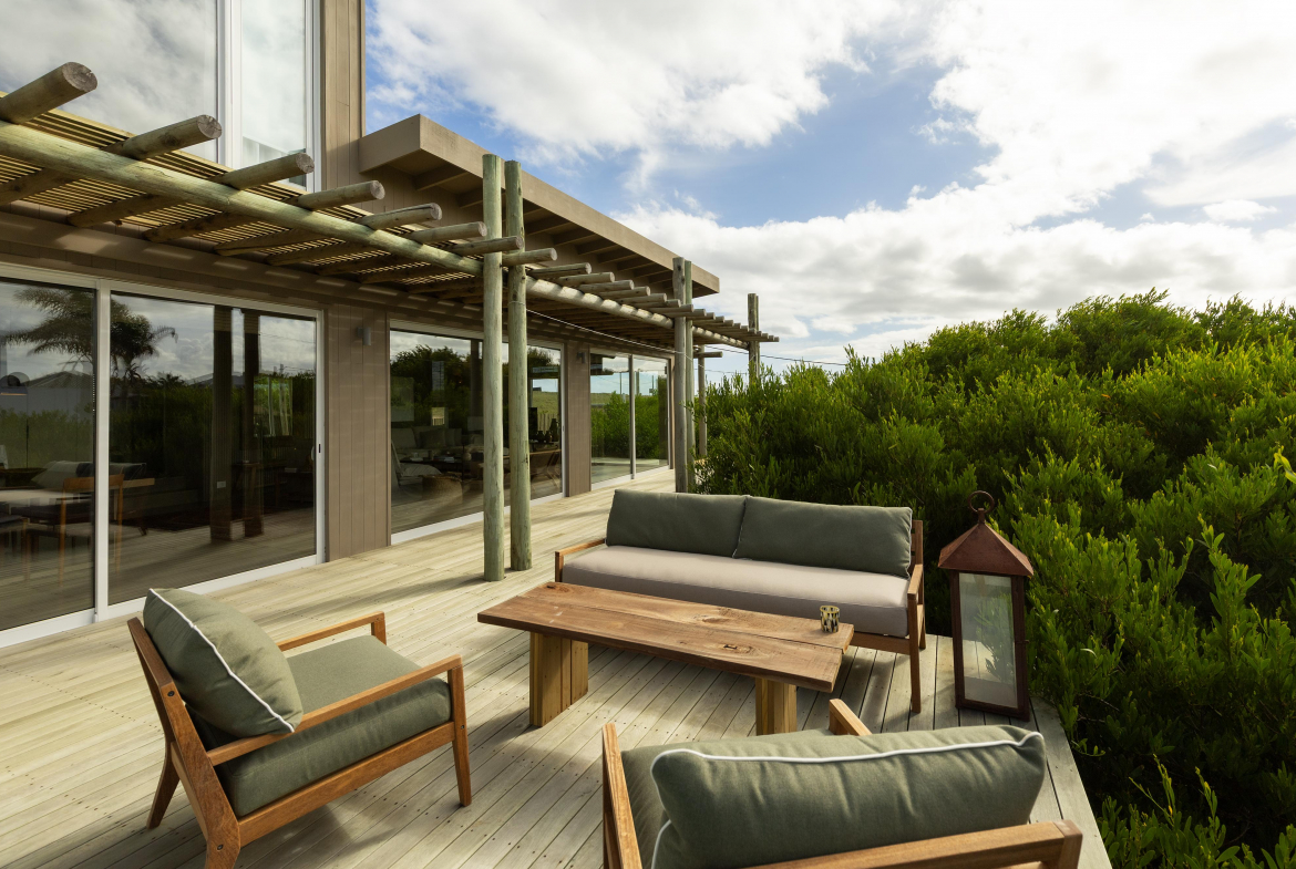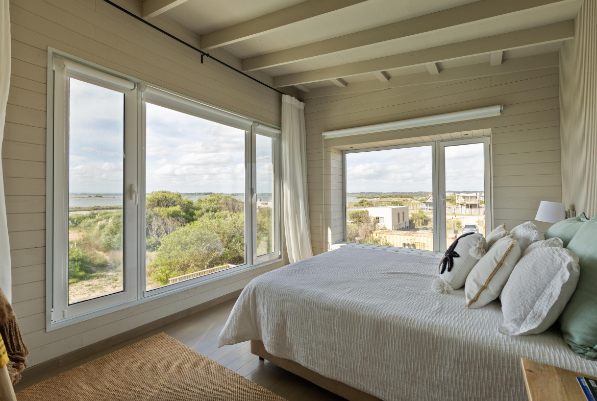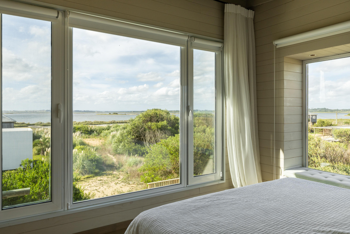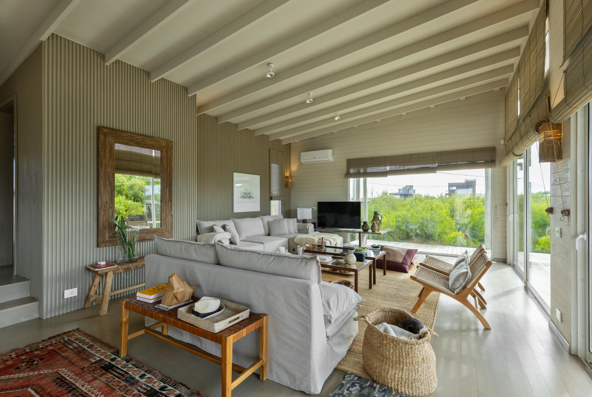 Construcción en madera nacional, aberturas de aluminio con doble vidrio , aire acondicionado en todos los ambientes , fibra óptica , alarma y cámara de seguridad.