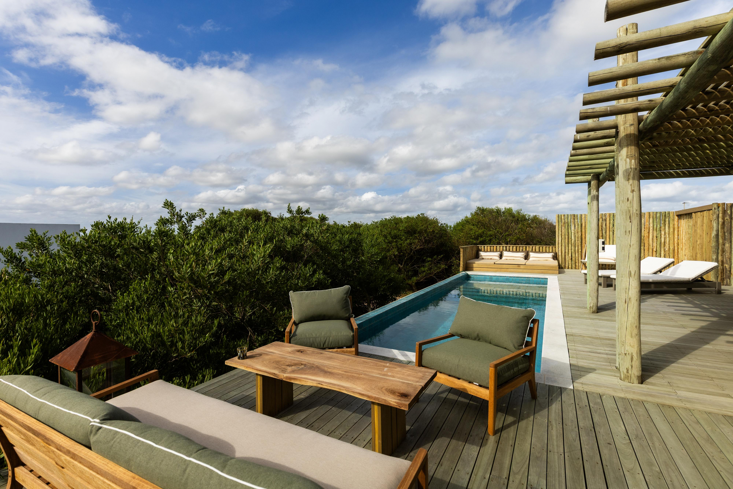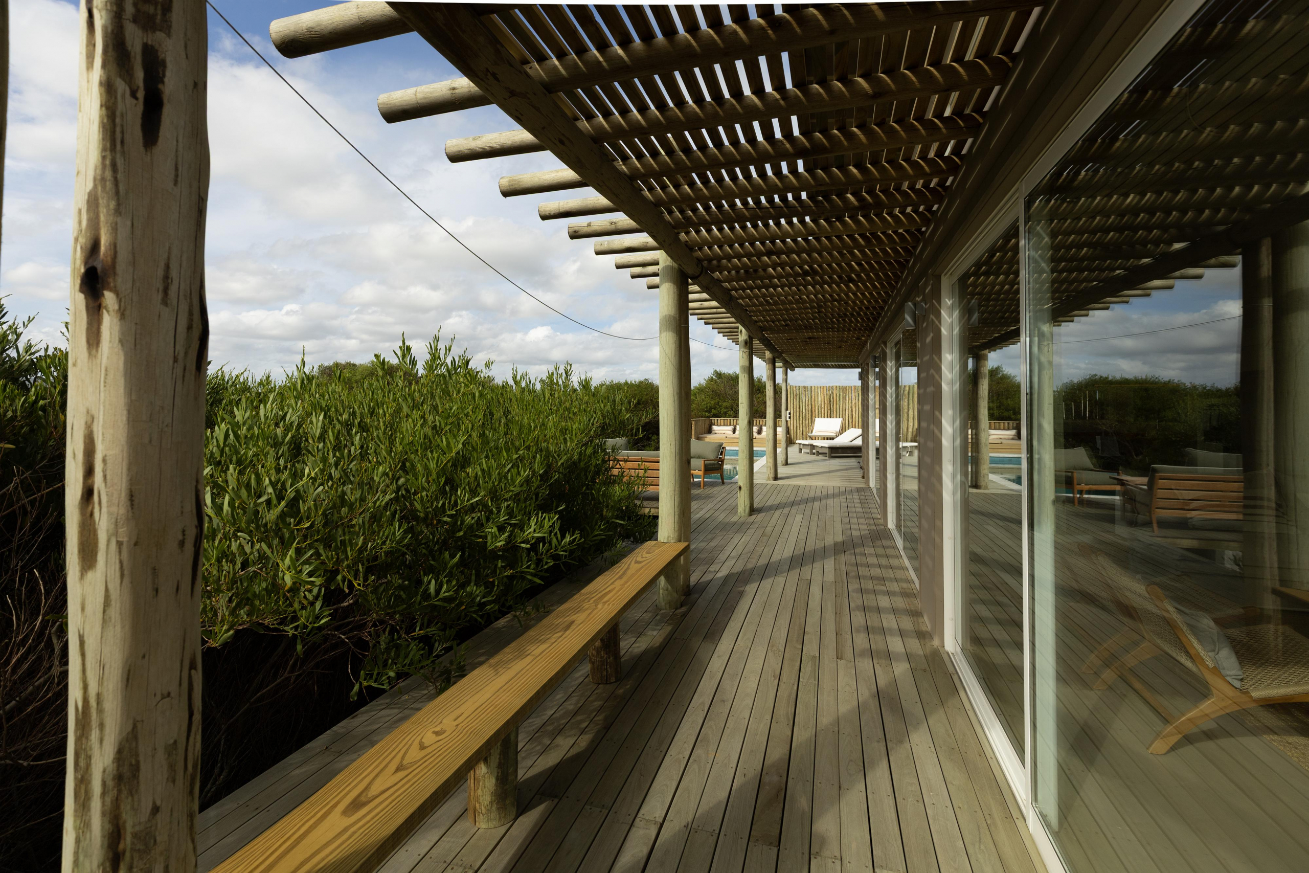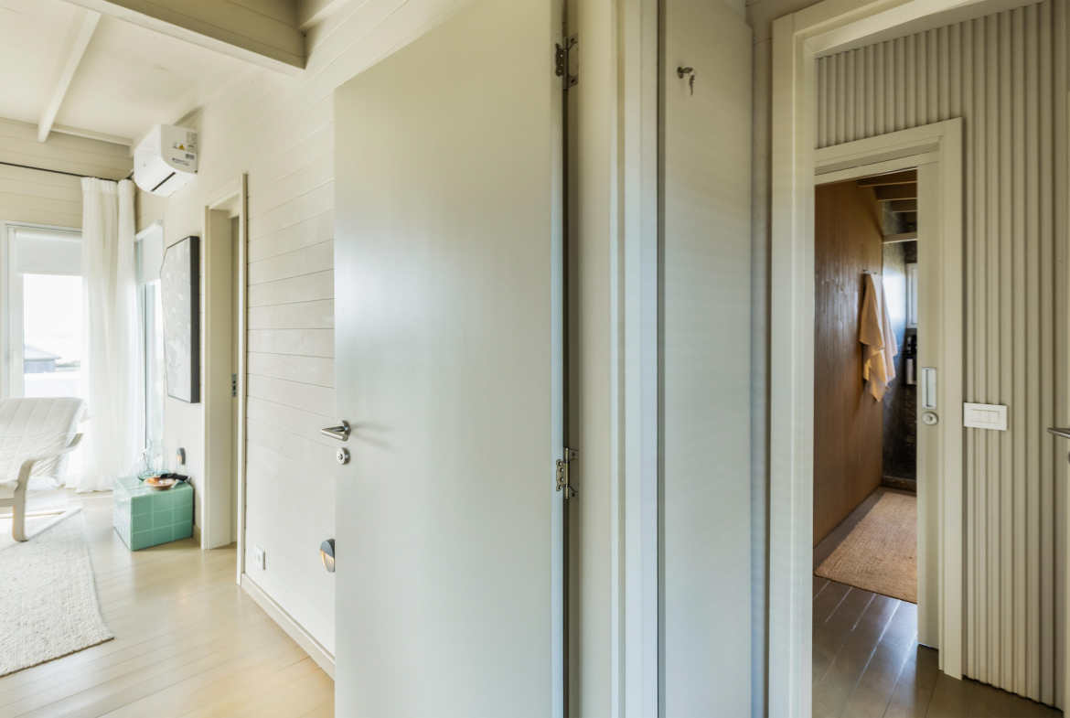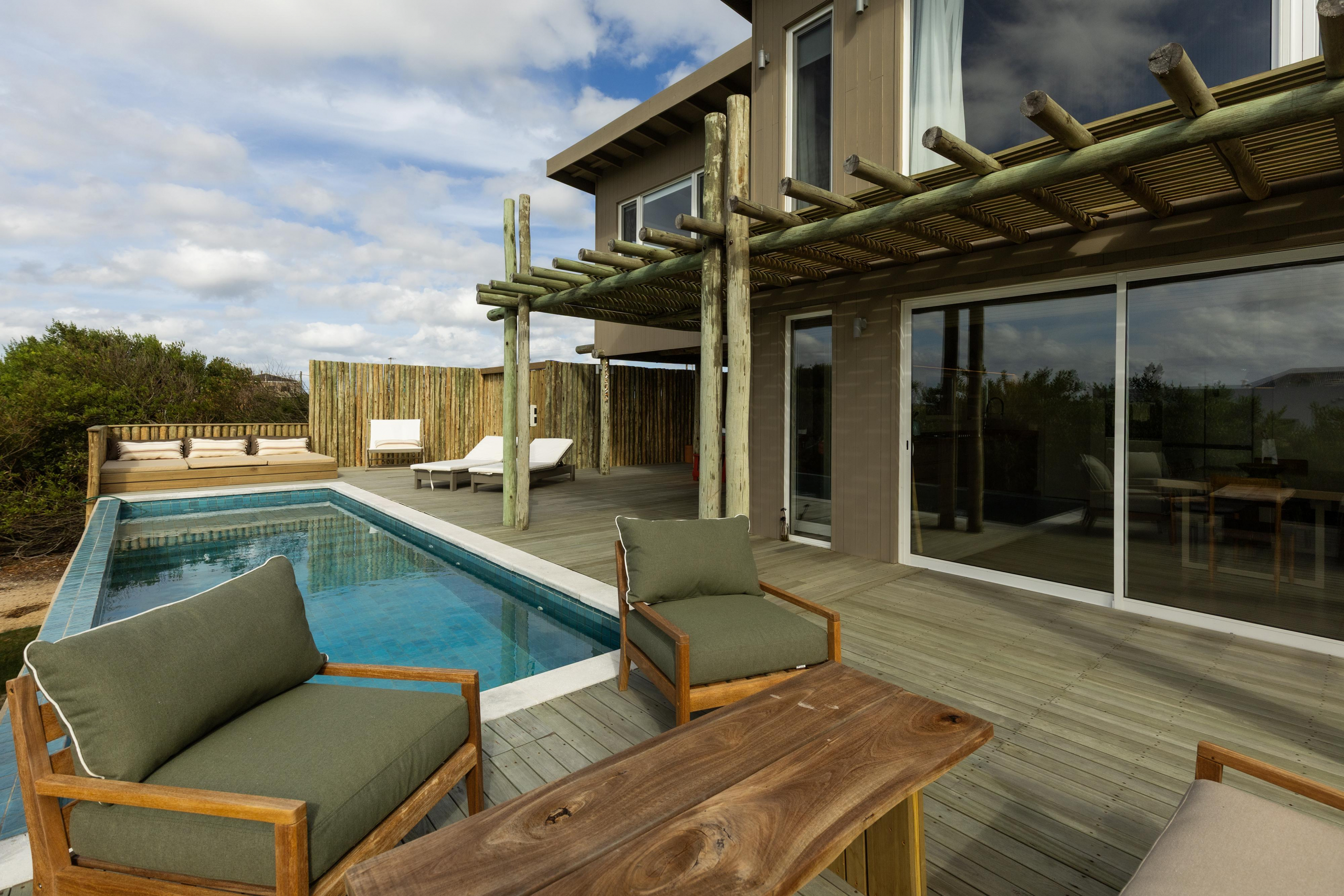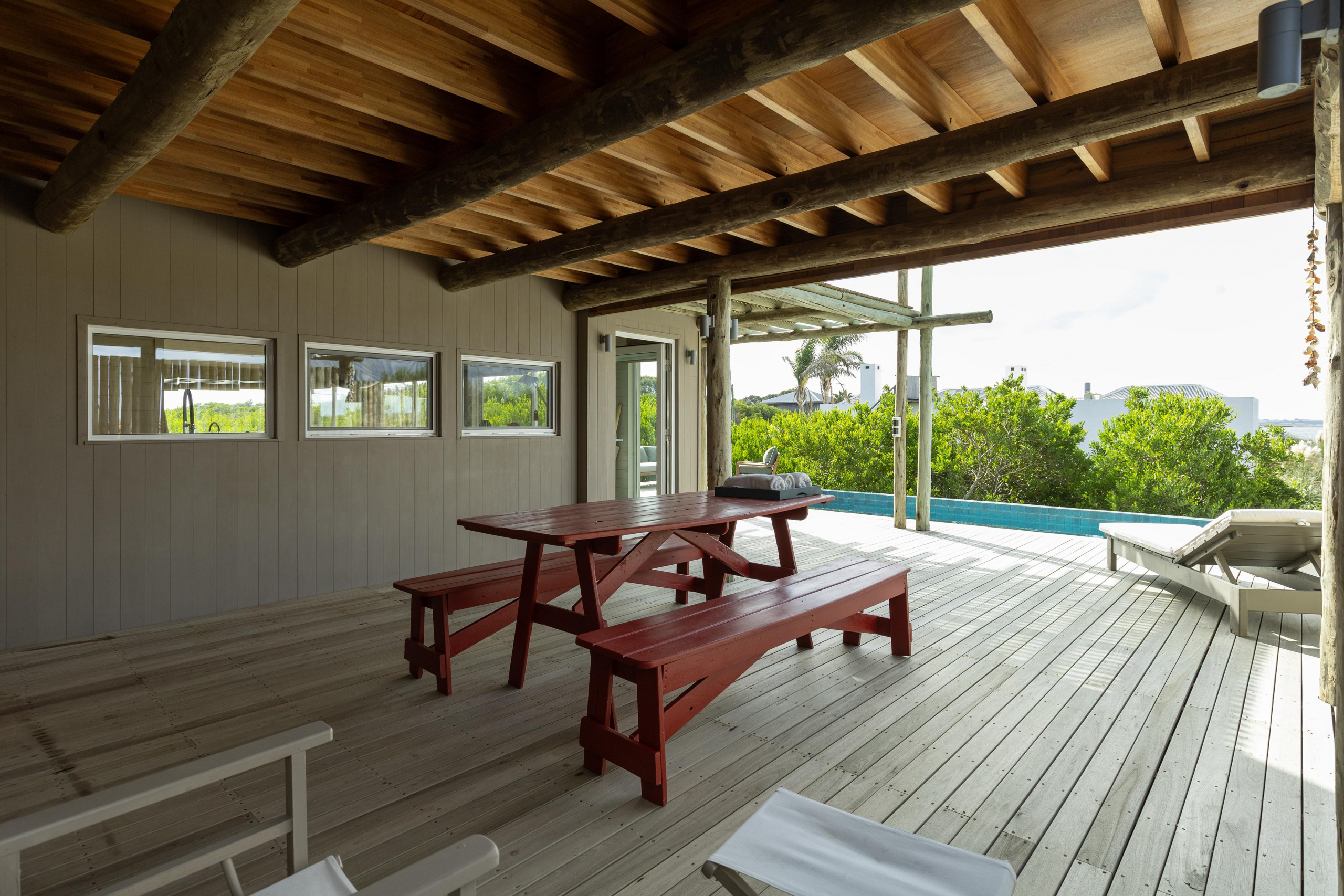 Construcción en madera nacional, aberturas de aluminio con doble vidrio , aire acondicionado en todos los ambientes , fibra óptica , alarma y cámara de seguridad.