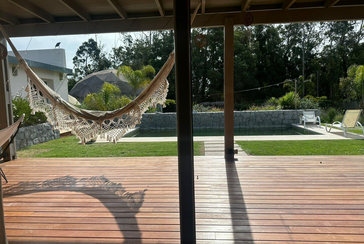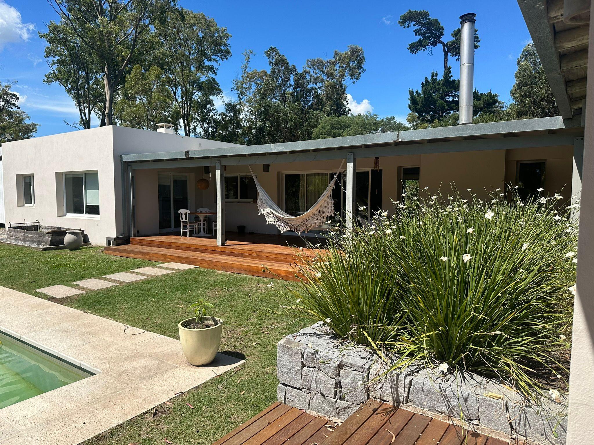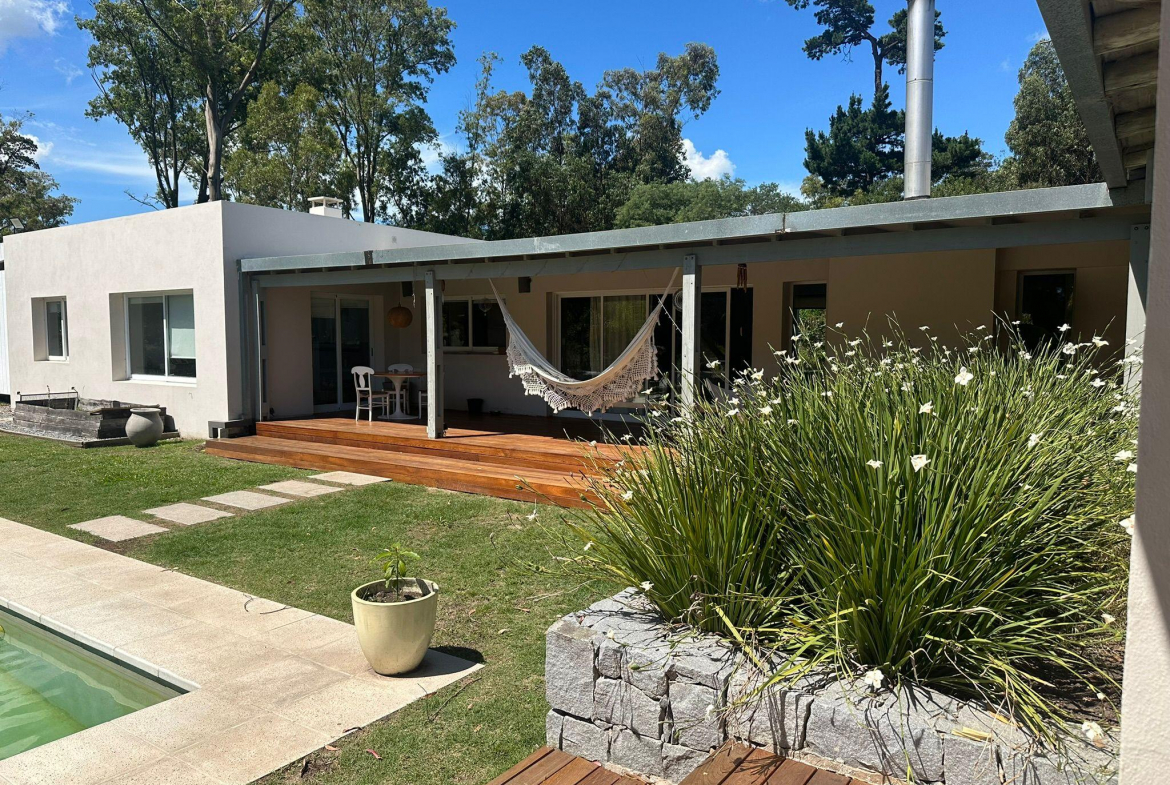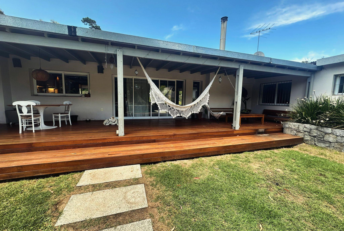 Casa en El Tesoro, barrio sitaudo dentro de La Barra de Maldonado, en un lote de mas 2500 metros. La casa posee 3 dormitorios en el ala principal de la casa y otro en suite por fuera que puede tomarse como casa de huespedes. Ideal para una familia grande. El amplio jardin cuenta con piscina y cancha de basquet.