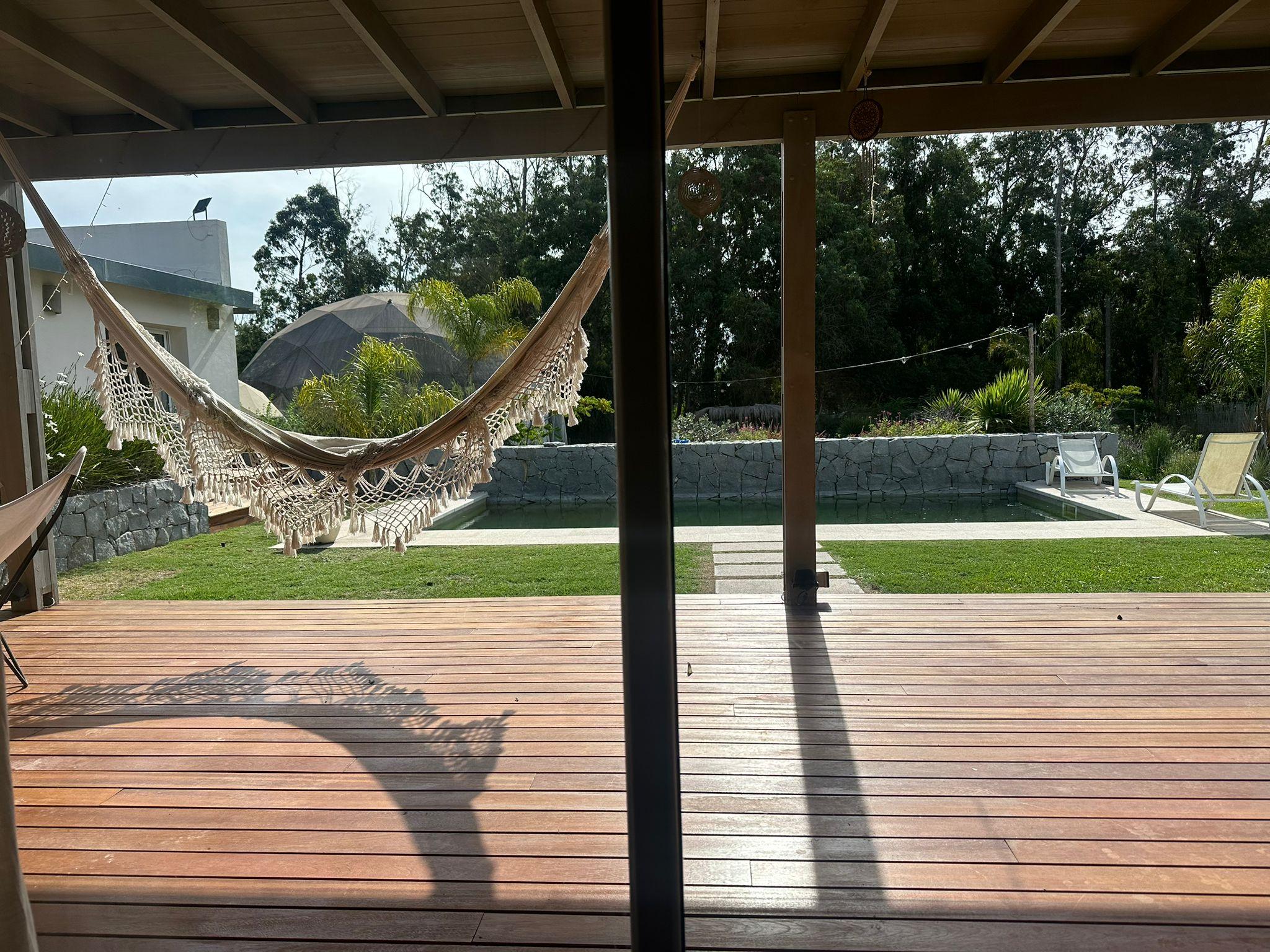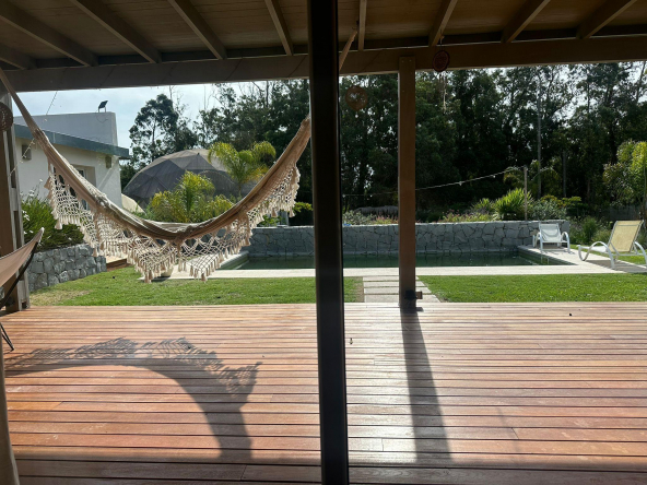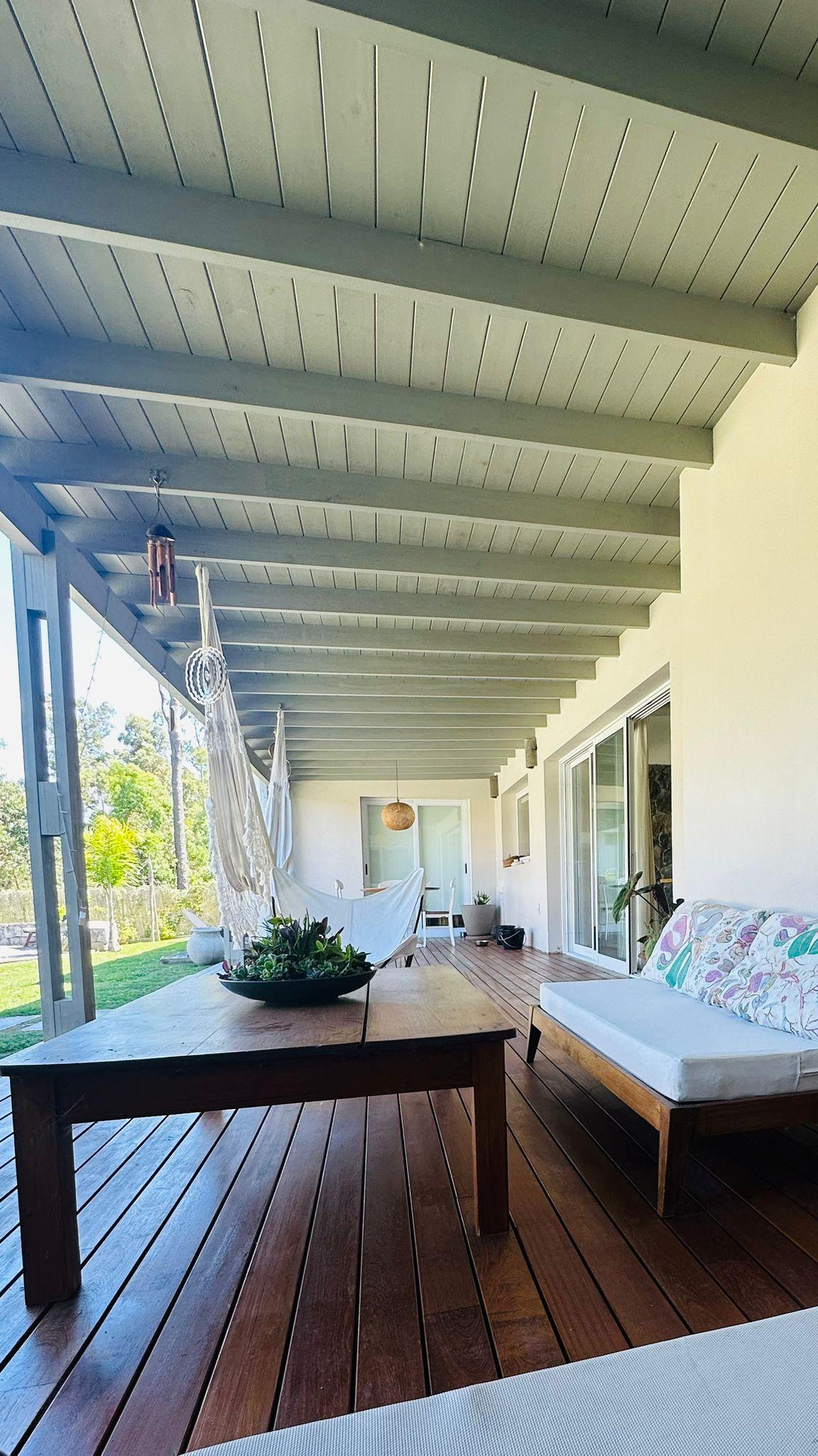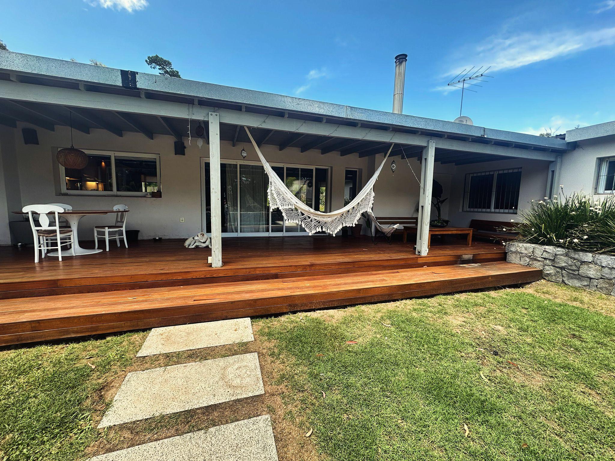 Casa en El Tesoro, barrio sitaudo dentro de La Barra de Maldonado, en un lote de mas 2500 metros. La casa posee 3 dormitorios en el ala principal de la casa y otro en suite por fuera que puede tomarse como casa de huespedes. Ideal para una familia grande. El amplio jardin cuenta con piscina y cancha de basquet.