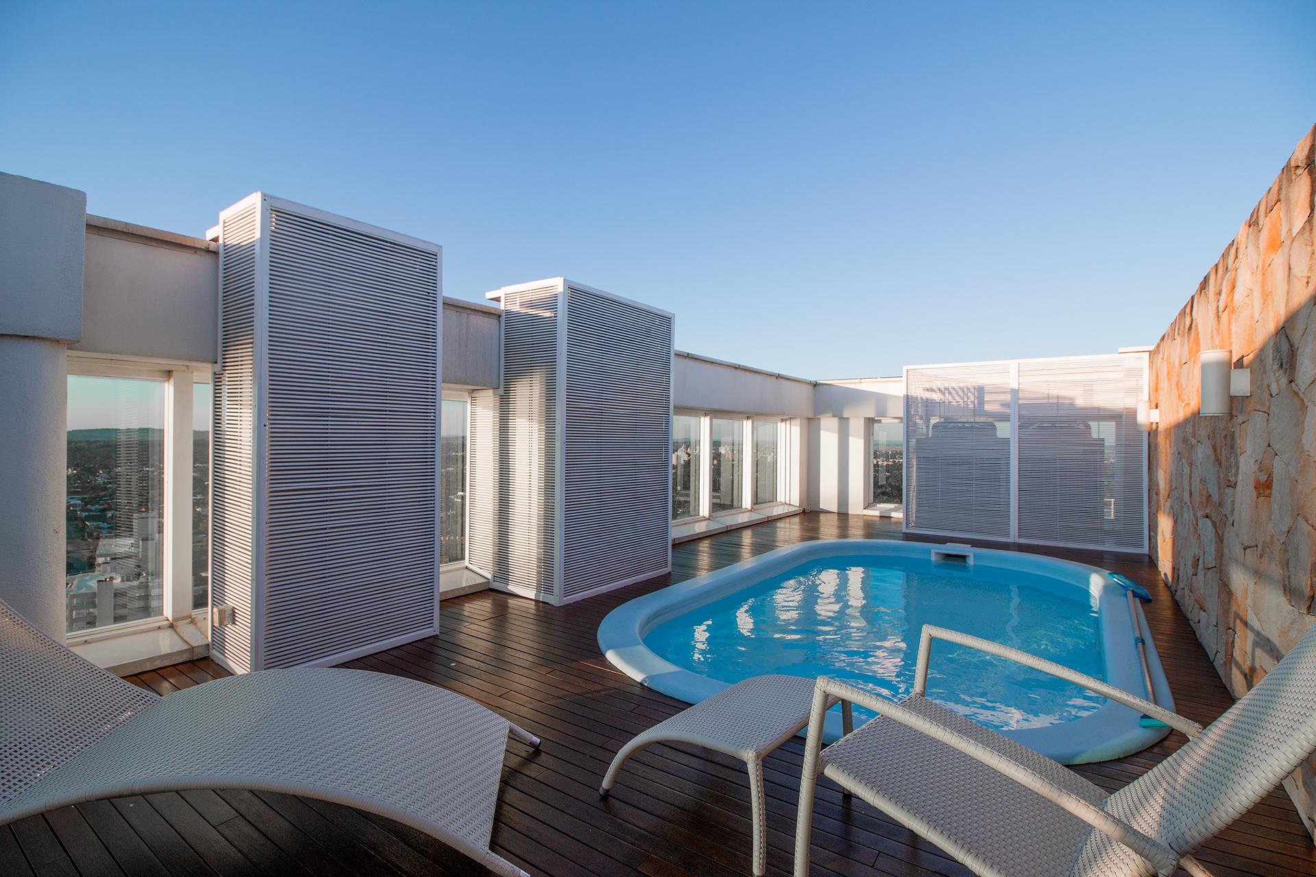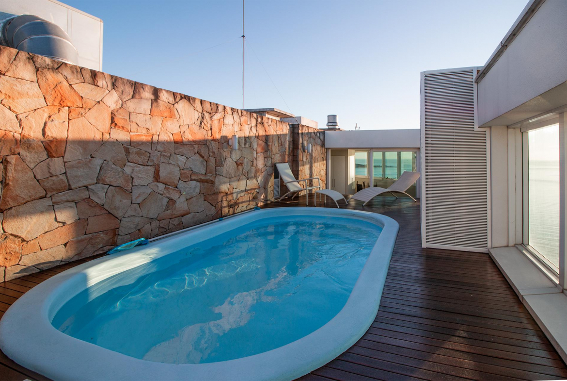 Hermoso apartamento penthouse en Torre Aquarela. Desarrollado en 3 niveles y de cómodos ambientes. En el nivel de acceso, living y comedor, cocina con comedor diario y dependencia de servicio. En el segundo piso, 3 dormitorios en suite con vestidor y en la planta superior, a la que se puede acceder también desde recepción, parrillero propio, deck y piscina propia.