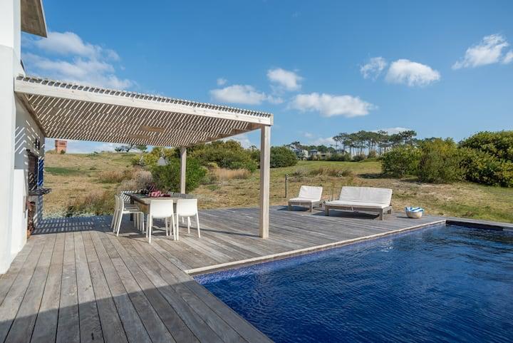 Ubicada en la idílica franja costera de Village del Faro, esta encantadora casa de dos pisos ofrece seis espaciosos ambientes, incluyendo cuatro acogedores dormitorios (dos en suite) y cuatro baños. Con un toilette adicional para la comodidad de los invitados y dos cocheras para vehículos mas dependencia, la casa combina funcionalidad y estilo. Sus amplias ventanas y terrazas brindan un acceso fácil al piscina central, invitando a disfrutar de la brisa marina y las puestas de sol. Un hogar perfecto para aquellos que buscan la serenidad y la elegancia en la proximidad del océano.